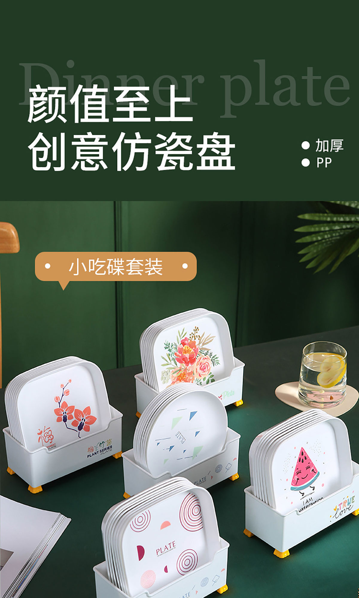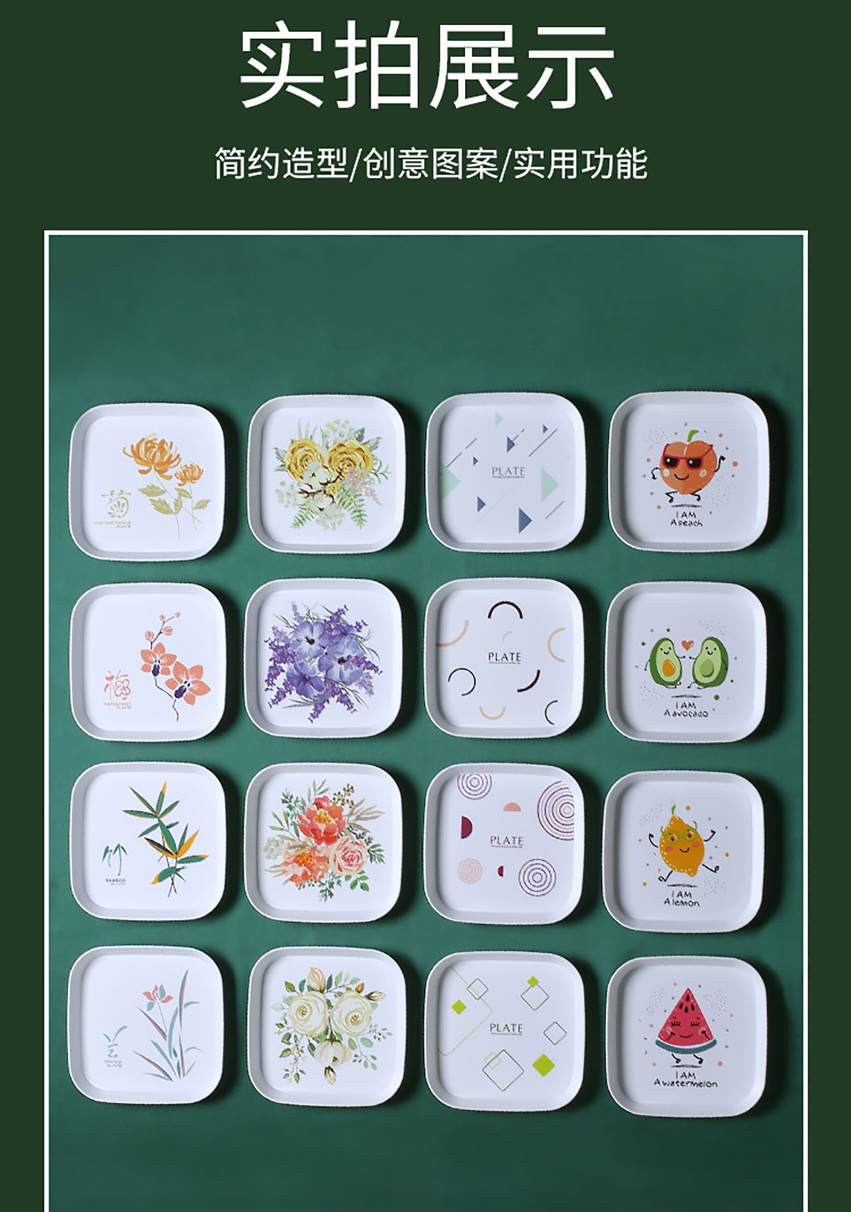 九件套圓形/方形多用碟(水果/幾何/花/梅蘭/竹菊)