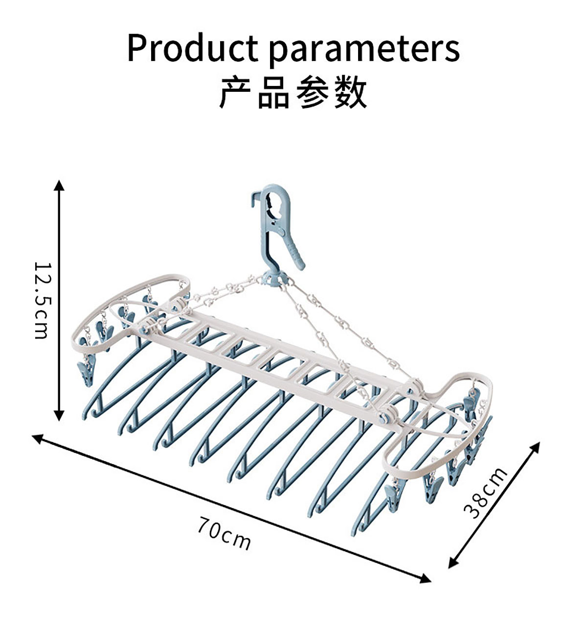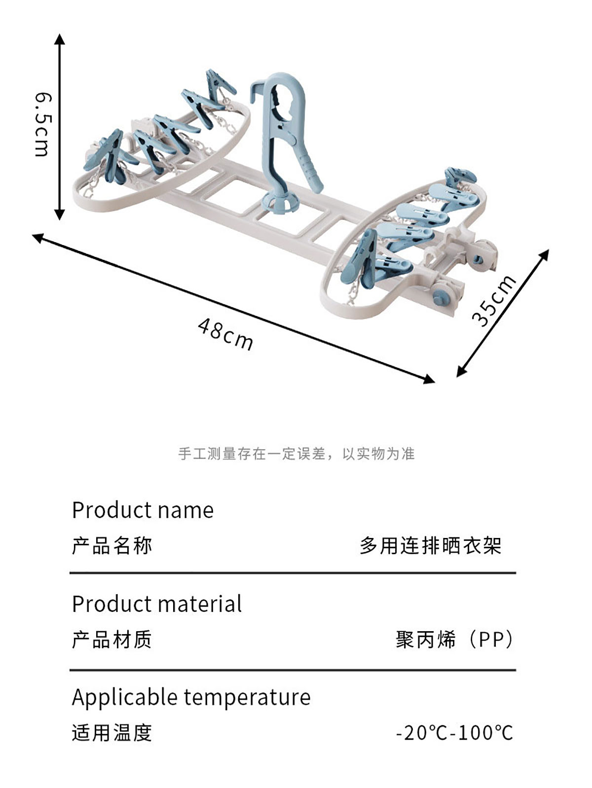Size: 8衣架+12衣夾/折合:480*350*65mm 展開:700*380*125mm