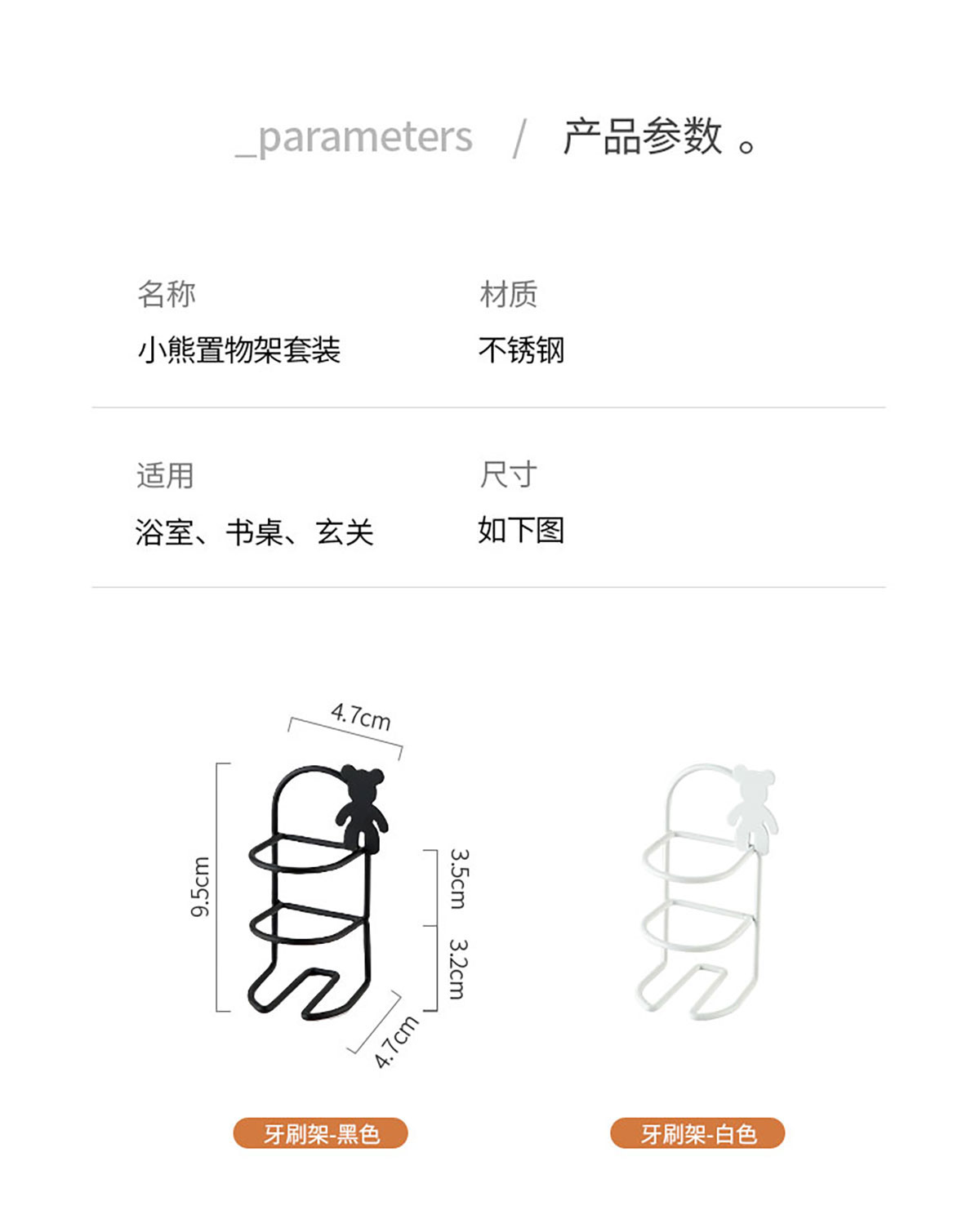 Size: 牙刷架:47*47*95mm 牙刷杯架:42*52*65mm 收納架:98*88*115mm