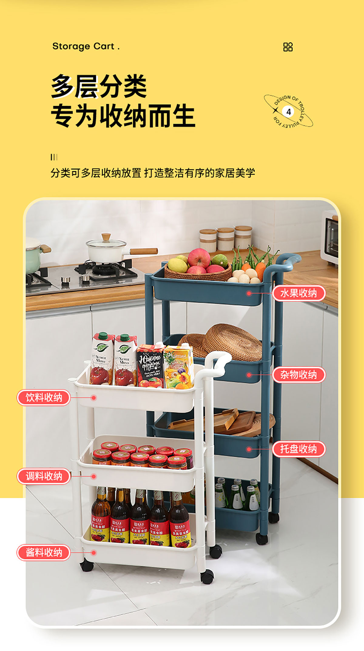 收納層架小推車(chē)(三層/四層)