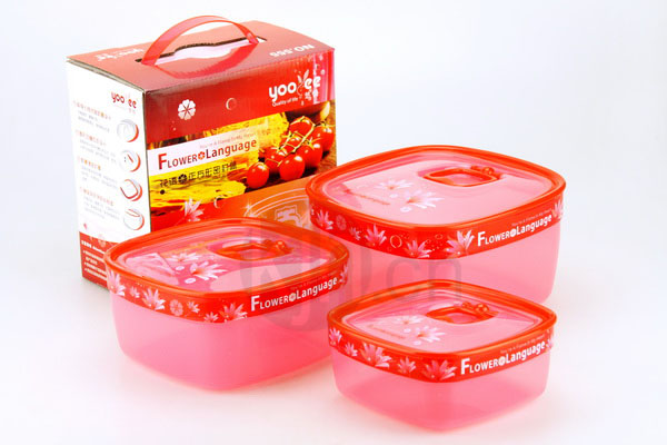 花語正方形三套莊保鮮盒(1700/1000/600ml)