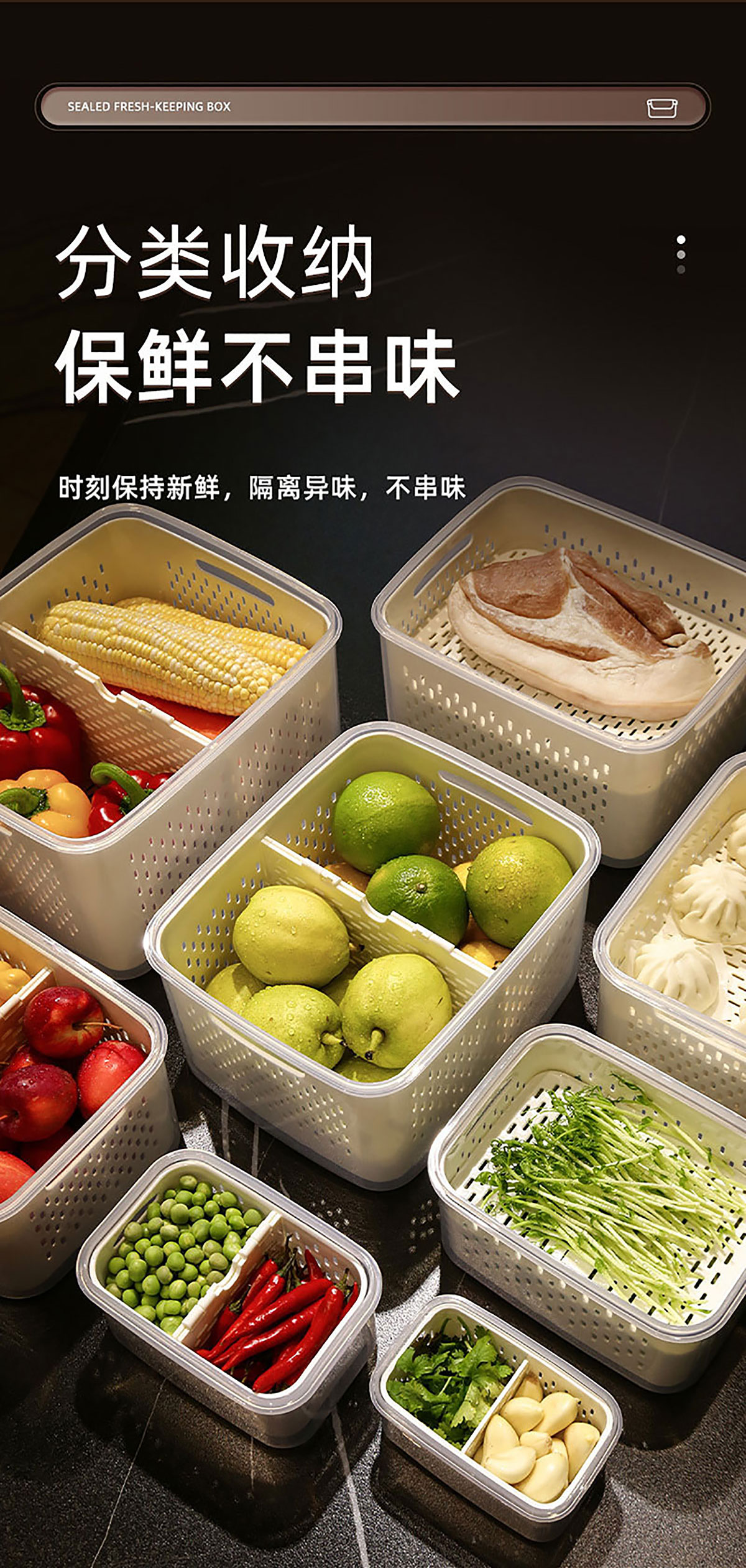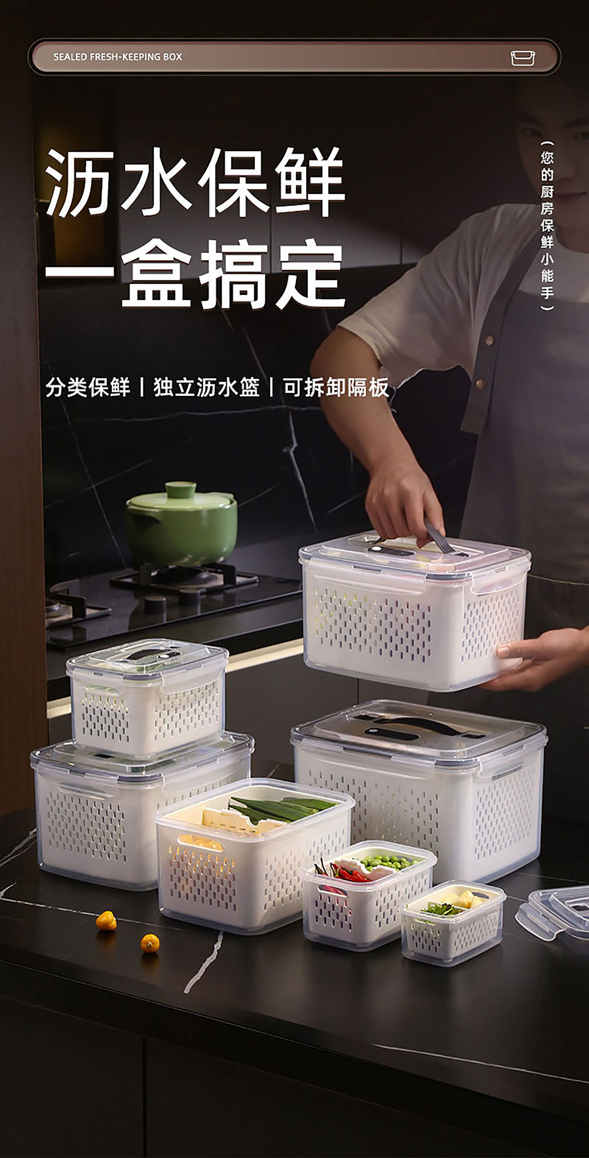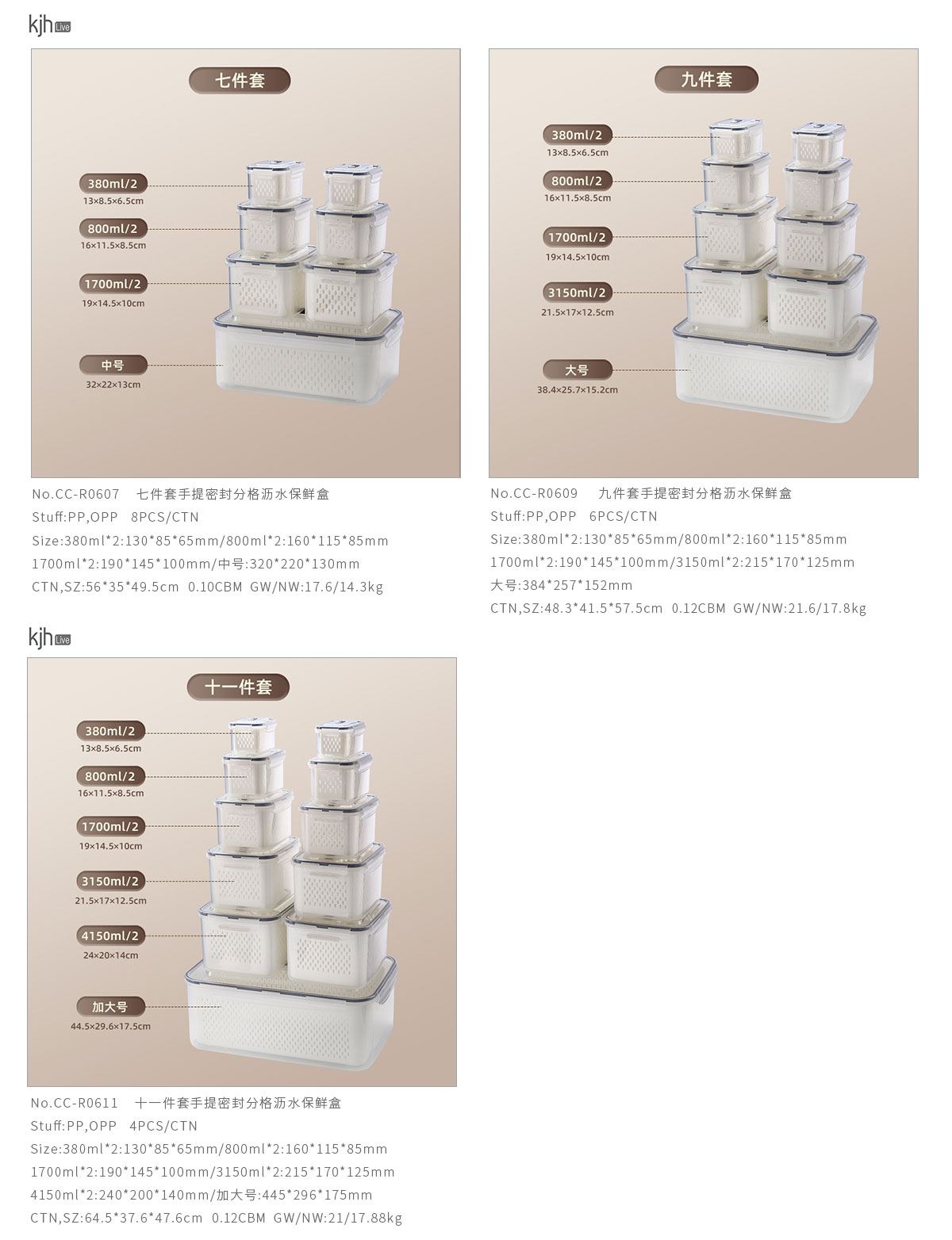 三件套/四件套/五件套/六件套/七件套/九件套/十一件套手提密封分格瀝水保鮮盒