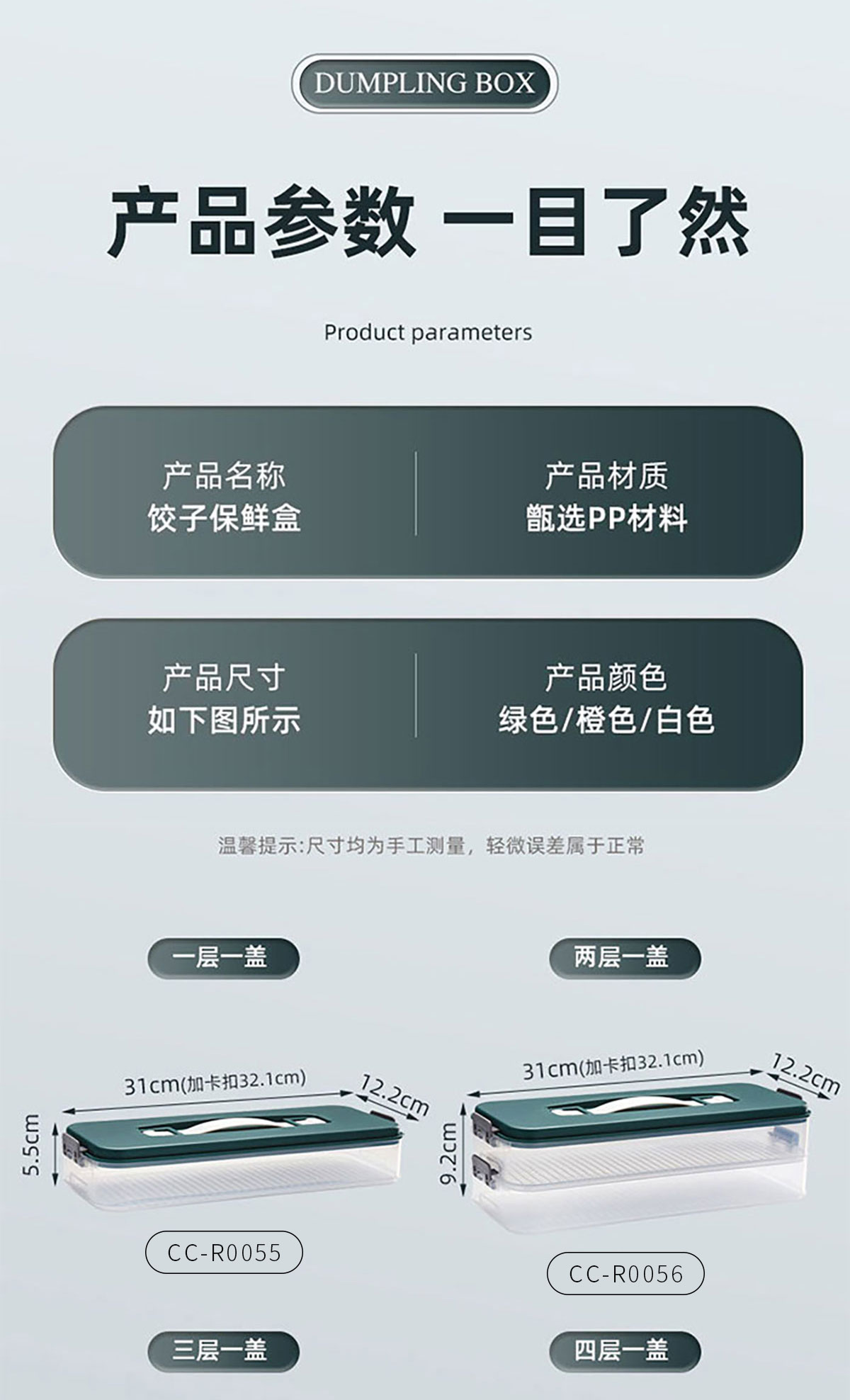 簡(jiǎn)系手提餃子收納盒(單層/2層/3層/4層/5層)