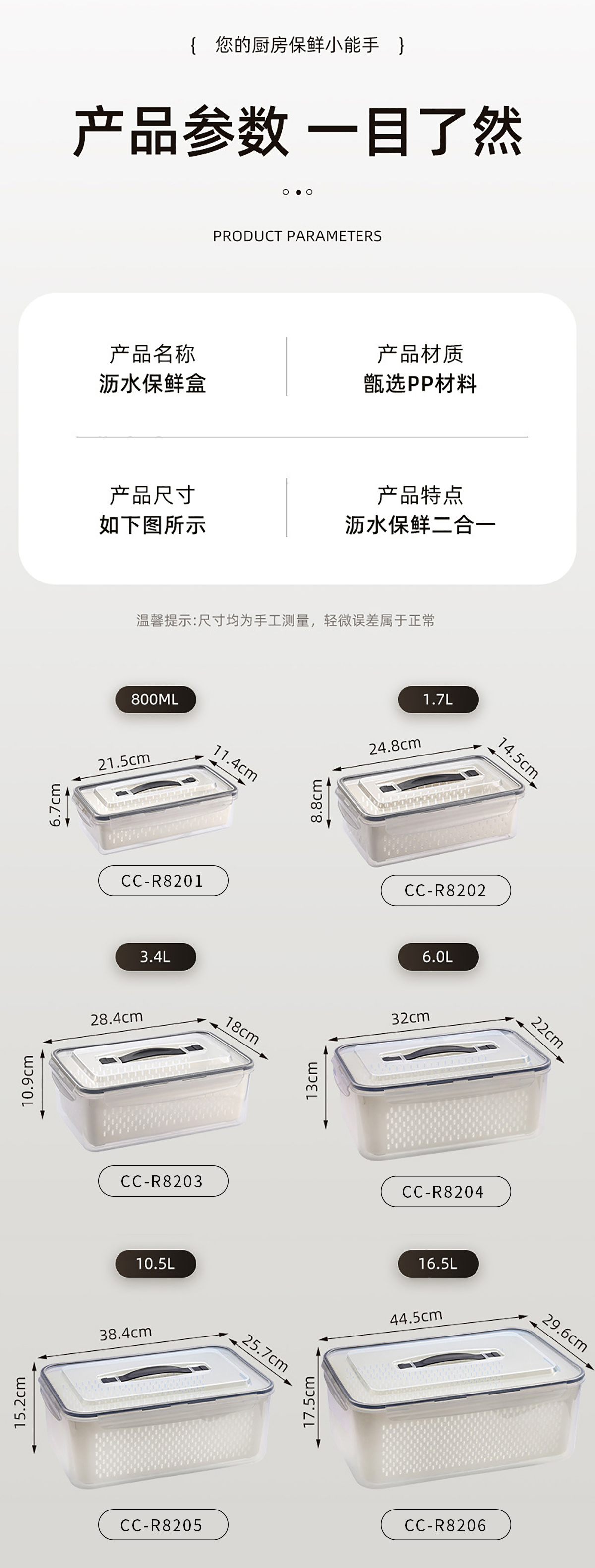 Size: CC-R8201:215*114*67mm/800ml