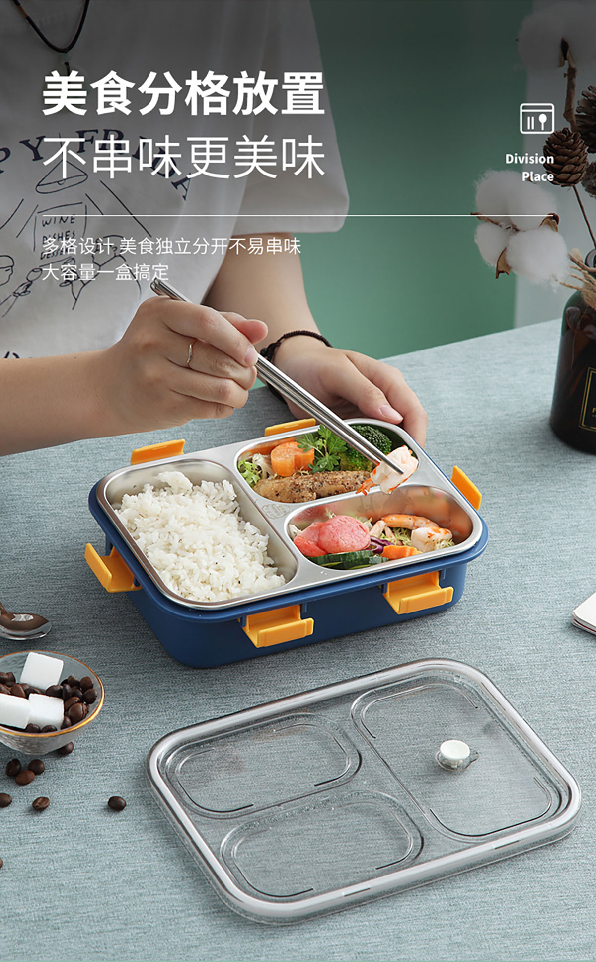 304不銹鋼飯盒(3格)(750ml)