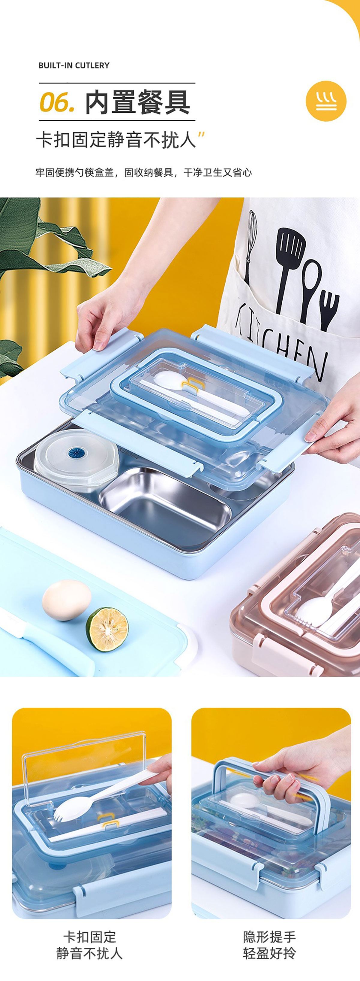 便捷式不銹鋼飯盒 小號(hào)(三格/四格)大號(hào)(四格/五格)