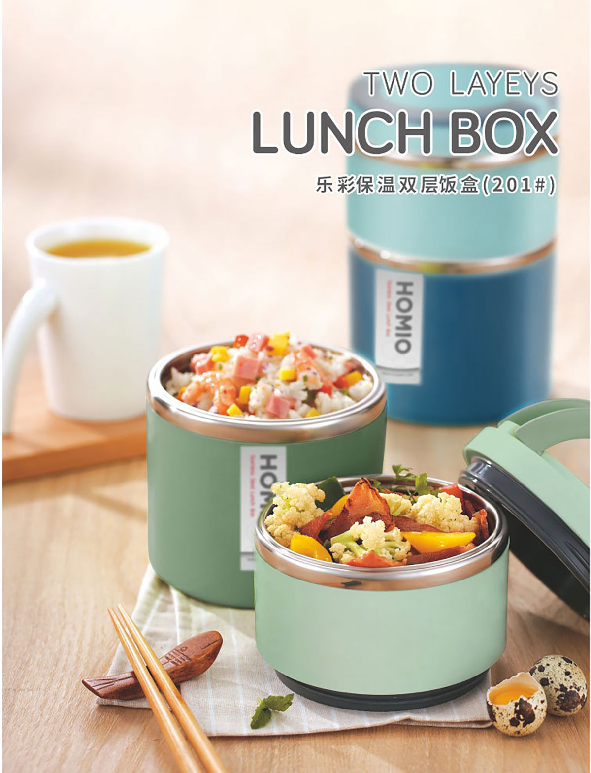 樂(lè)彩飯盒(雙層):Φ113*177mm