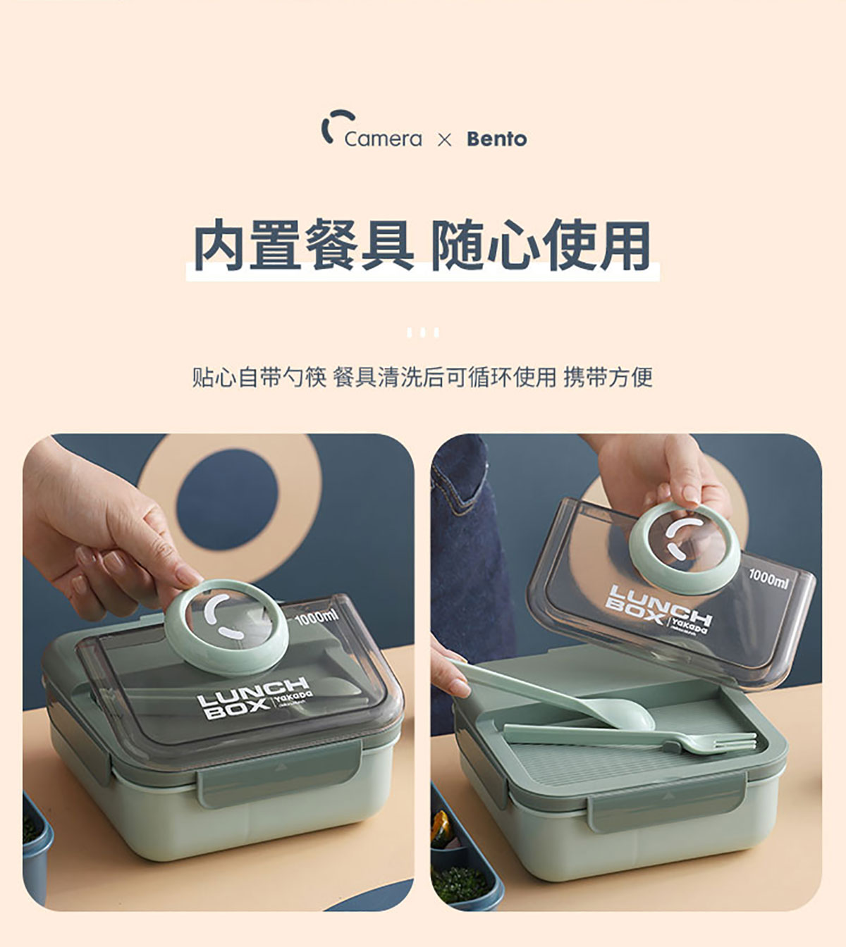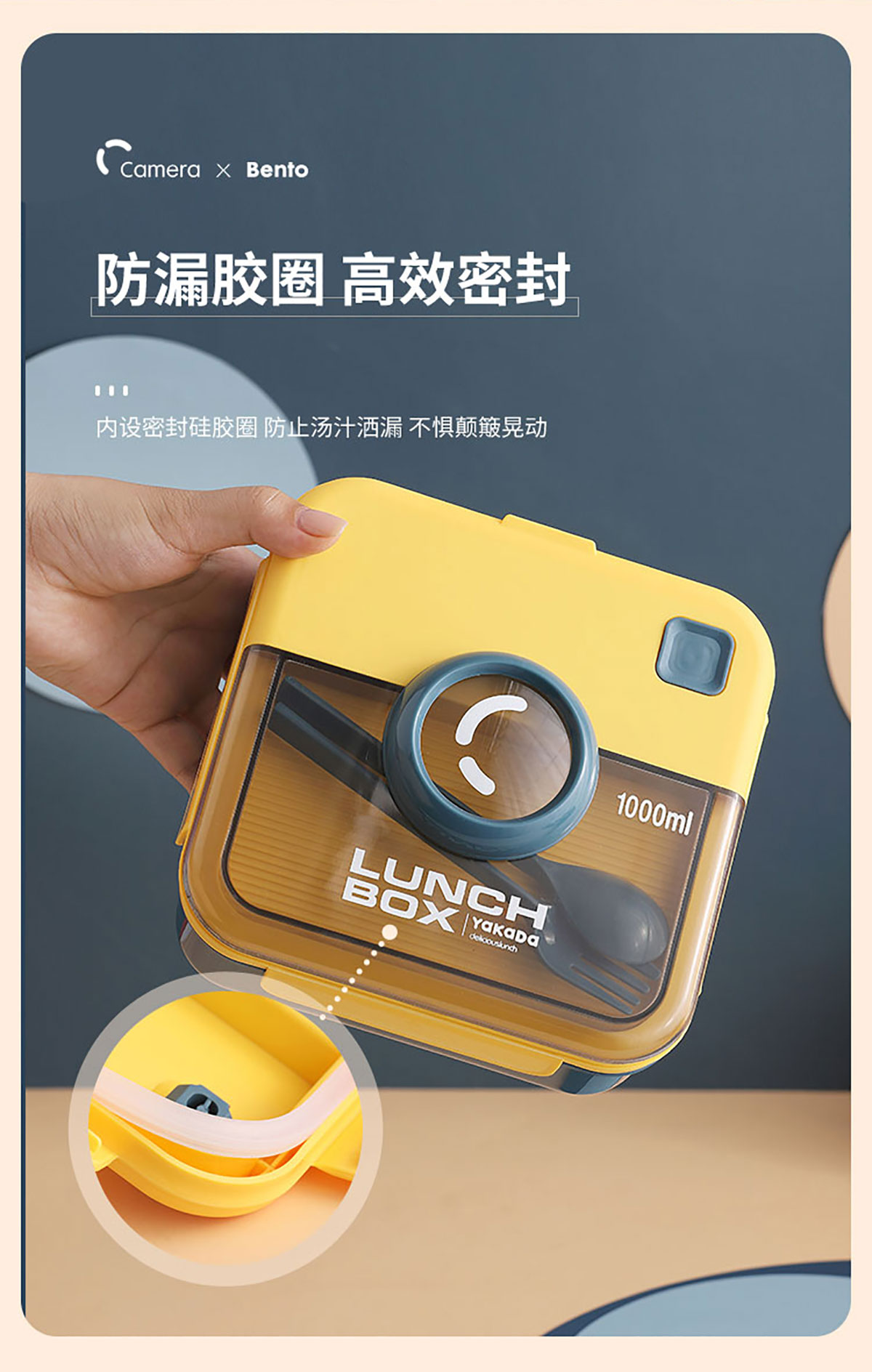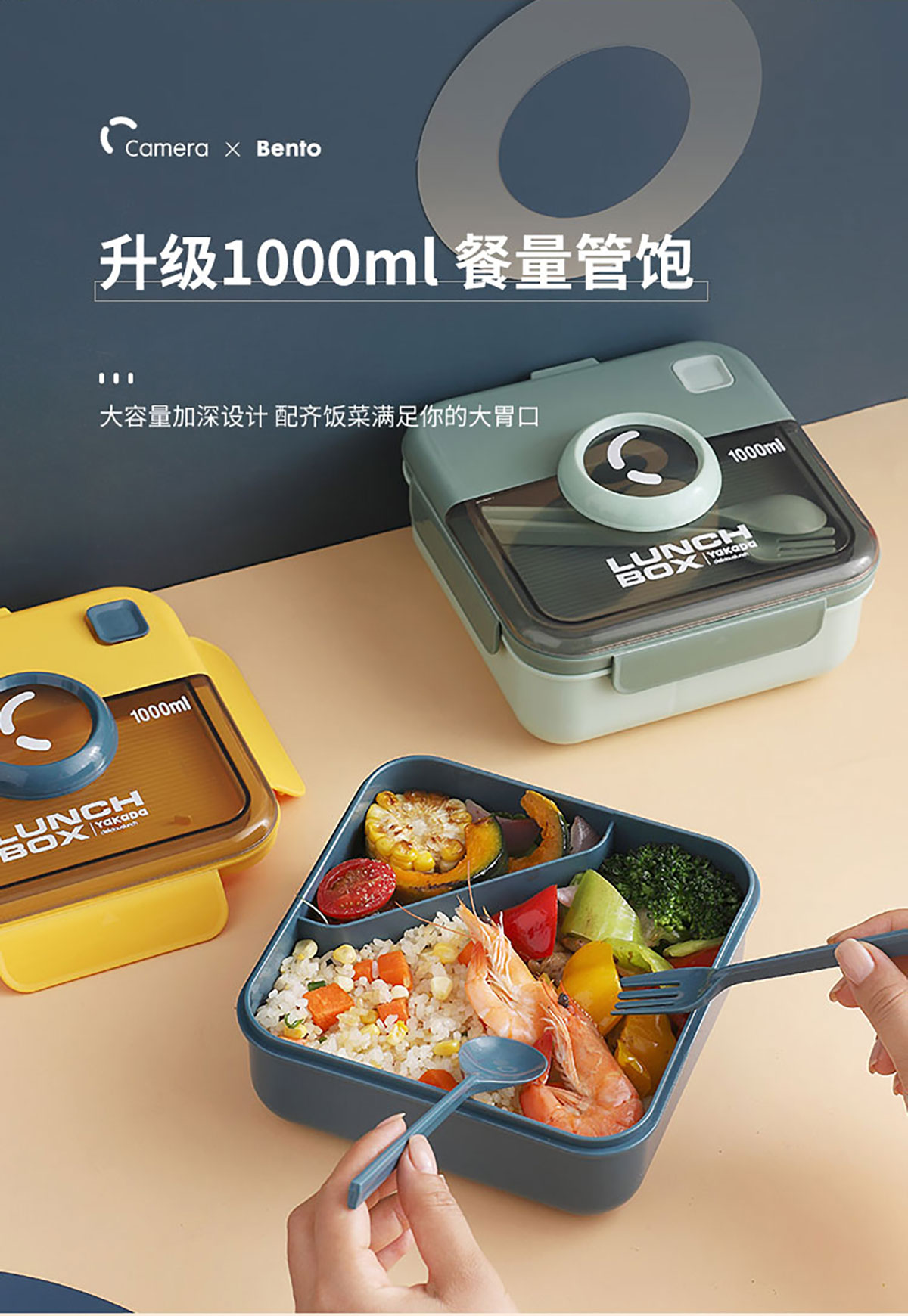 正方相機蓋飯盒1000ml