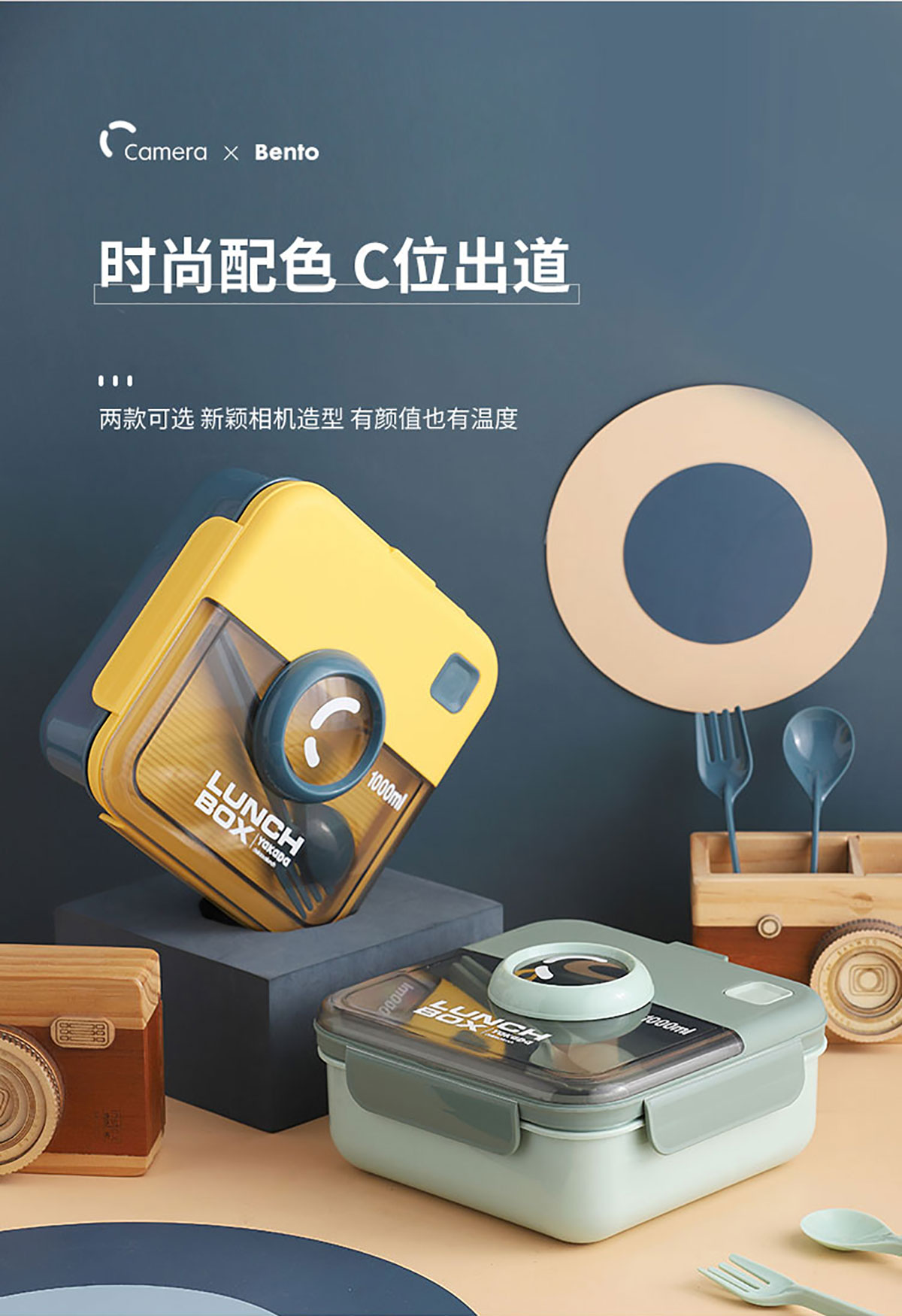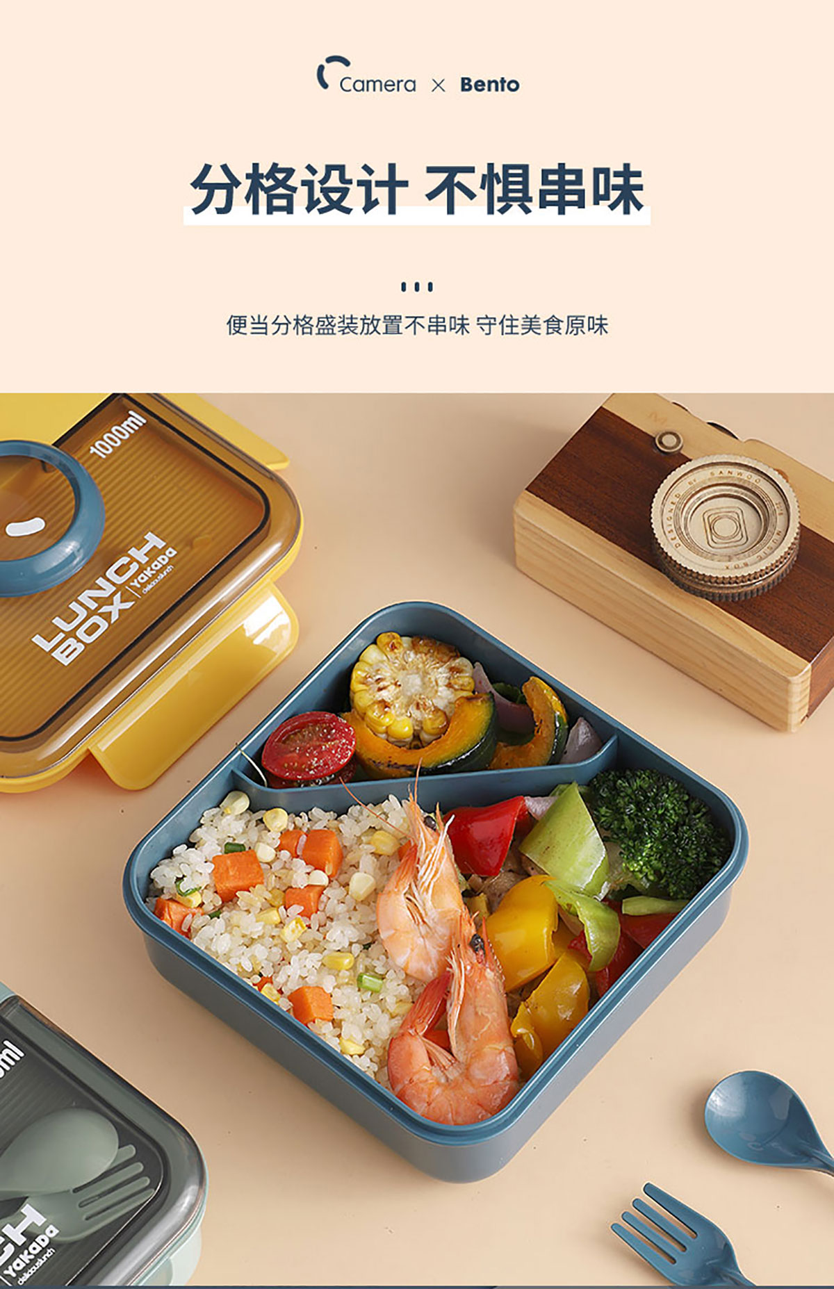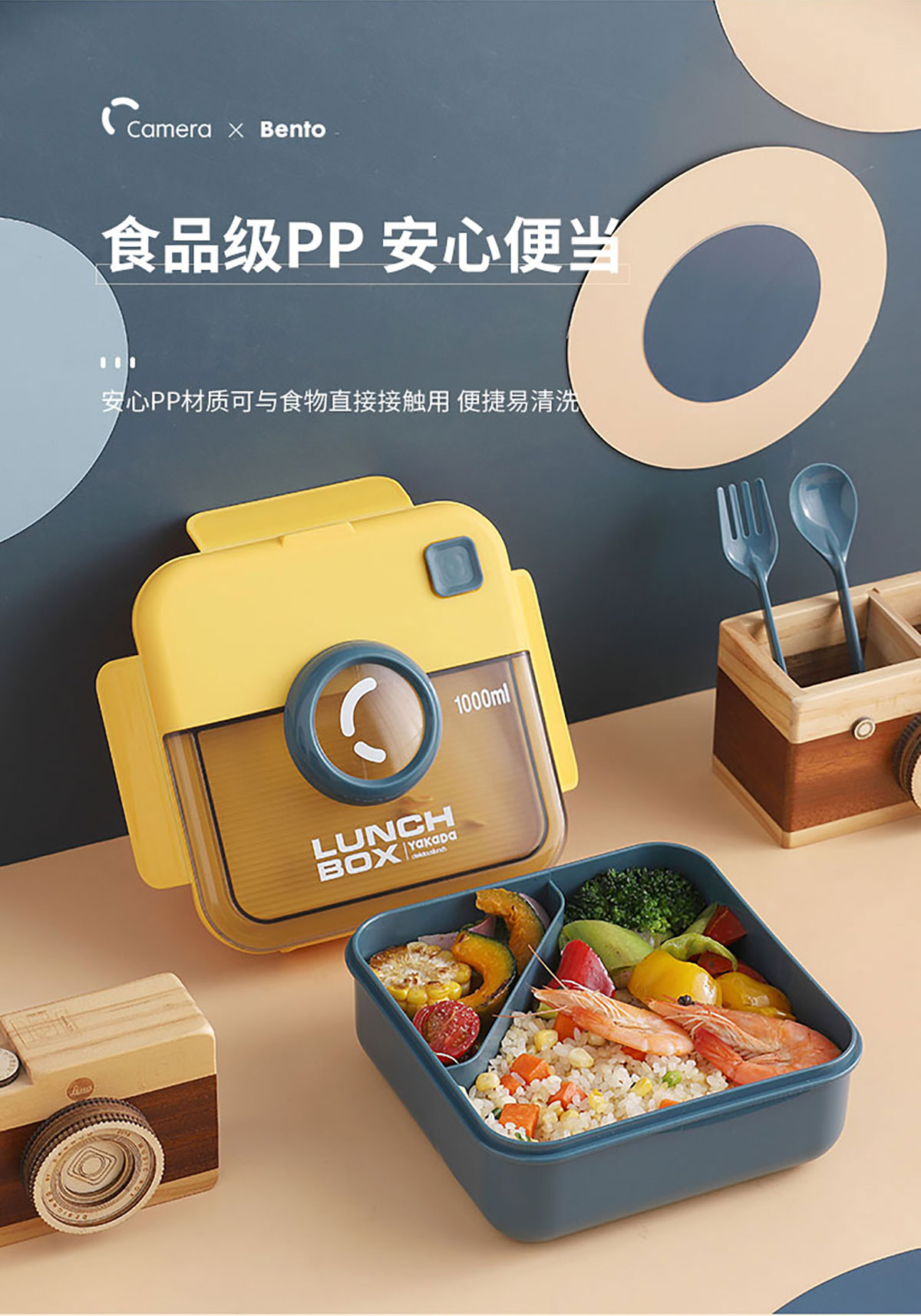 正方相機蓋飯盒1000ml