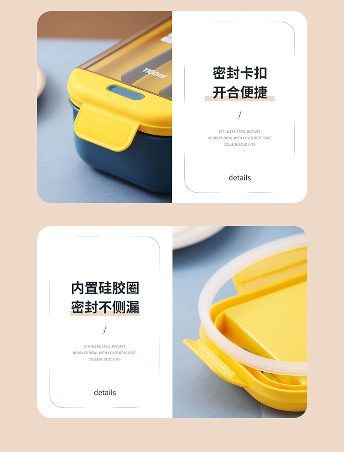 長方透明蓋飯盒1100ml
