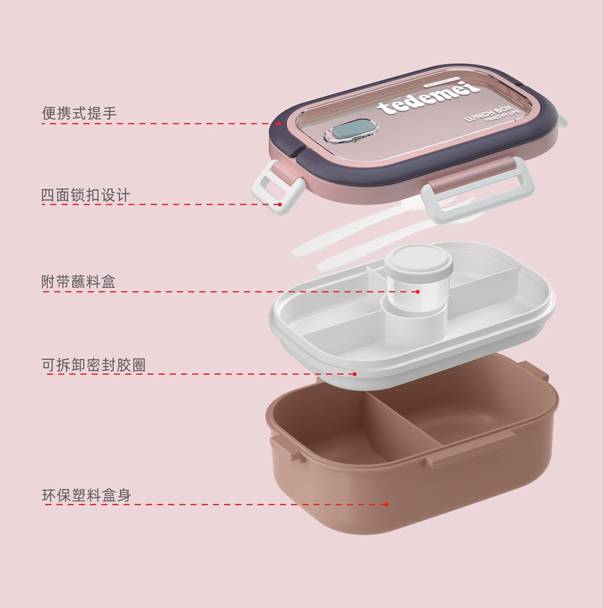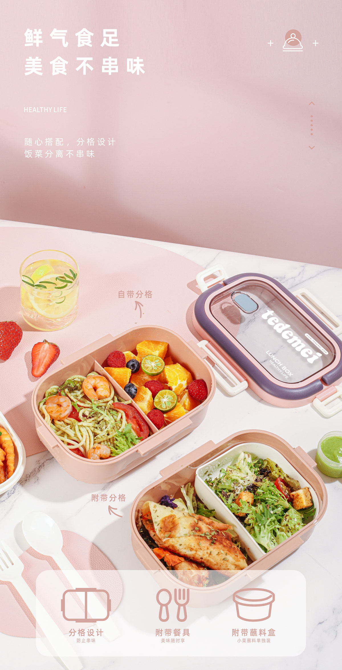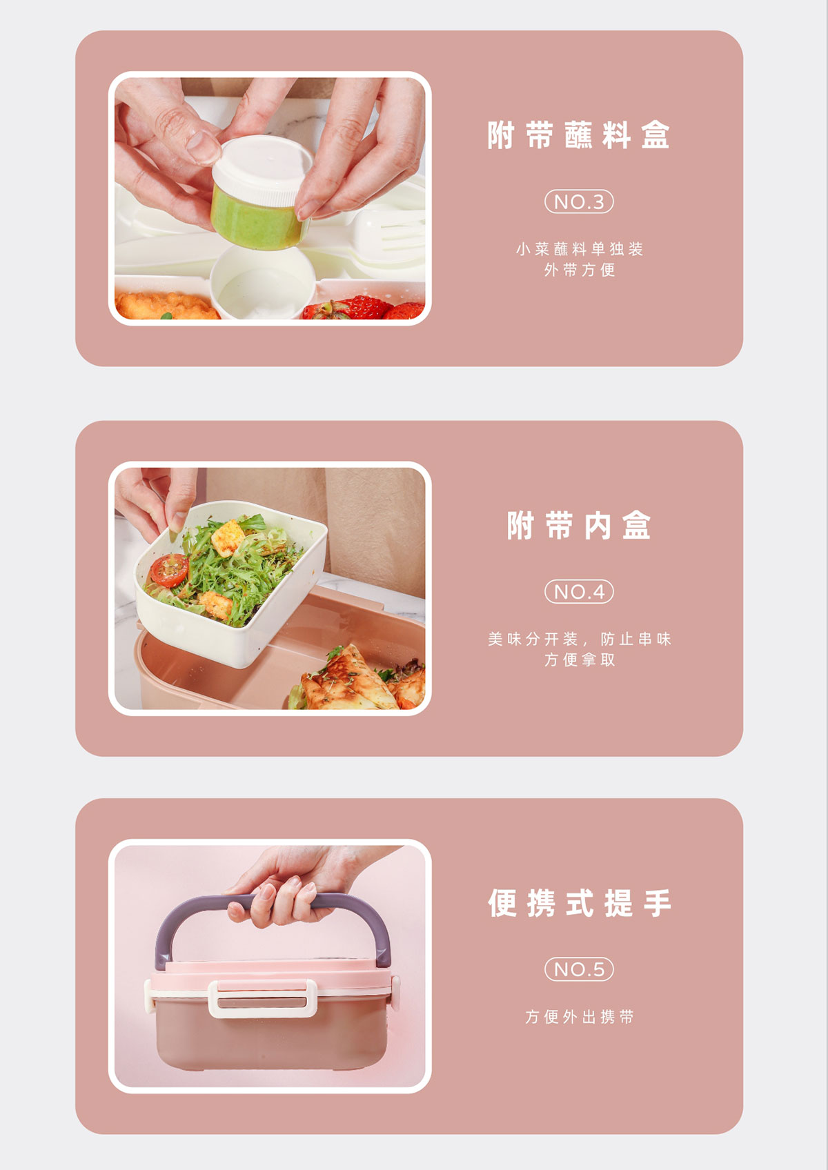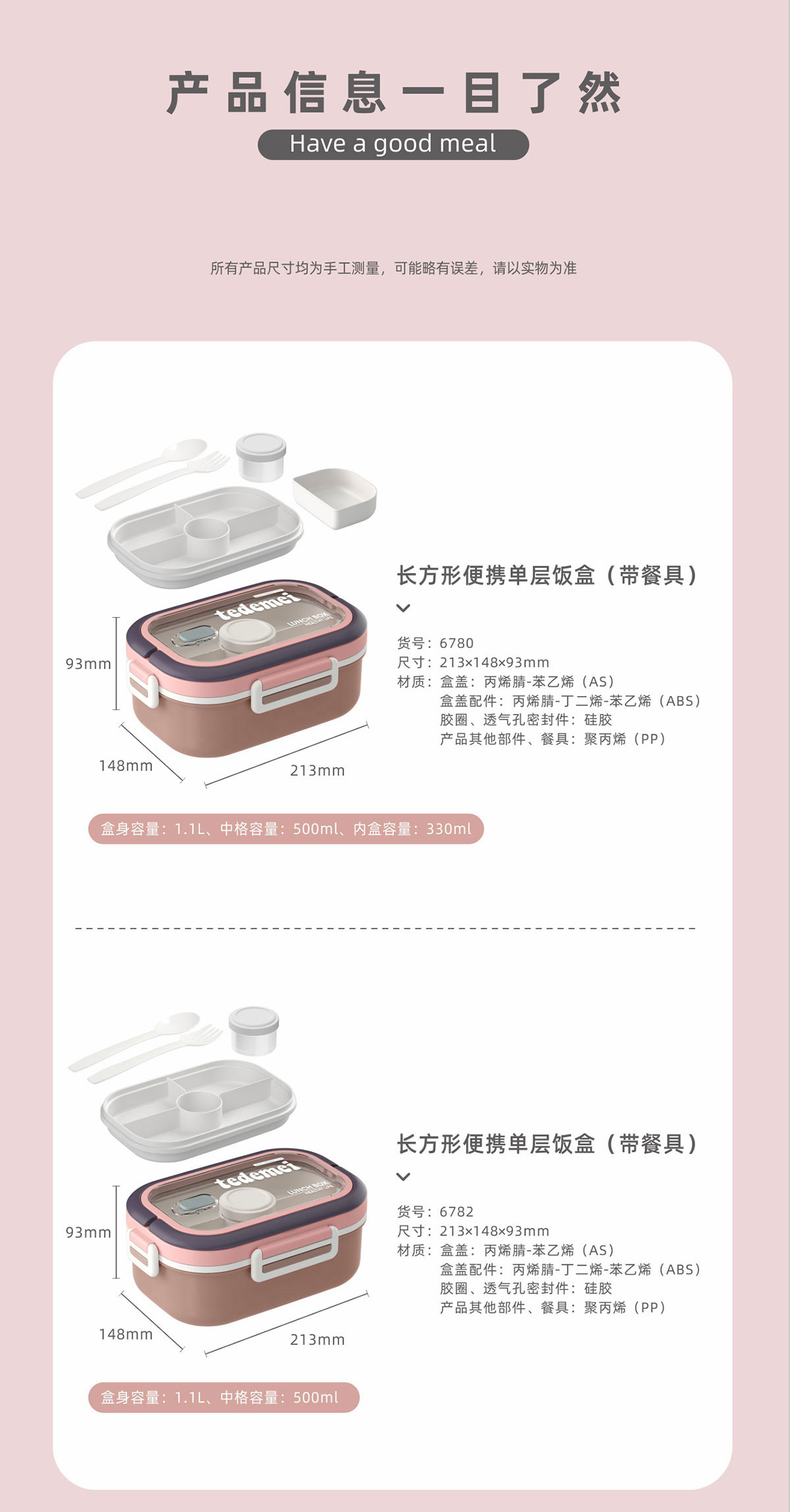 長方形便攜單層飯盒(帶餐具)1.1L+500ml+330ml/1.1L+500ml