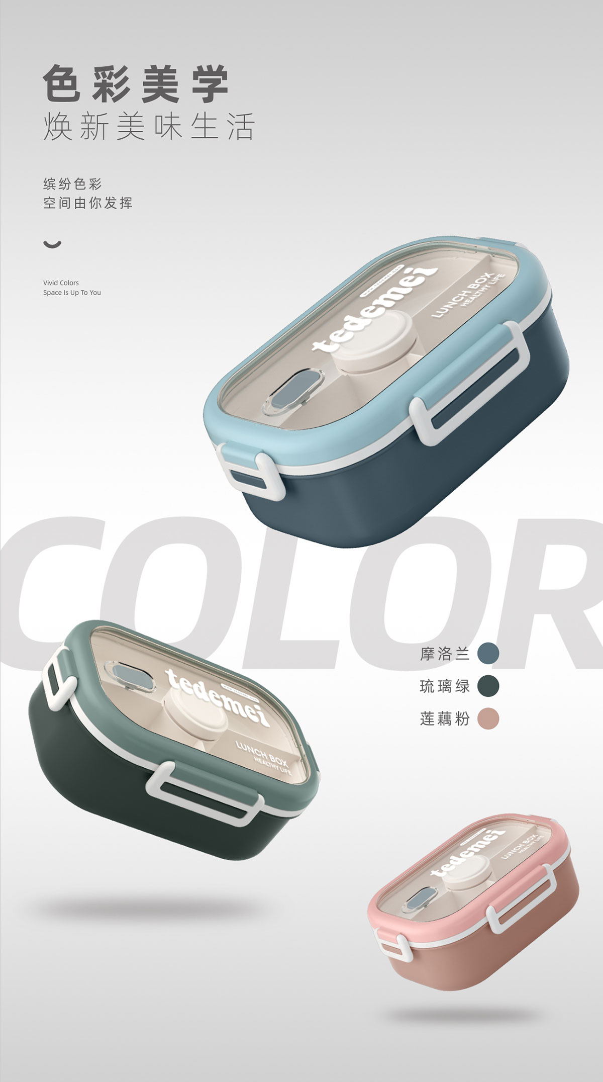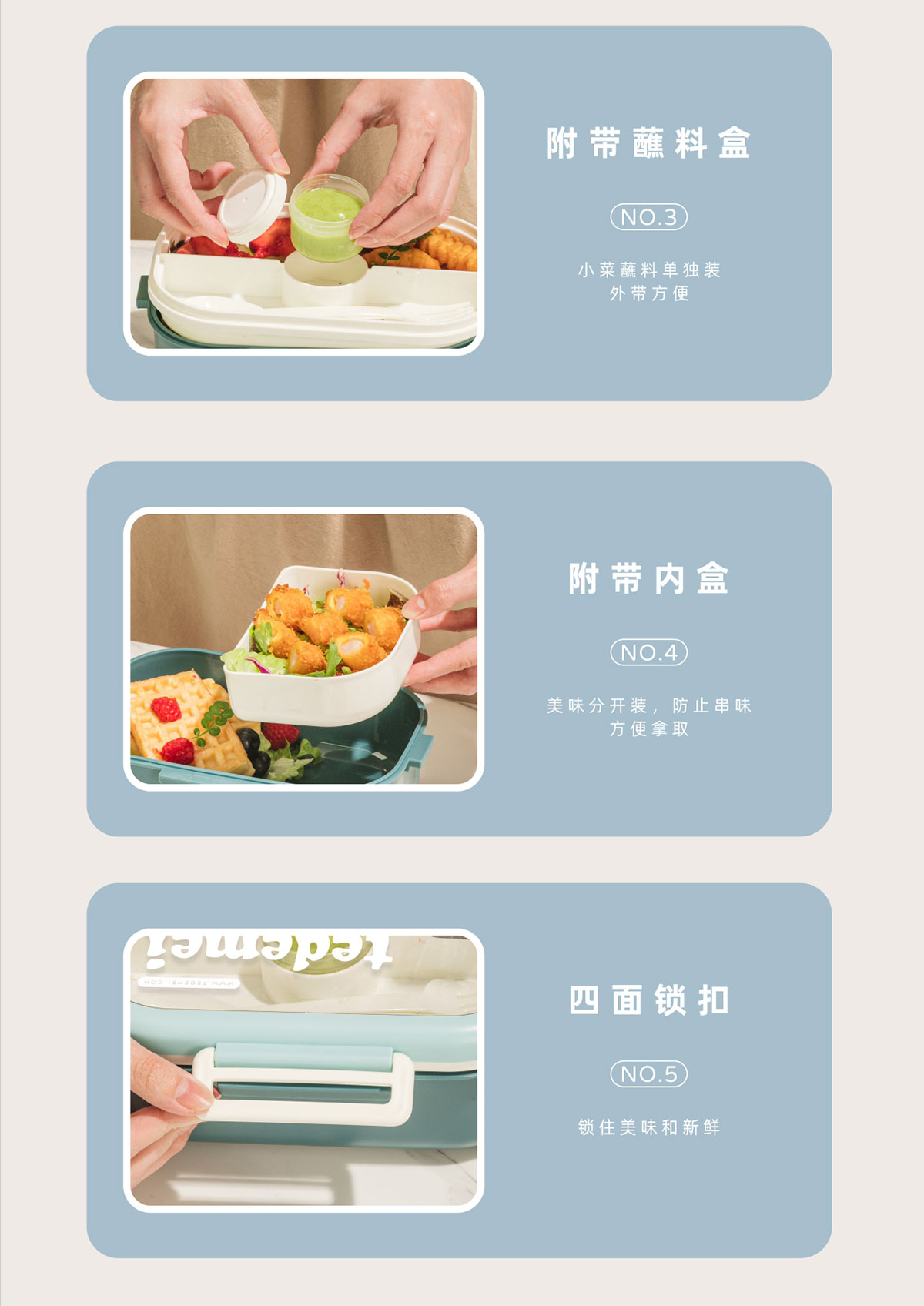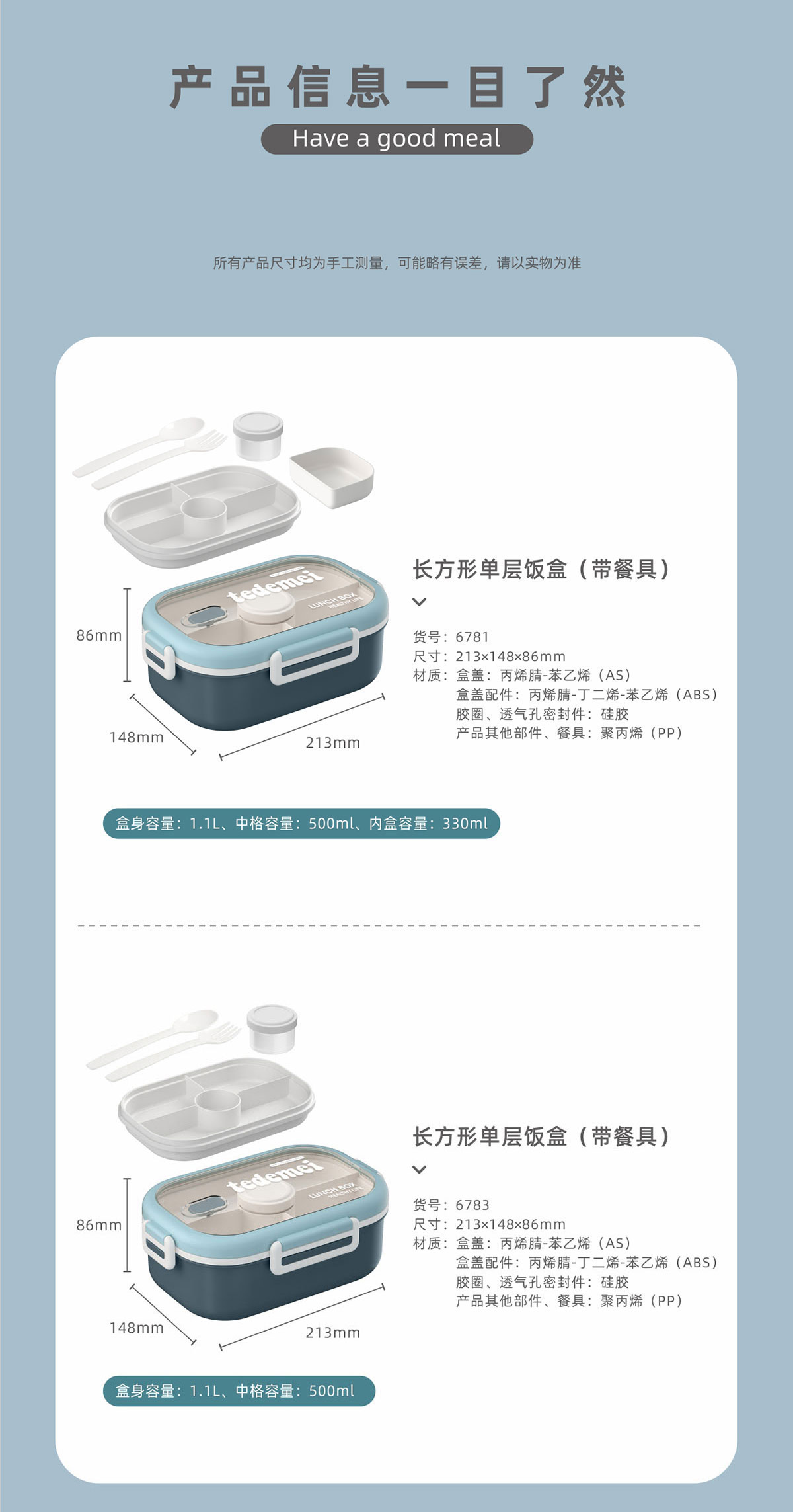 長方形單層飯盒(帶餐具)1.1L+500ml+330ml/1.1L+500ml