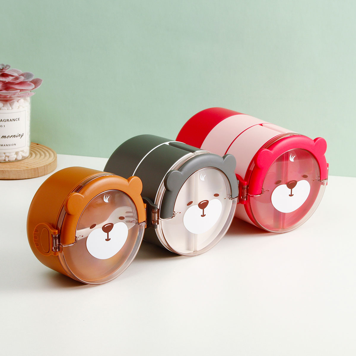 樂(lè)味熊圓形單層/雙層/三層便當(dāng)盒(通格/分格)
