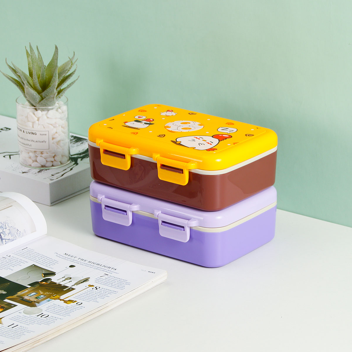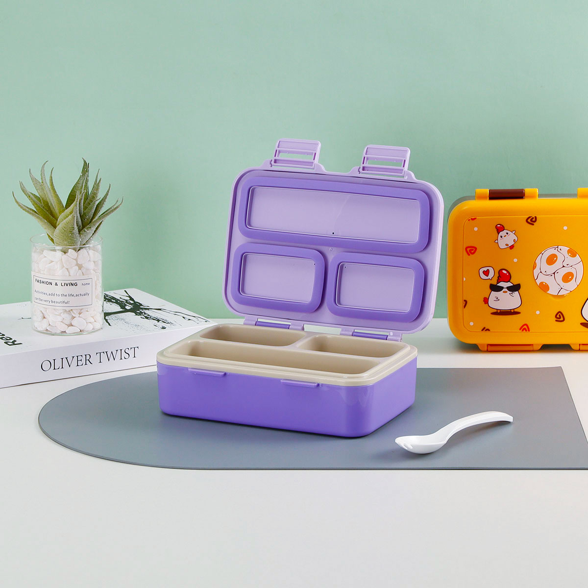 悠悅萌咭三格便當盒(670ml)