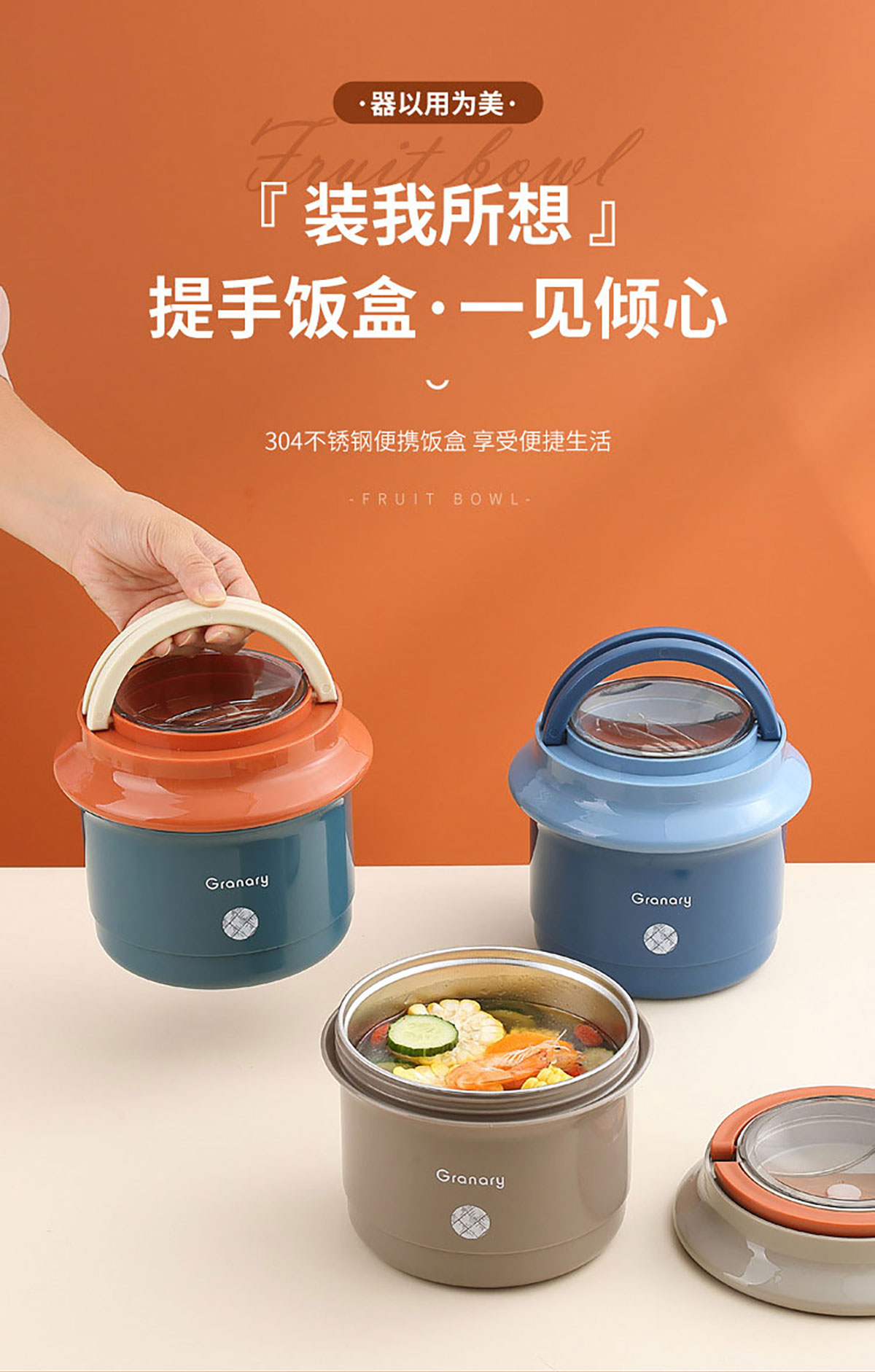 不銹鋼圓形糧倉(cāng)提鍋1200ml