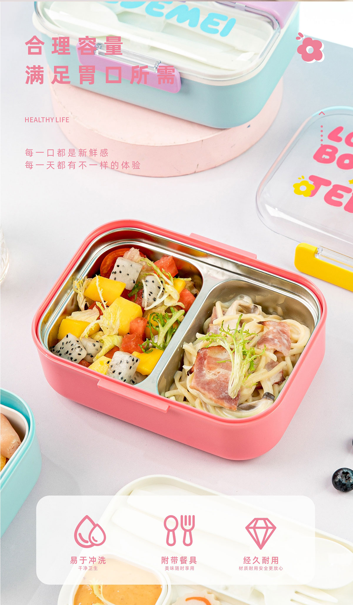 長(zhǎng)方形不銹鋼餐盒(帶餐具)