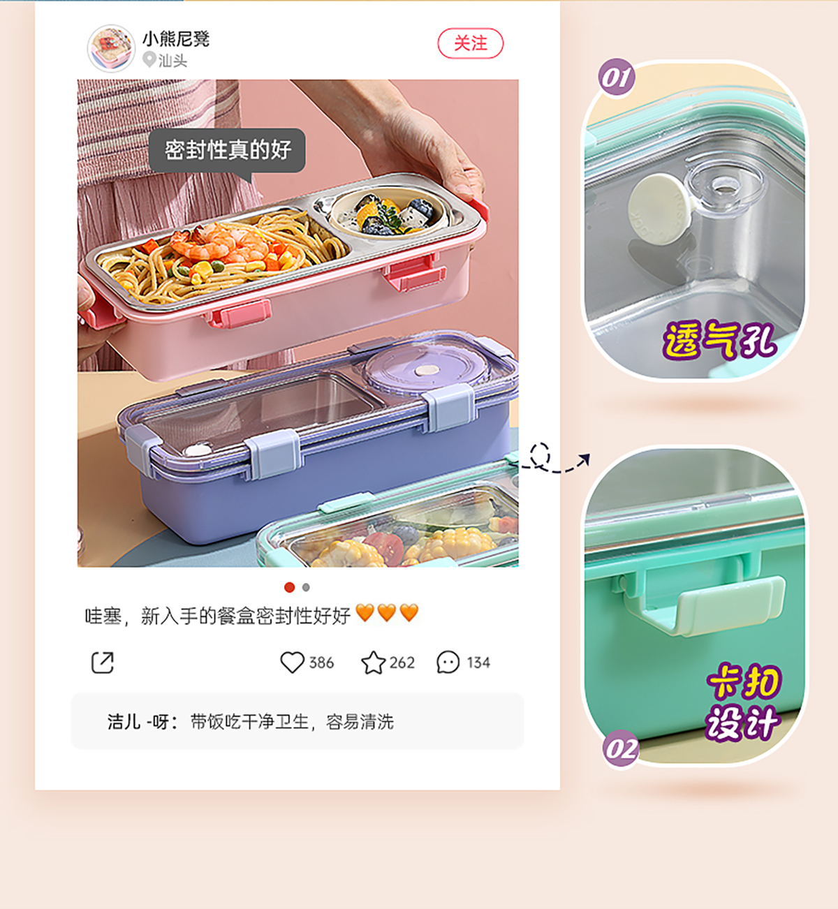 輕食不銹鋼餐盒兩格帶碗600ml+150ml