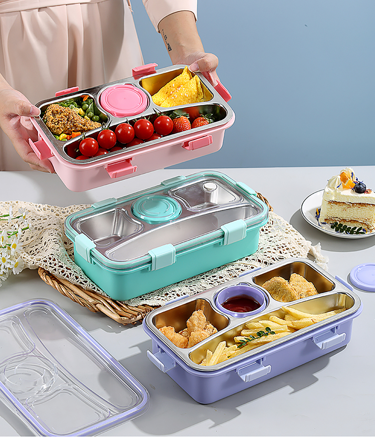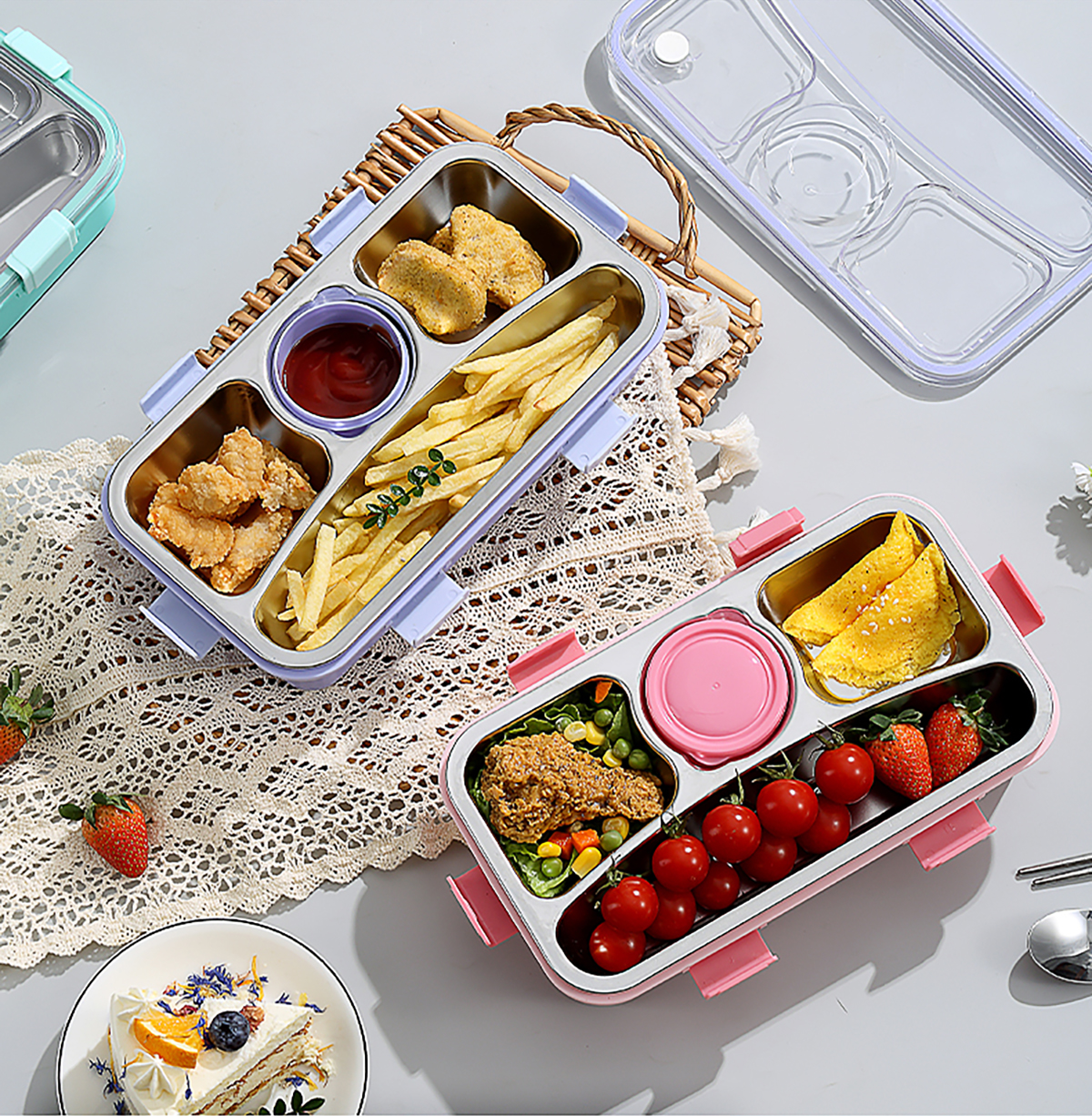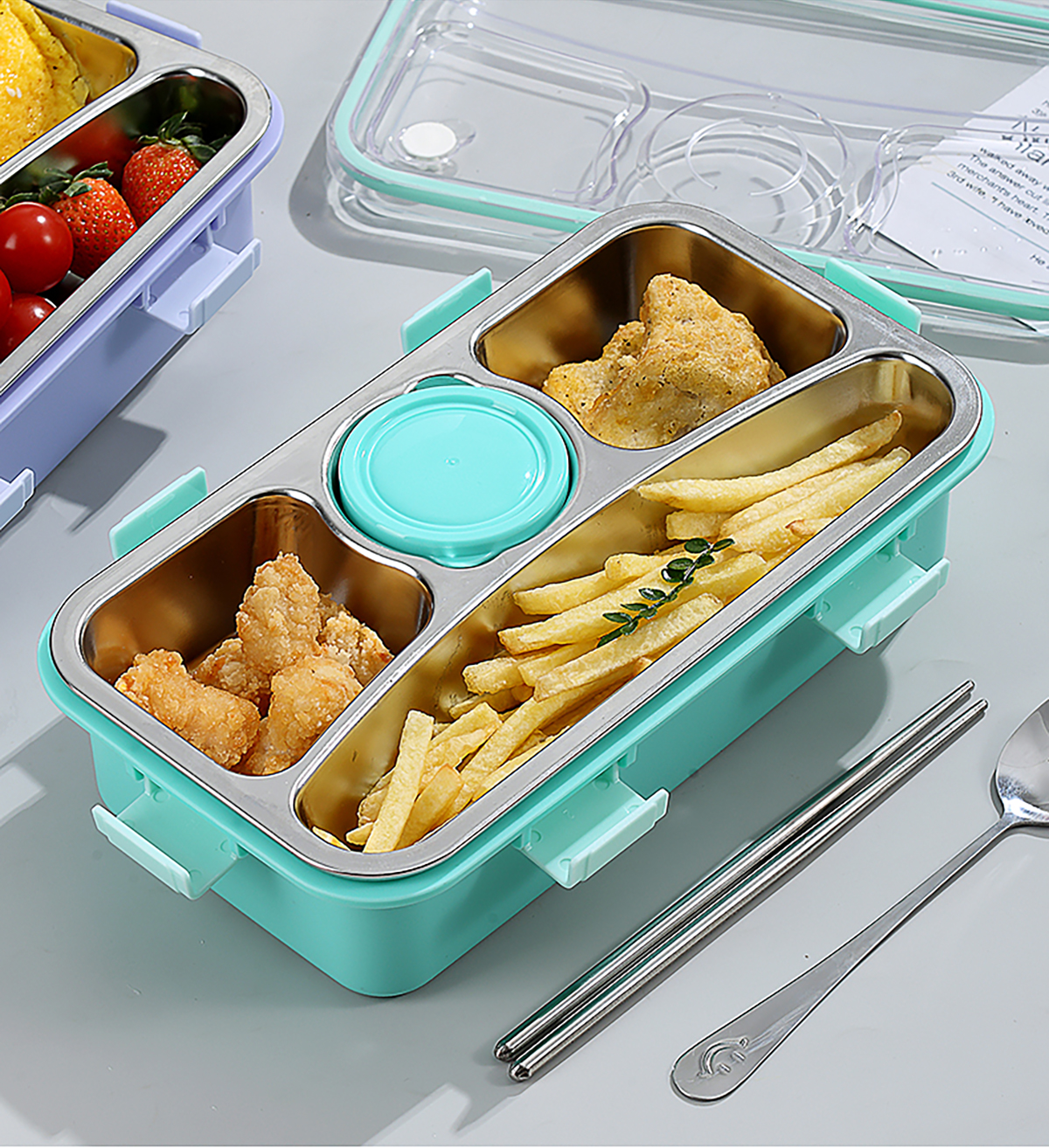 輕食不銹鋼餐盒四格帶小碗650ml+70ml