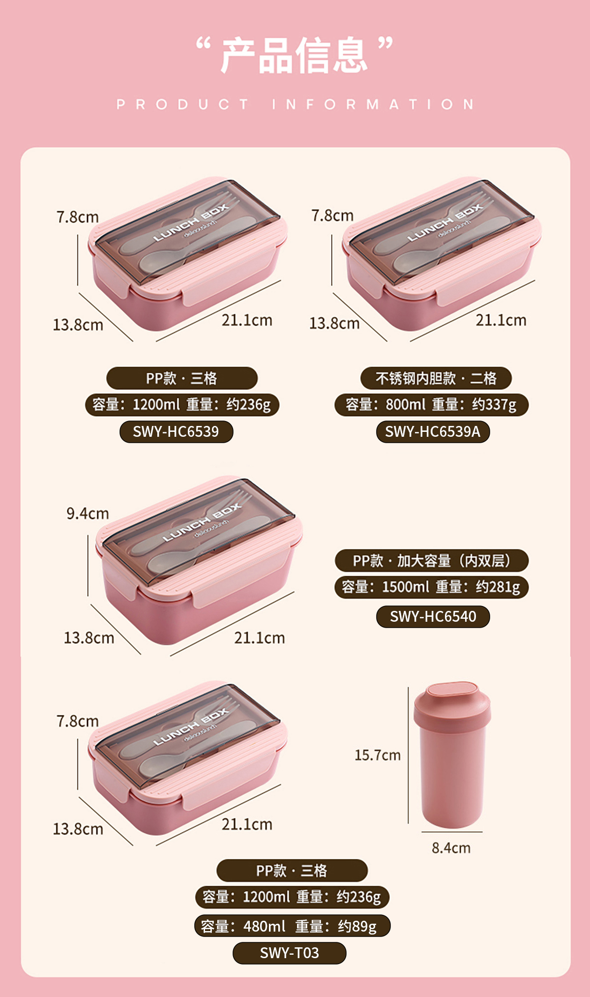 SWY-T03(套裝):211*138*78mm/1200ml 水壺:84*157mm/480ml