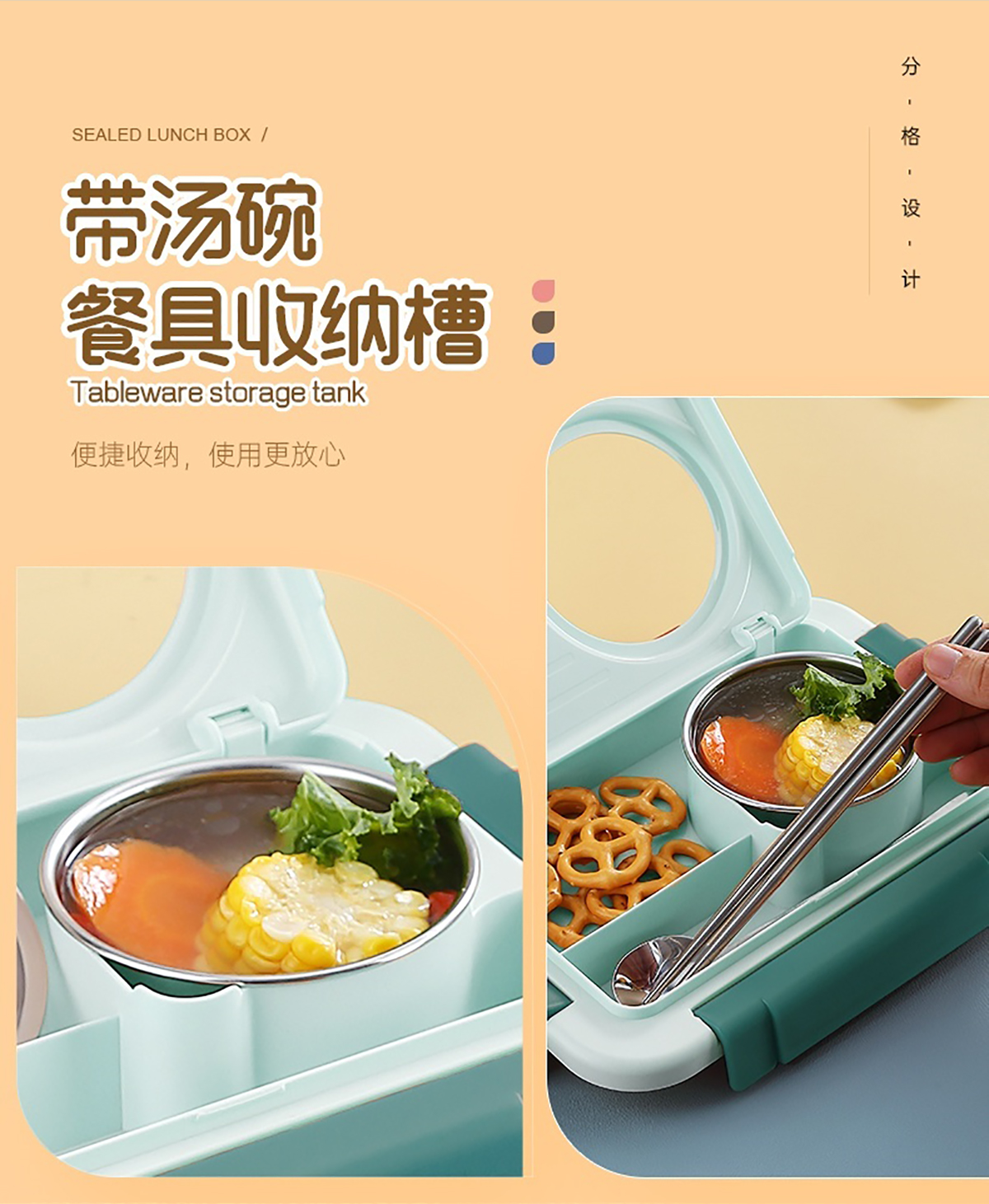 太空艙不銹鋼飯盒(2格/3格+碗150ml+不銹鋼勺筷)