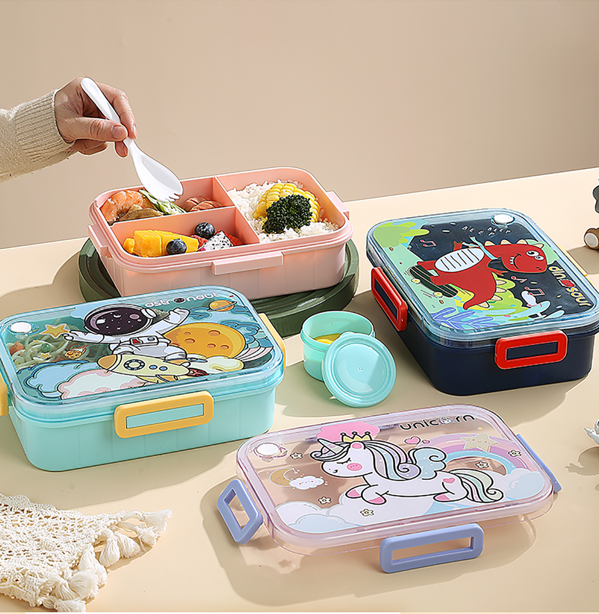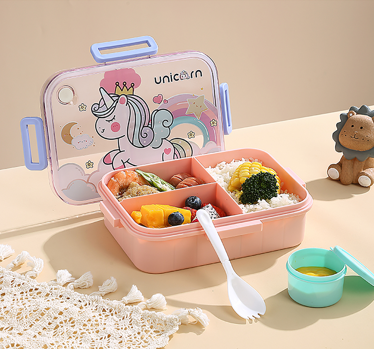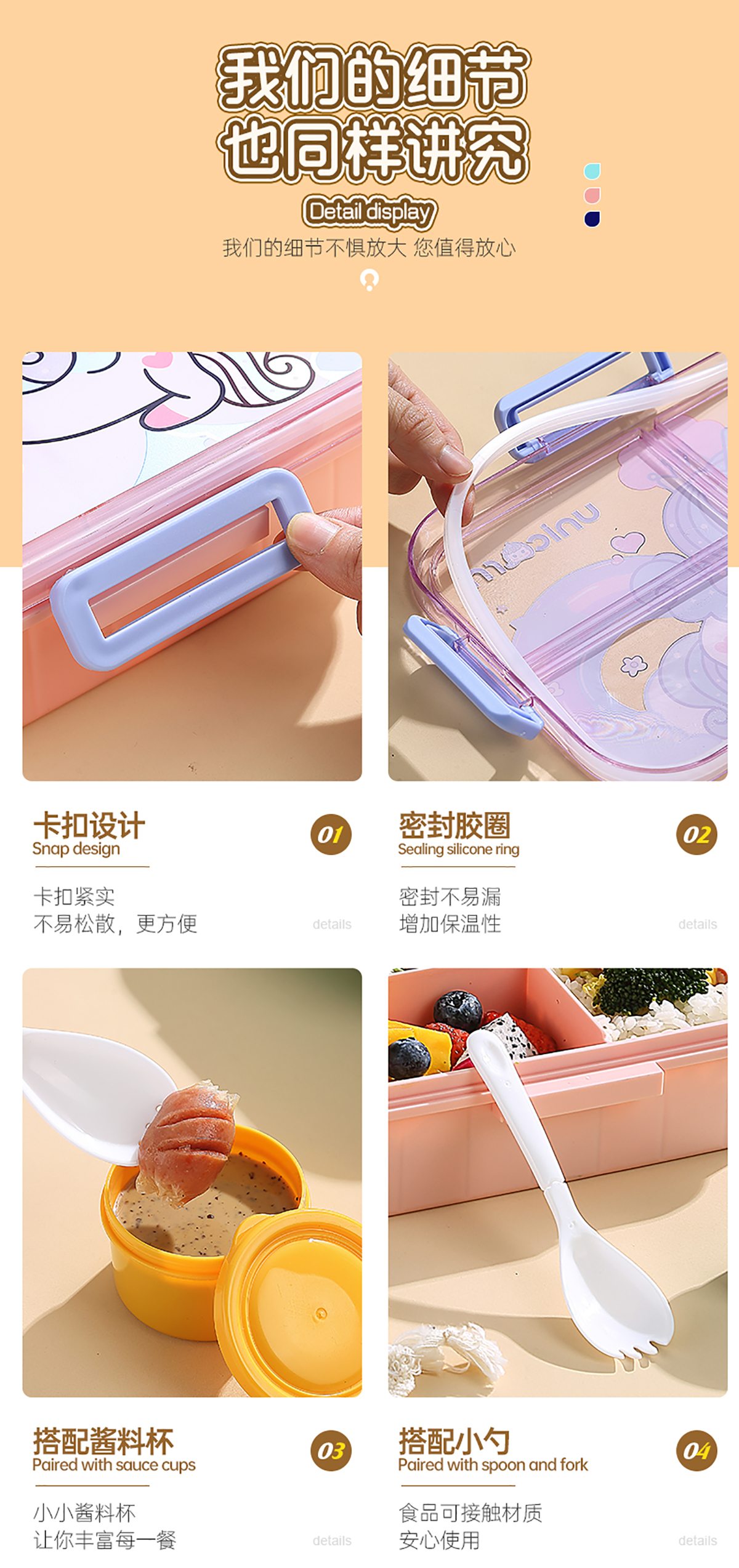 1.2L萌趣密封餐盒(3格+沙拉杯80ml+PP勺子)