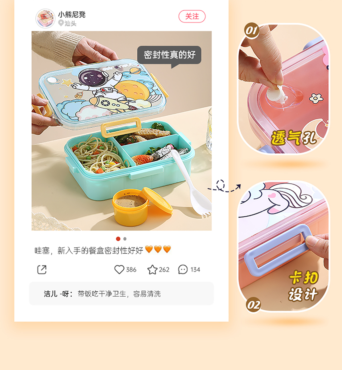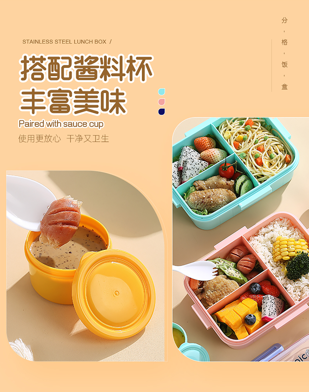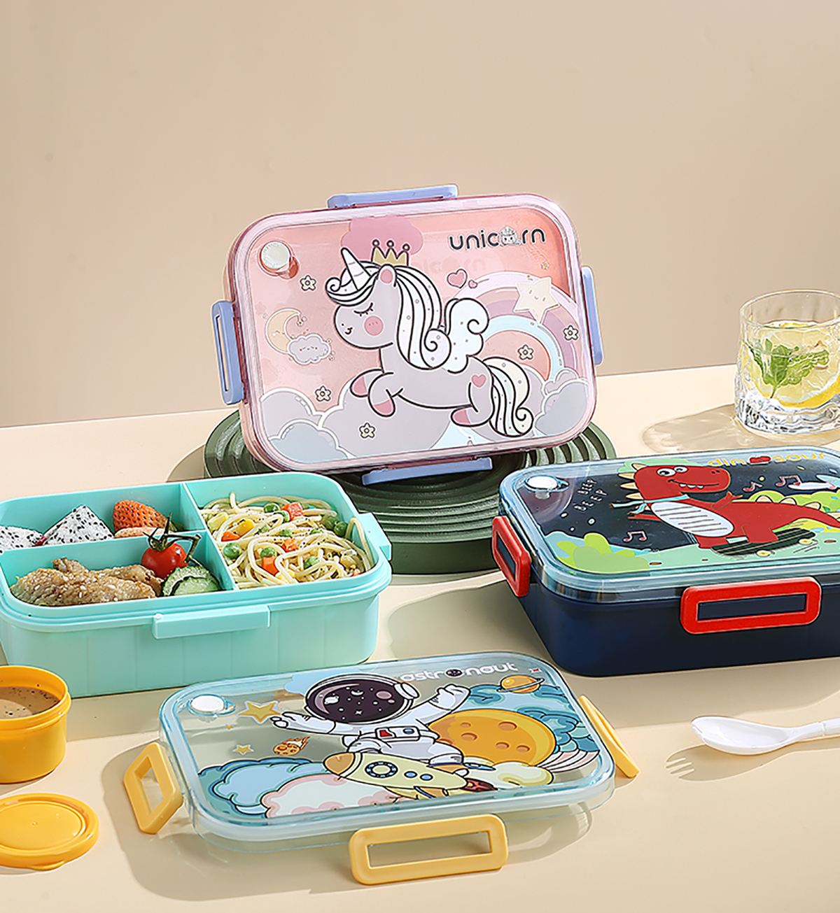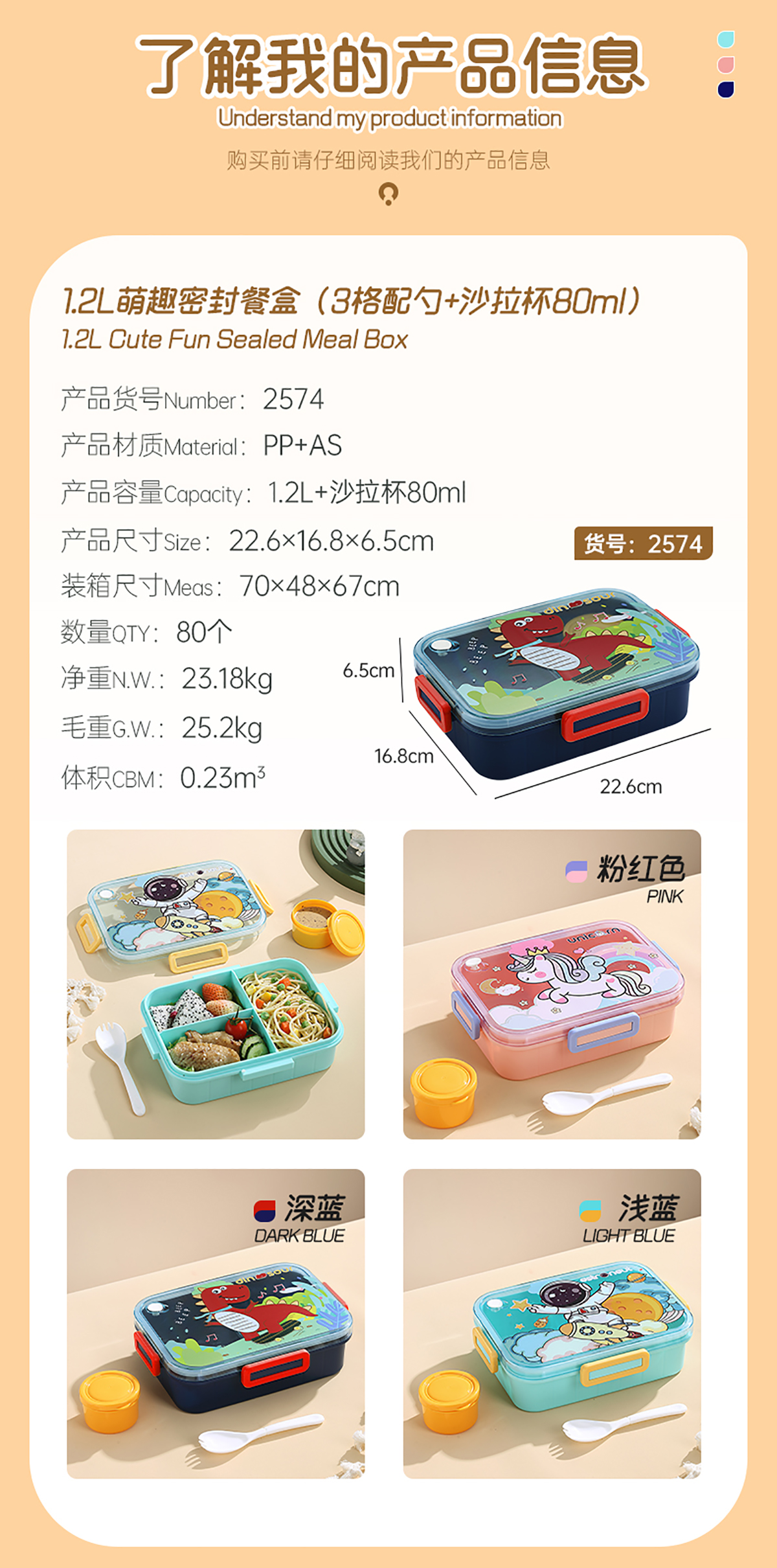 1.2L萌趣密封餐盒(3格+沙拉杯80ml+PP勺子)
