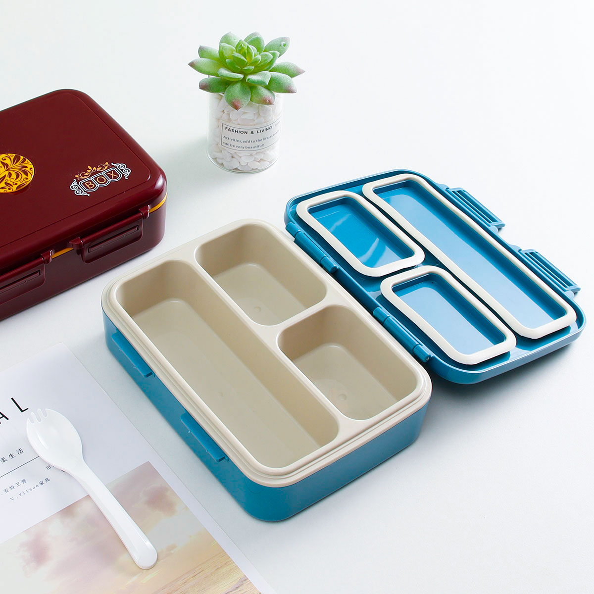 悠悅簡歐三格便當盒(1000ml)