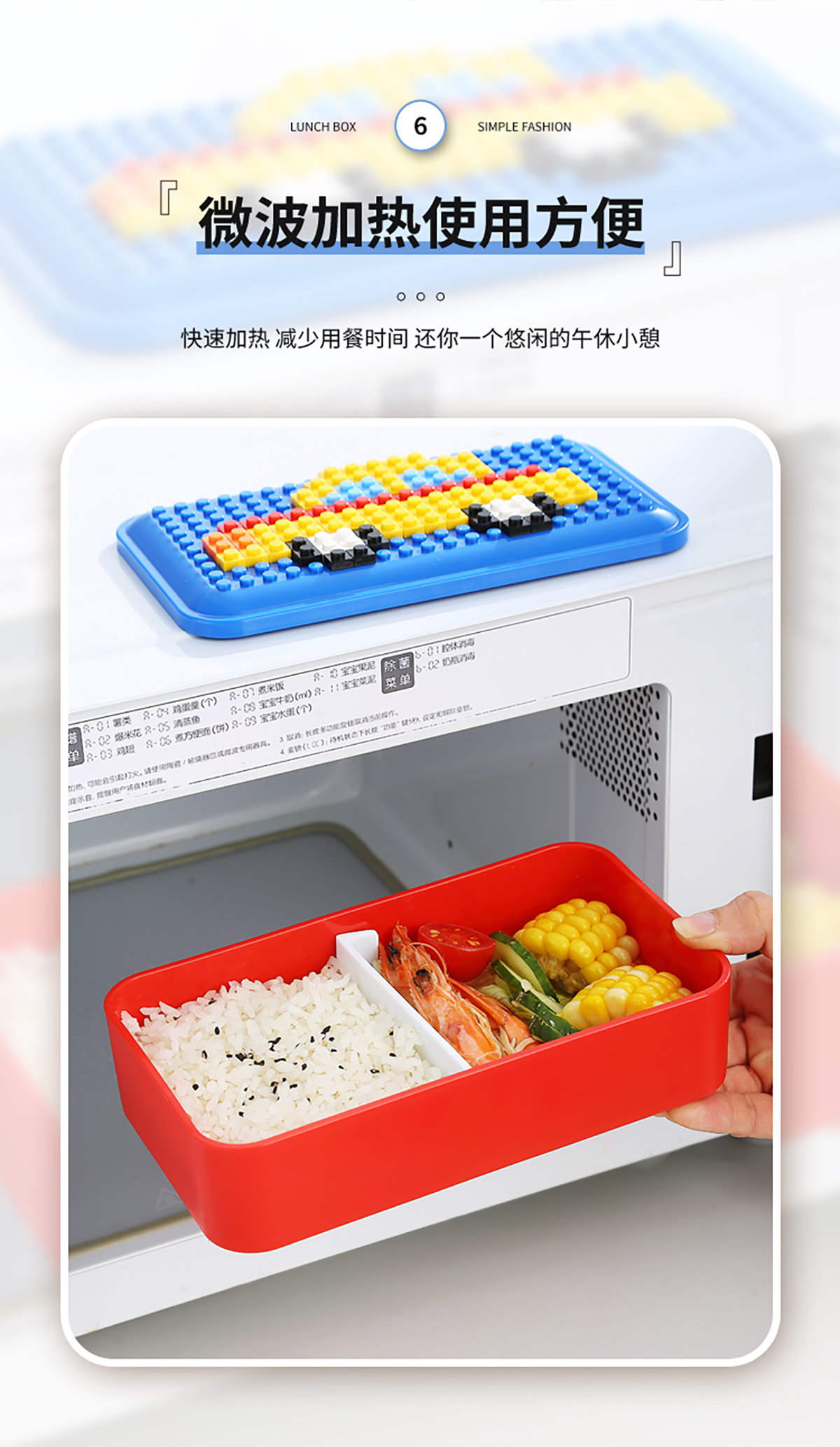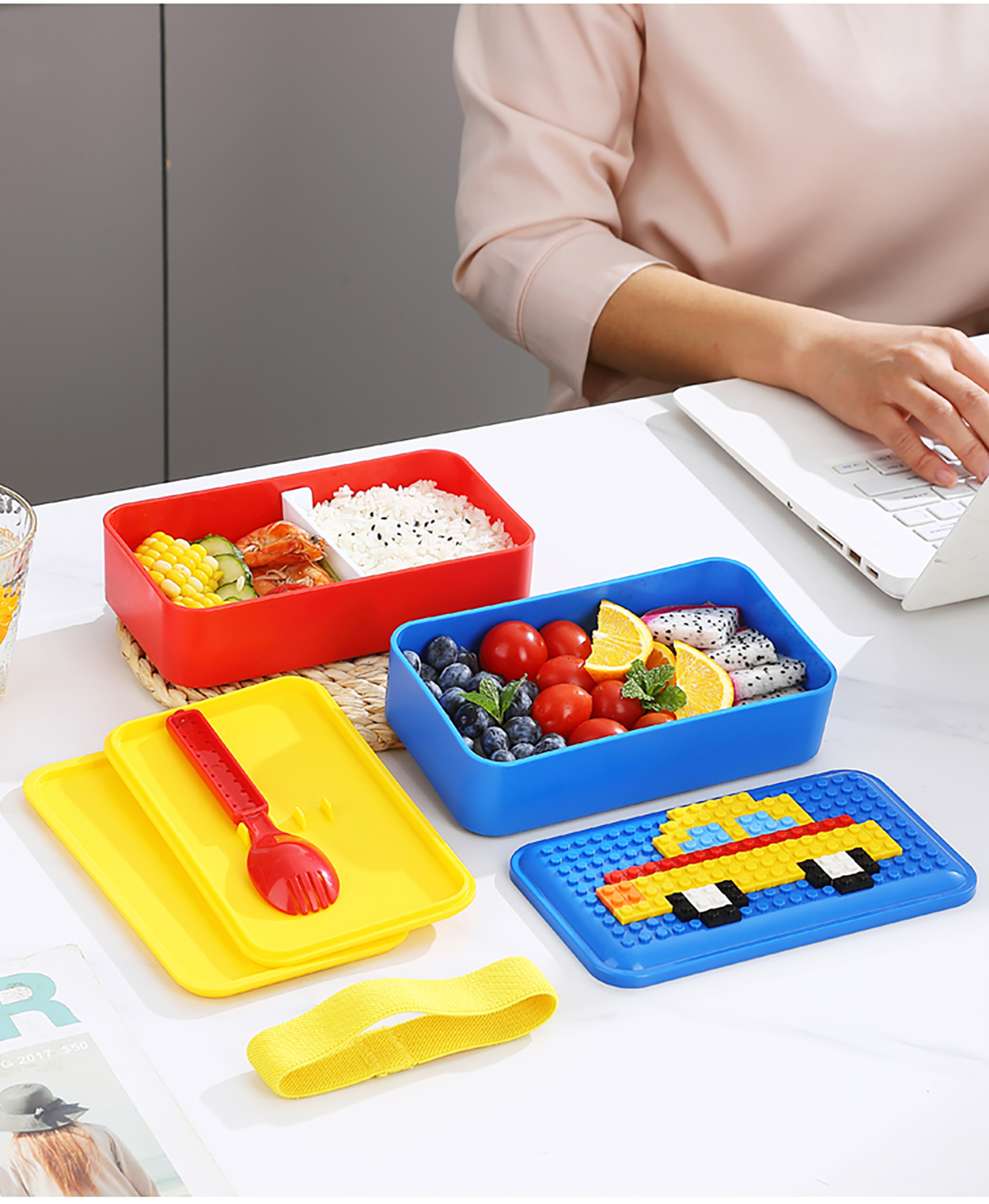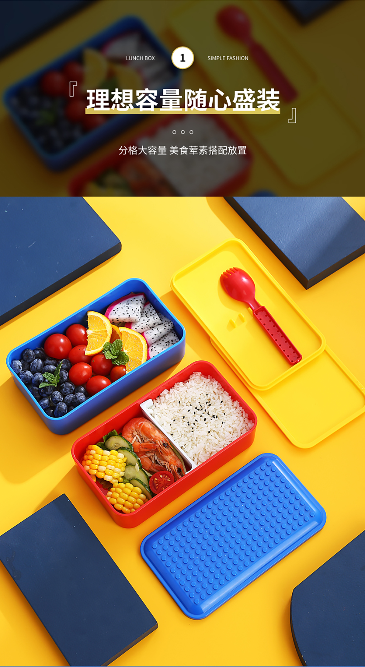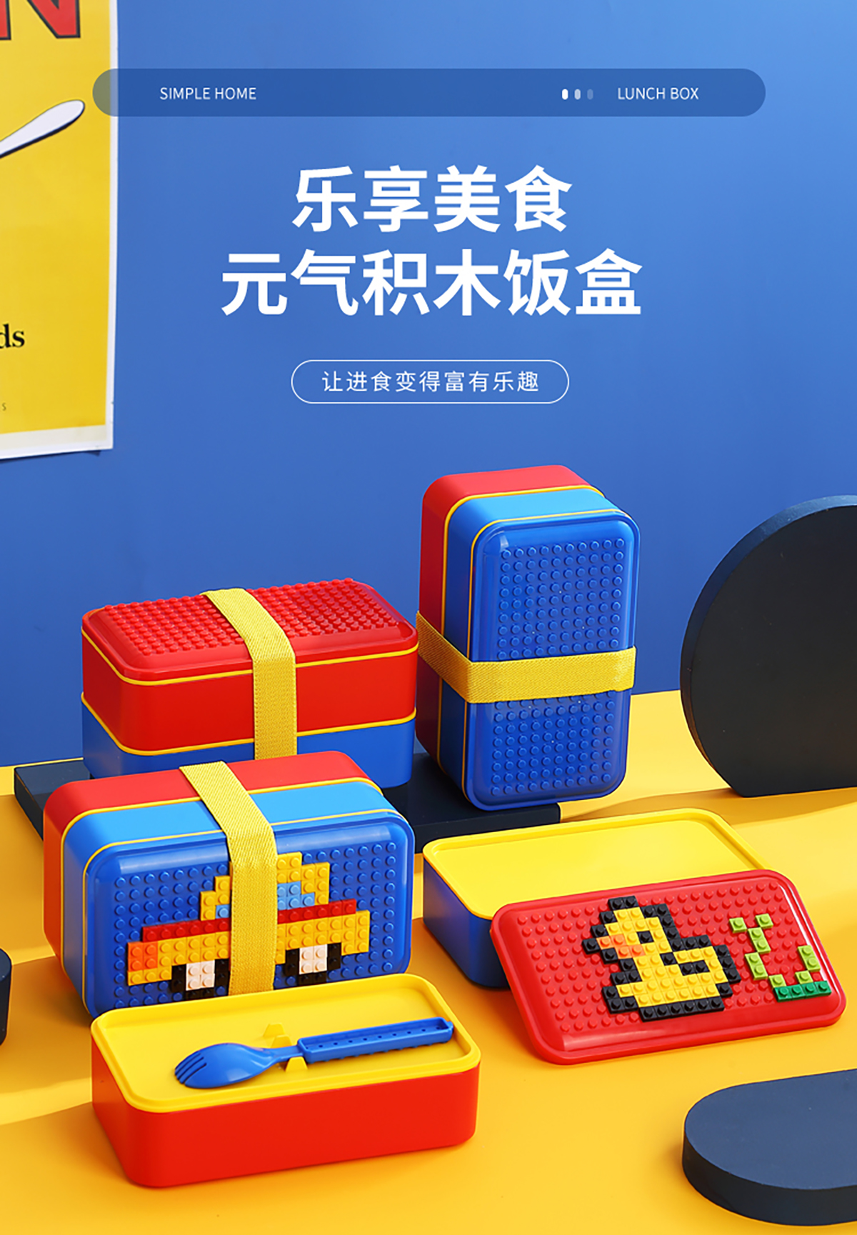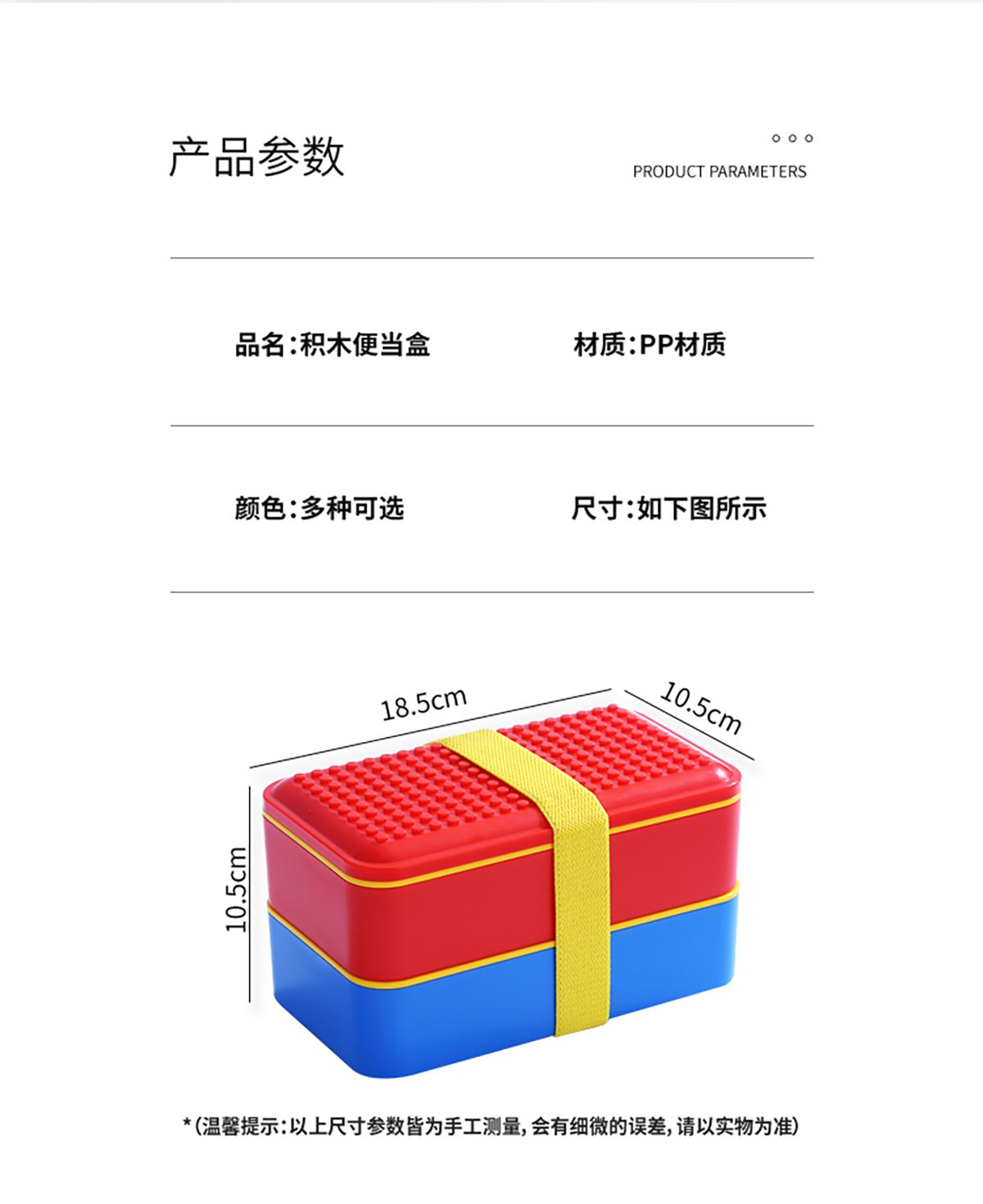 積木長方雙層綁帶飯盒1000ml