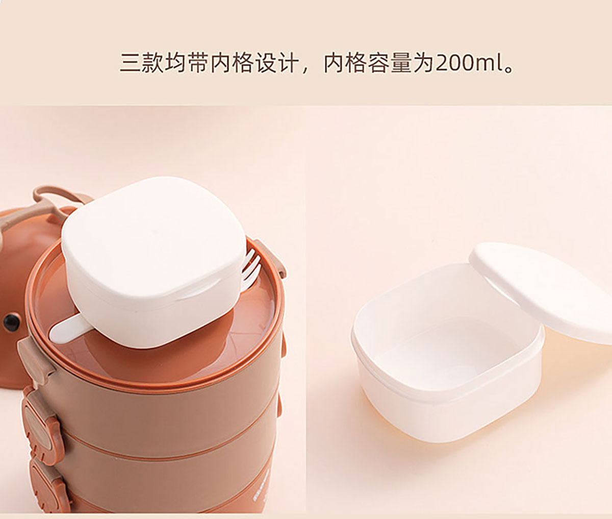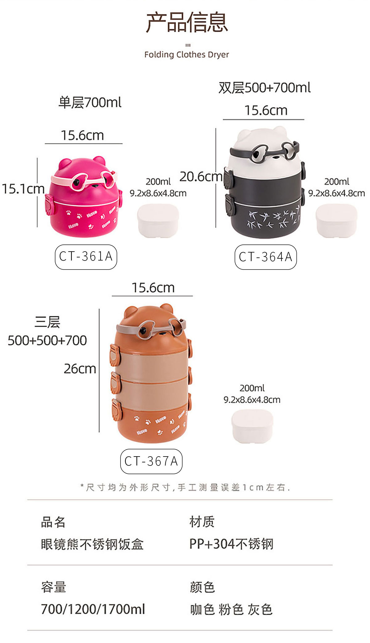 Size: CT-361A(單層):156*151mm/700ml 內(nèi)格:92*86*48mm/200ml