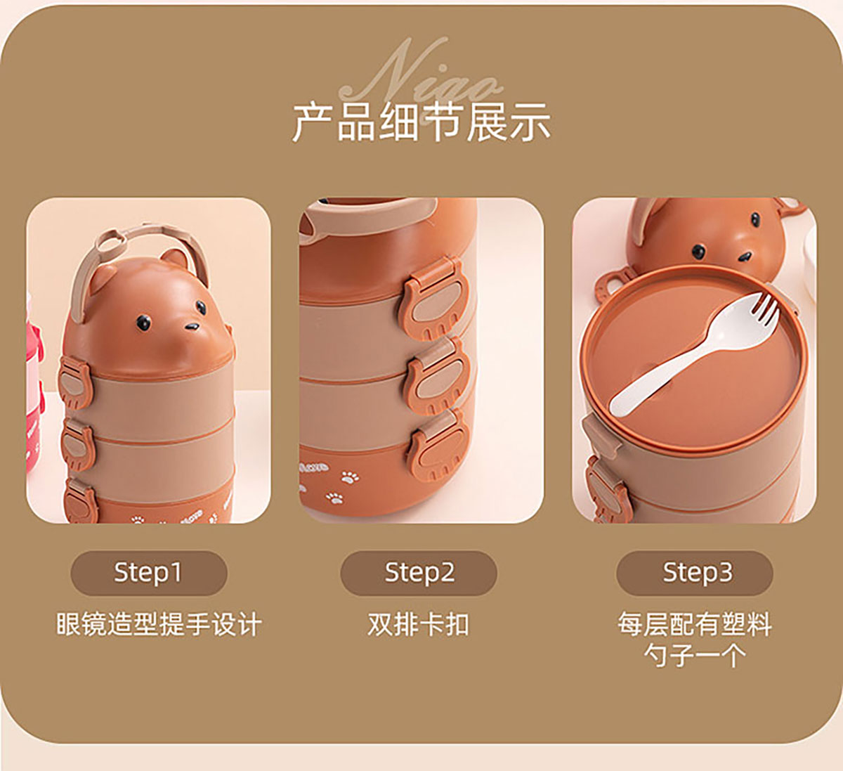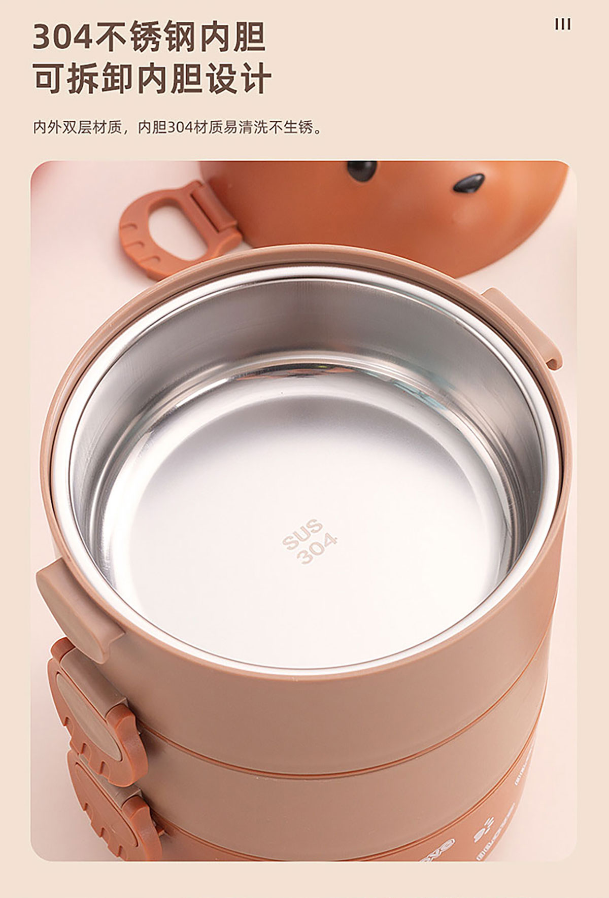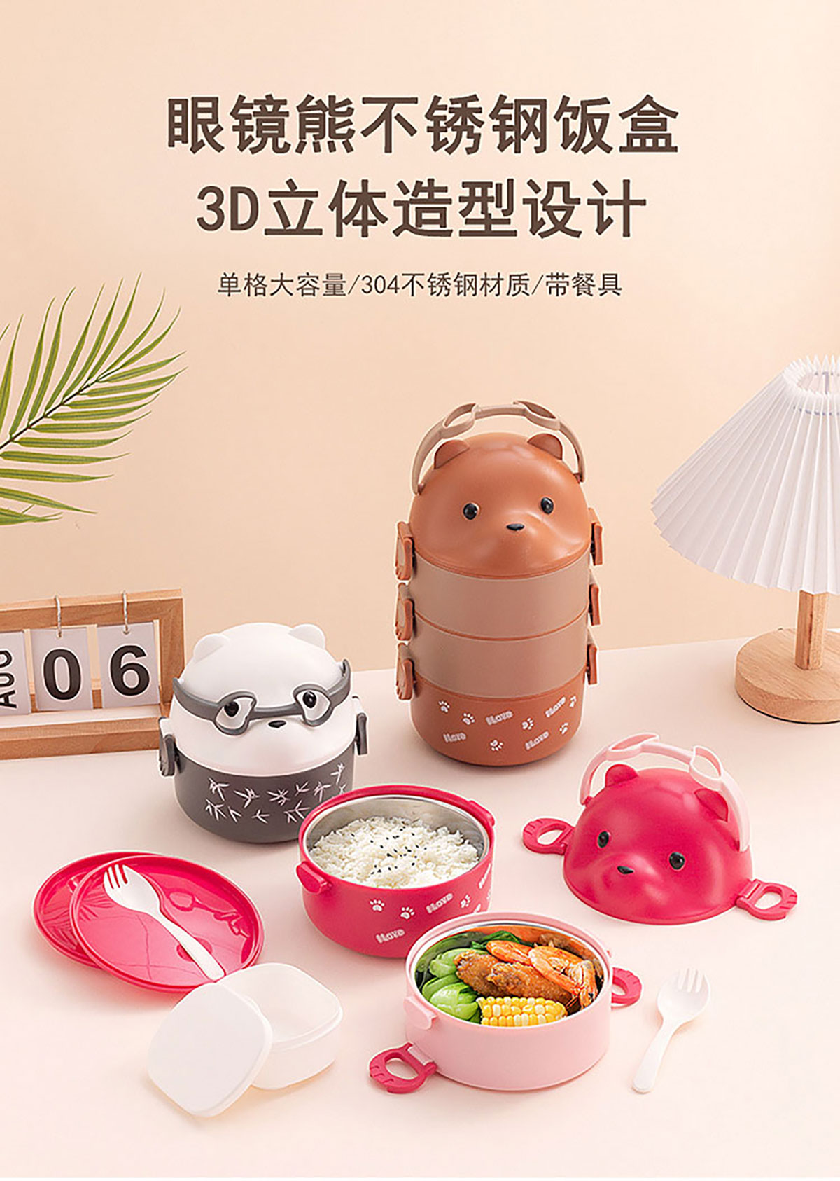 眼鏡熊單層/雙層/三層不銹鋼飯盒