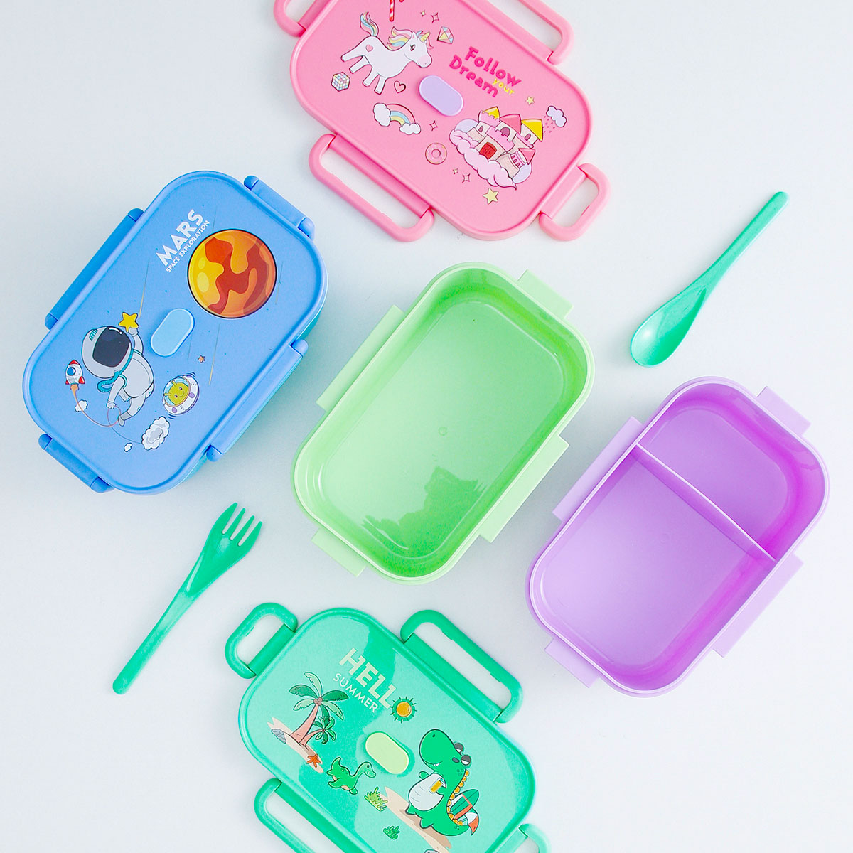 卡通長方單層/單層分格/單層含格子/雙層飯盒