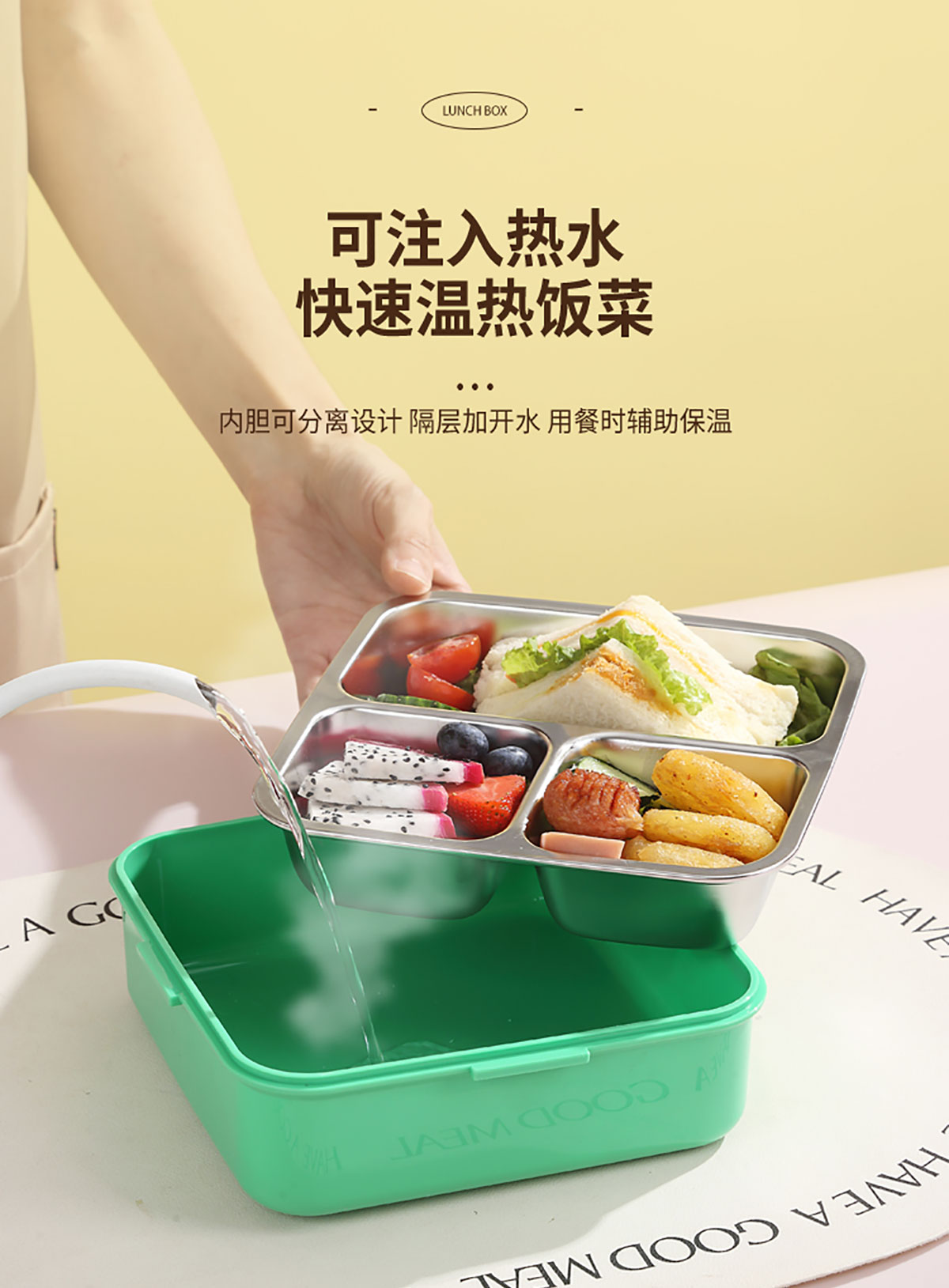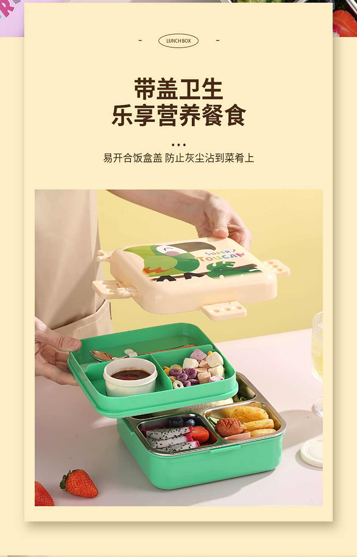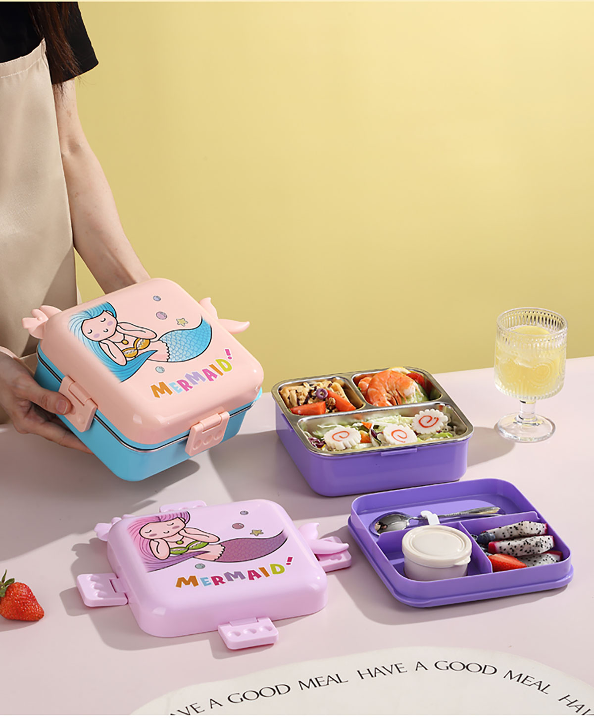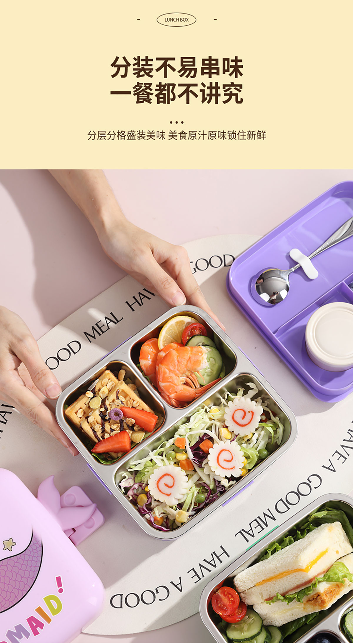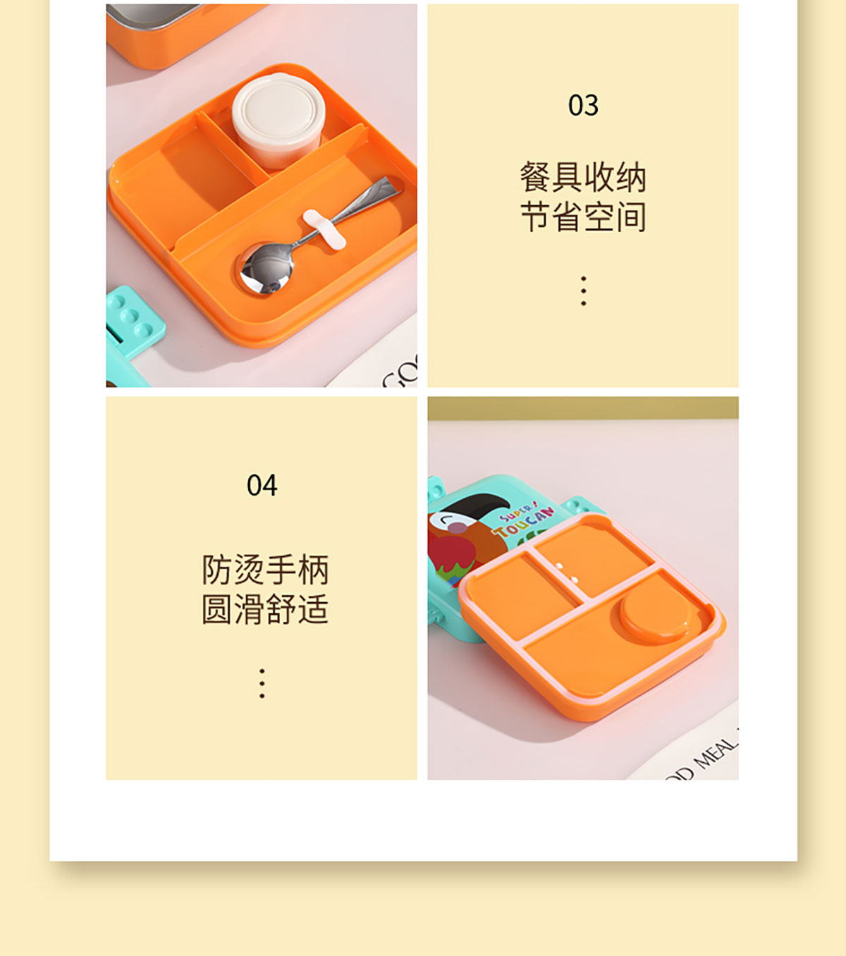 熊貓/大嘴鳥/獨角獸/美人魚正方形不銹鋼餐盒1120ml+70ml