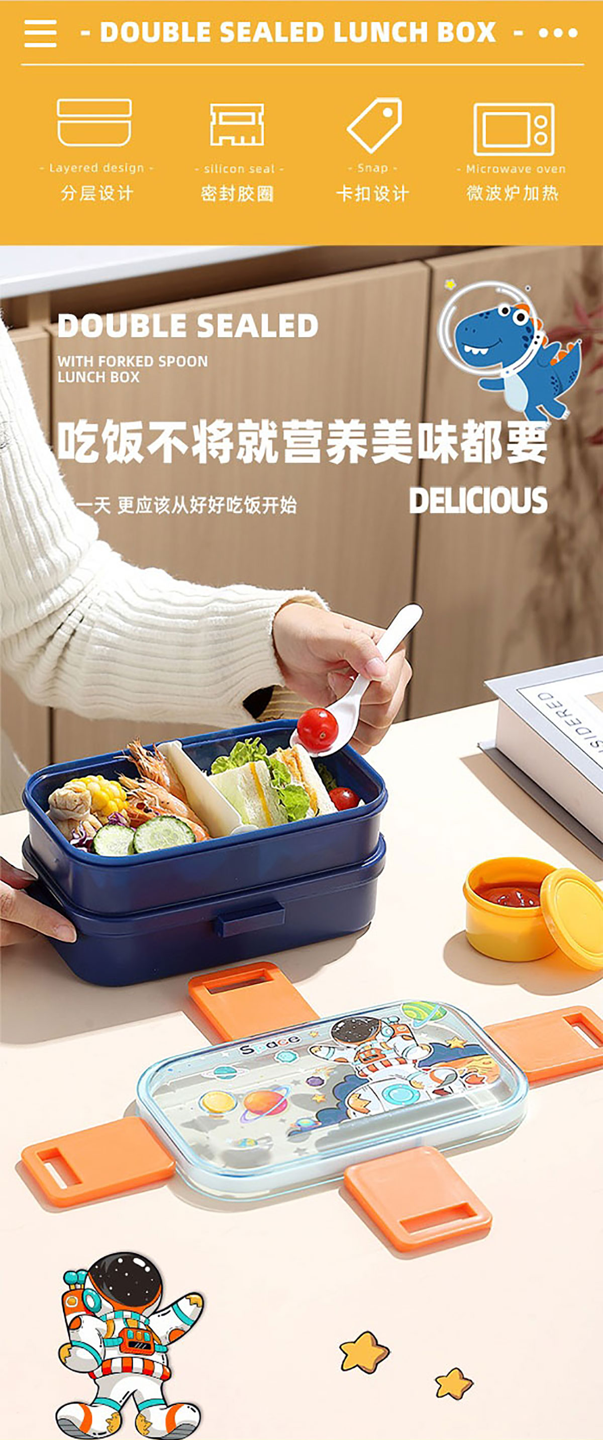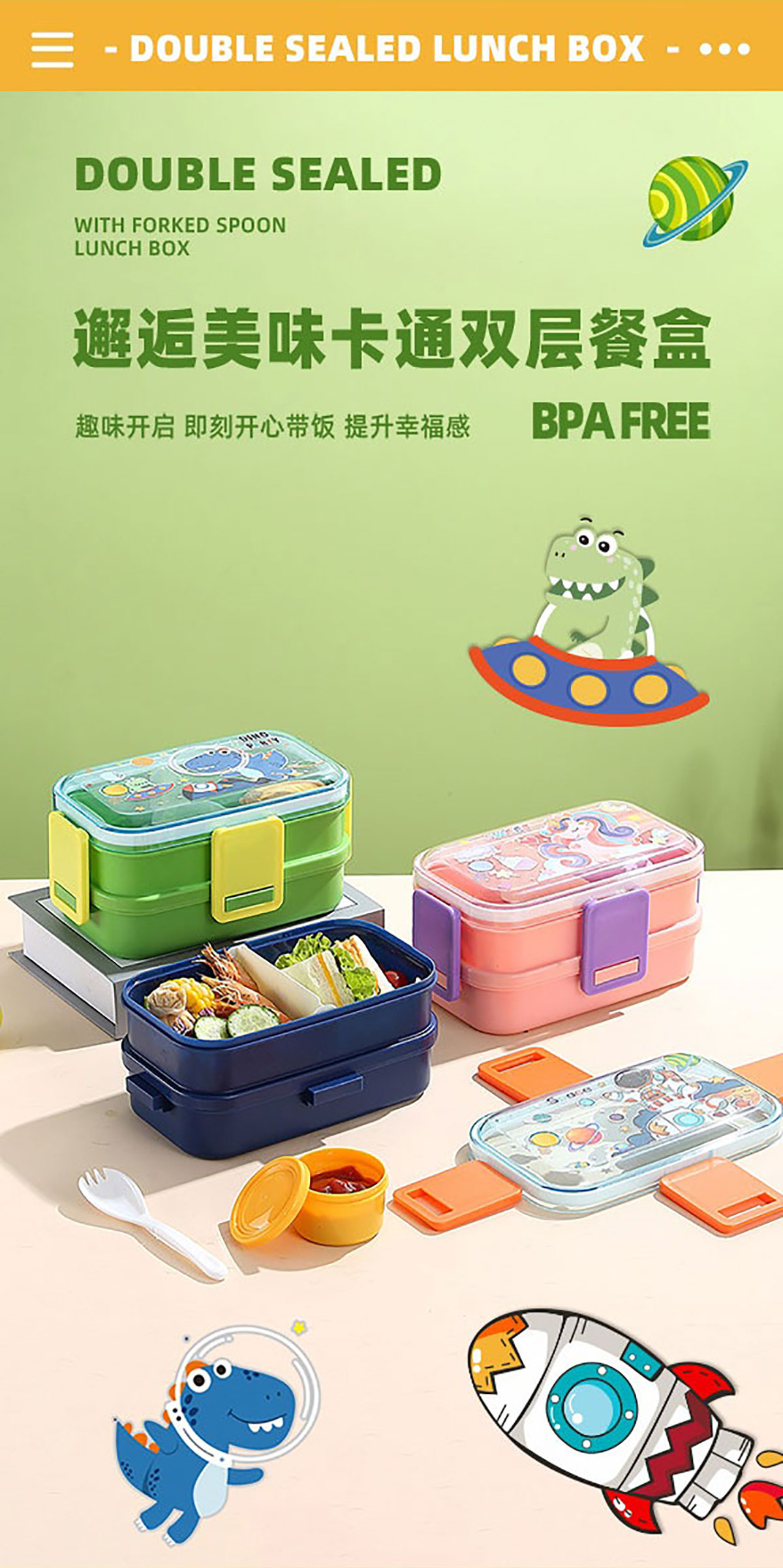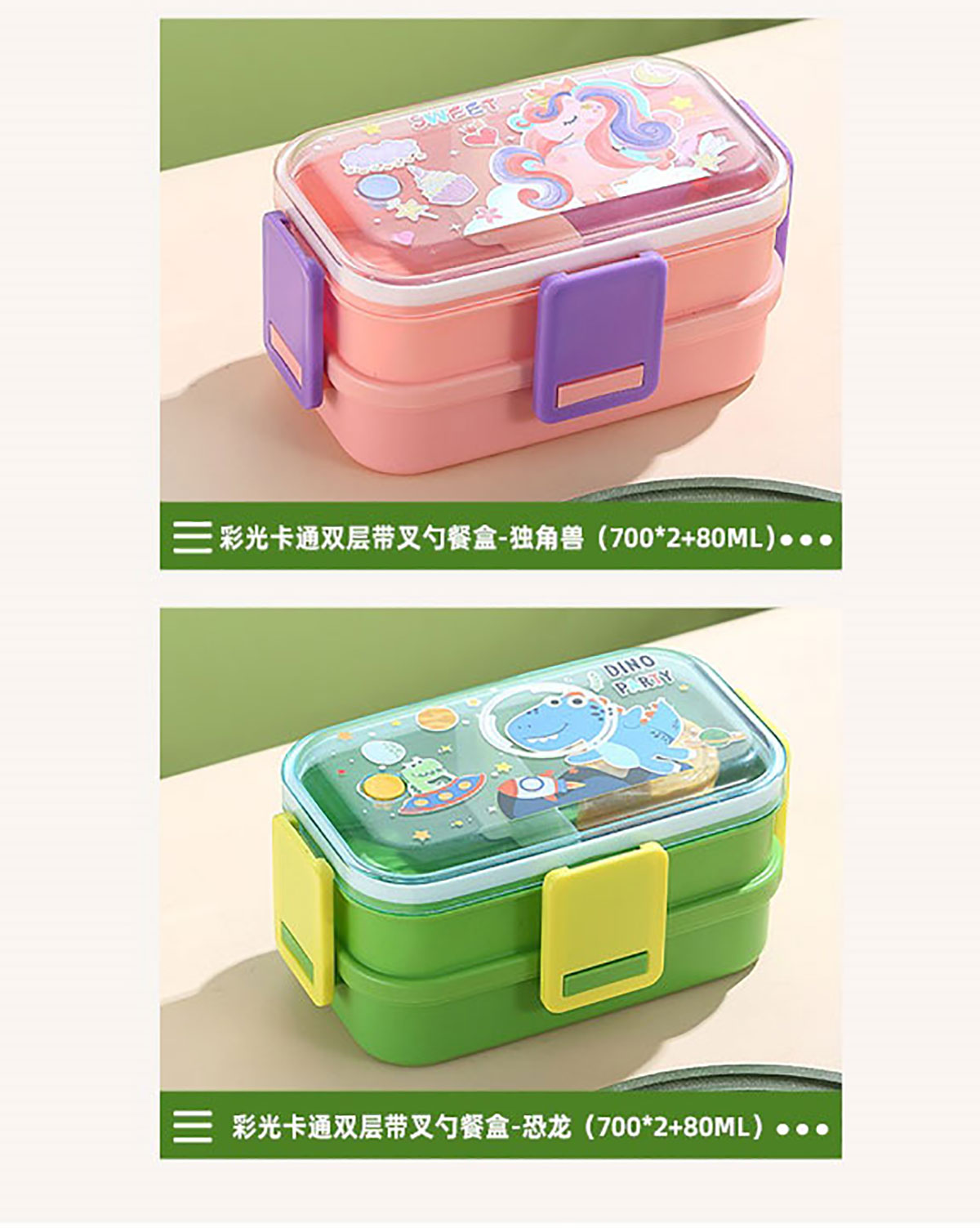 彩光卡通雙層餐盒(700mlx2+醬料杯80ml+pp勺)