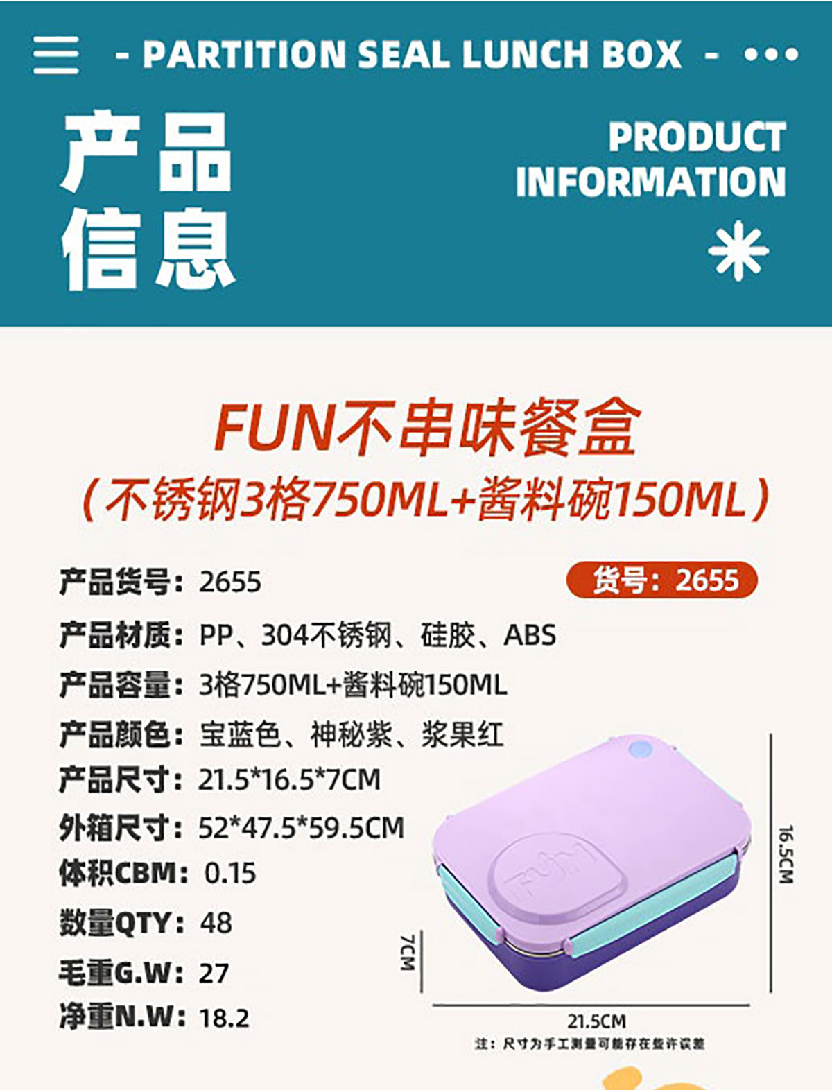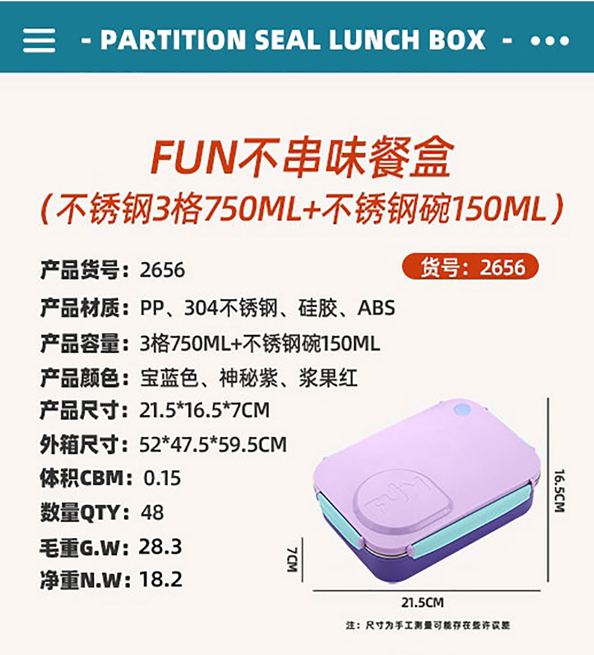 Size: AQX-2655:215*165*70mm/+塑料碗150ml