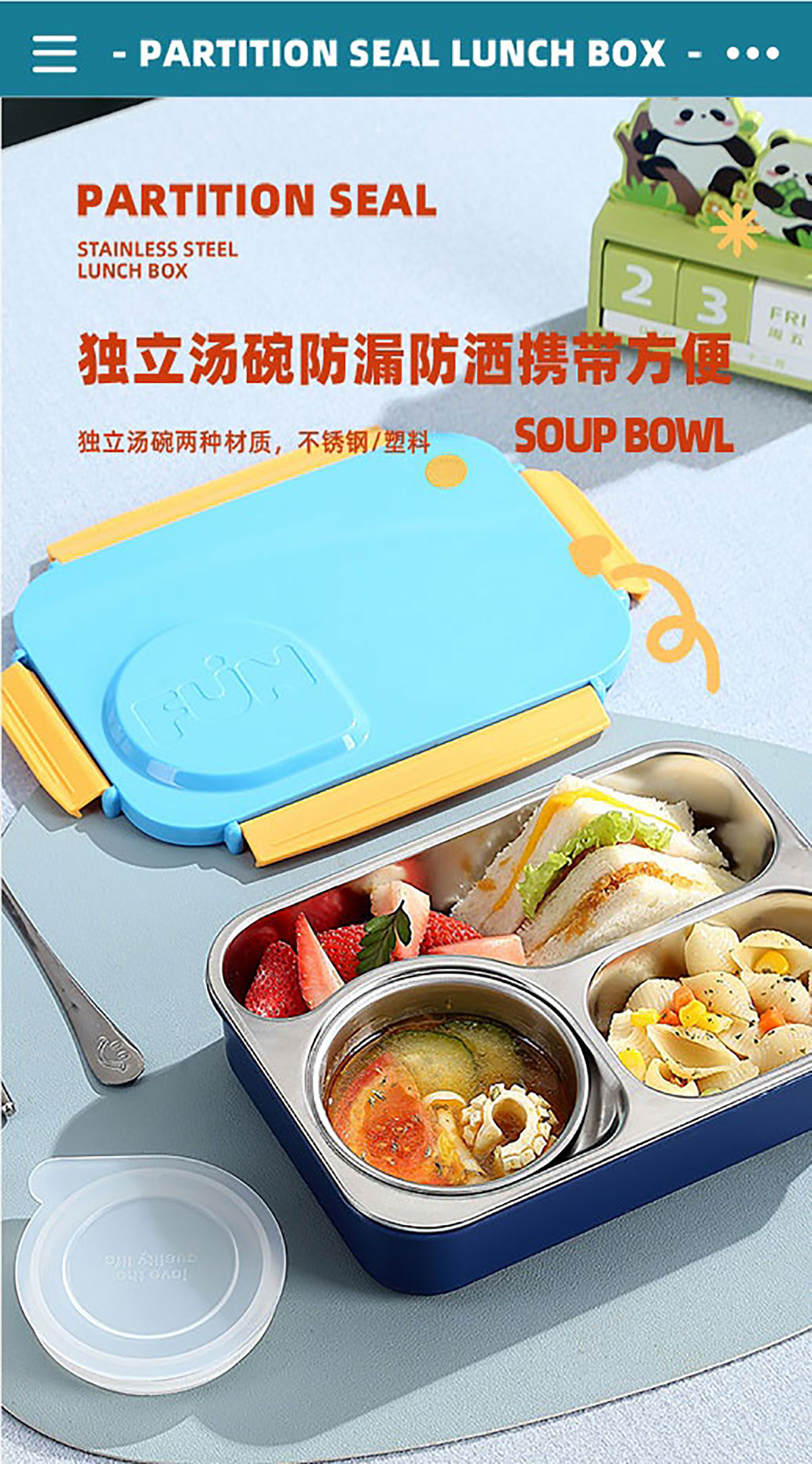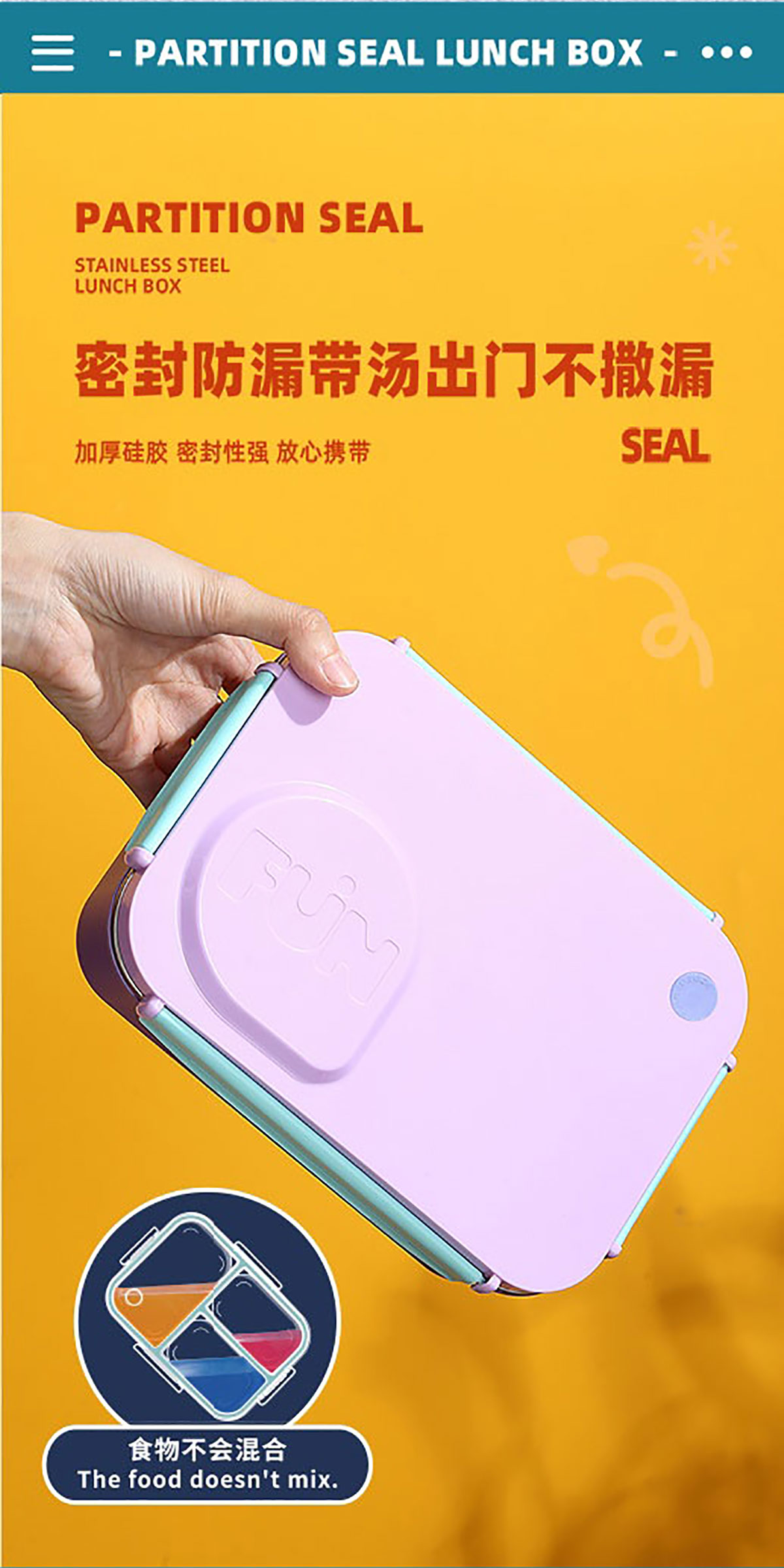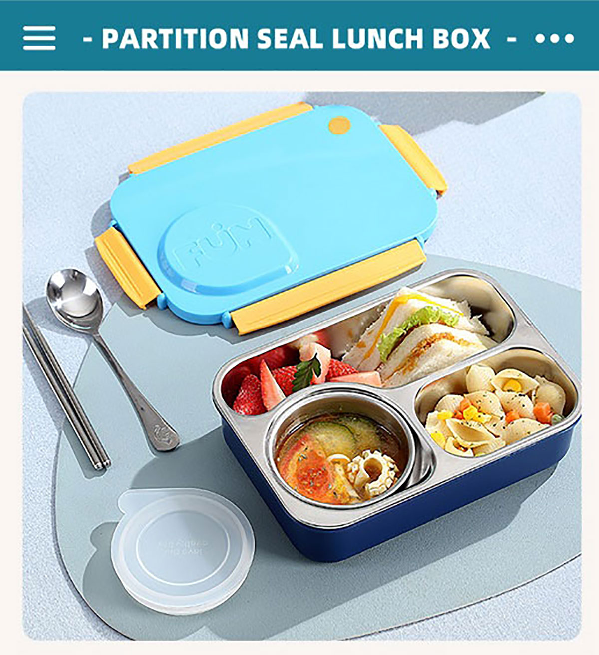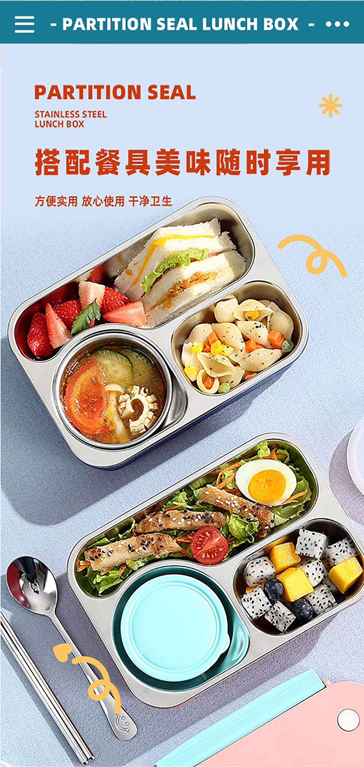 FUN不串味餐盒(不銹鋼3格750ml+塑料碗/不銹鋼碗150ml+不銹鋼勺筷)