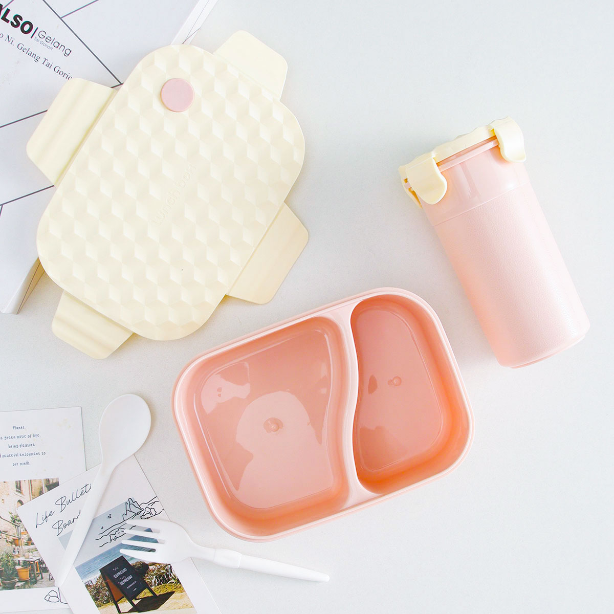 Size: 飯盒:187*136*76mm/1100ml 杯:84*65*150mm/400ml
