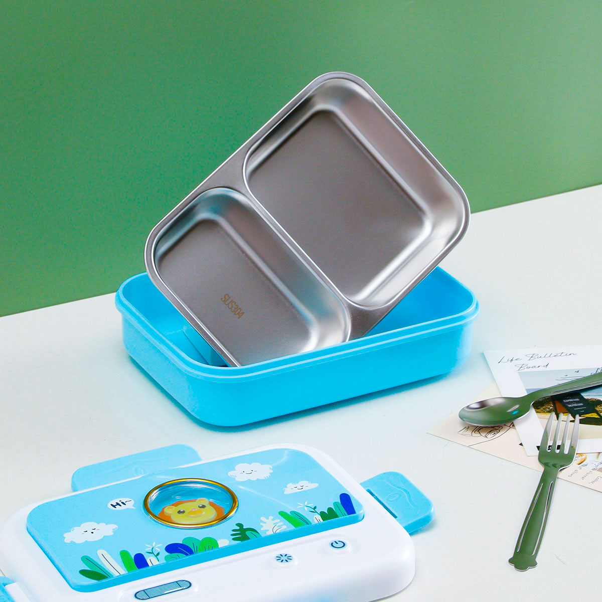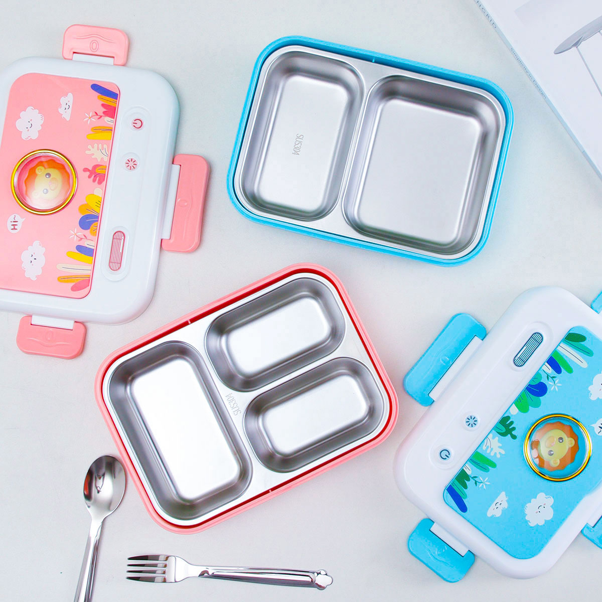 電視機二格/三格不銹鋼飯盒(不銹鋼叉匙)