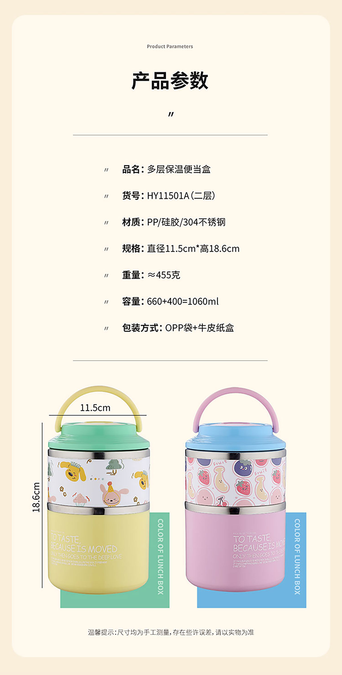 Size: 直徑115*高186mm/660+400=1060ml