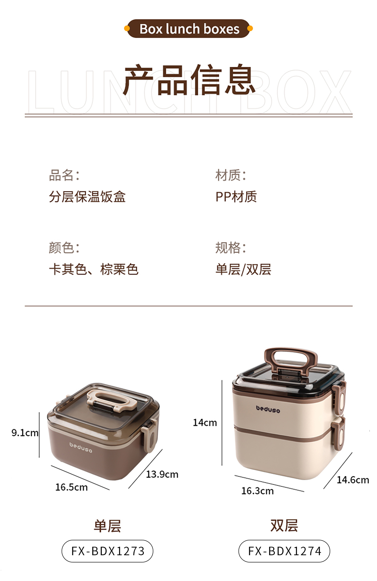 Size: FX-BDX1273(單層):165*139*91mm/1000ml FX-BDX1274(雙層):163*146*140mm/1800ml