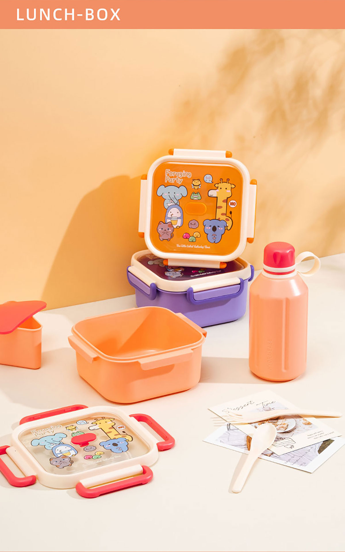 尚趣正方單層飯盒(1000ml)(含格子)/+圓形/方形運(yùn)動(dòng)水壺(500ml)