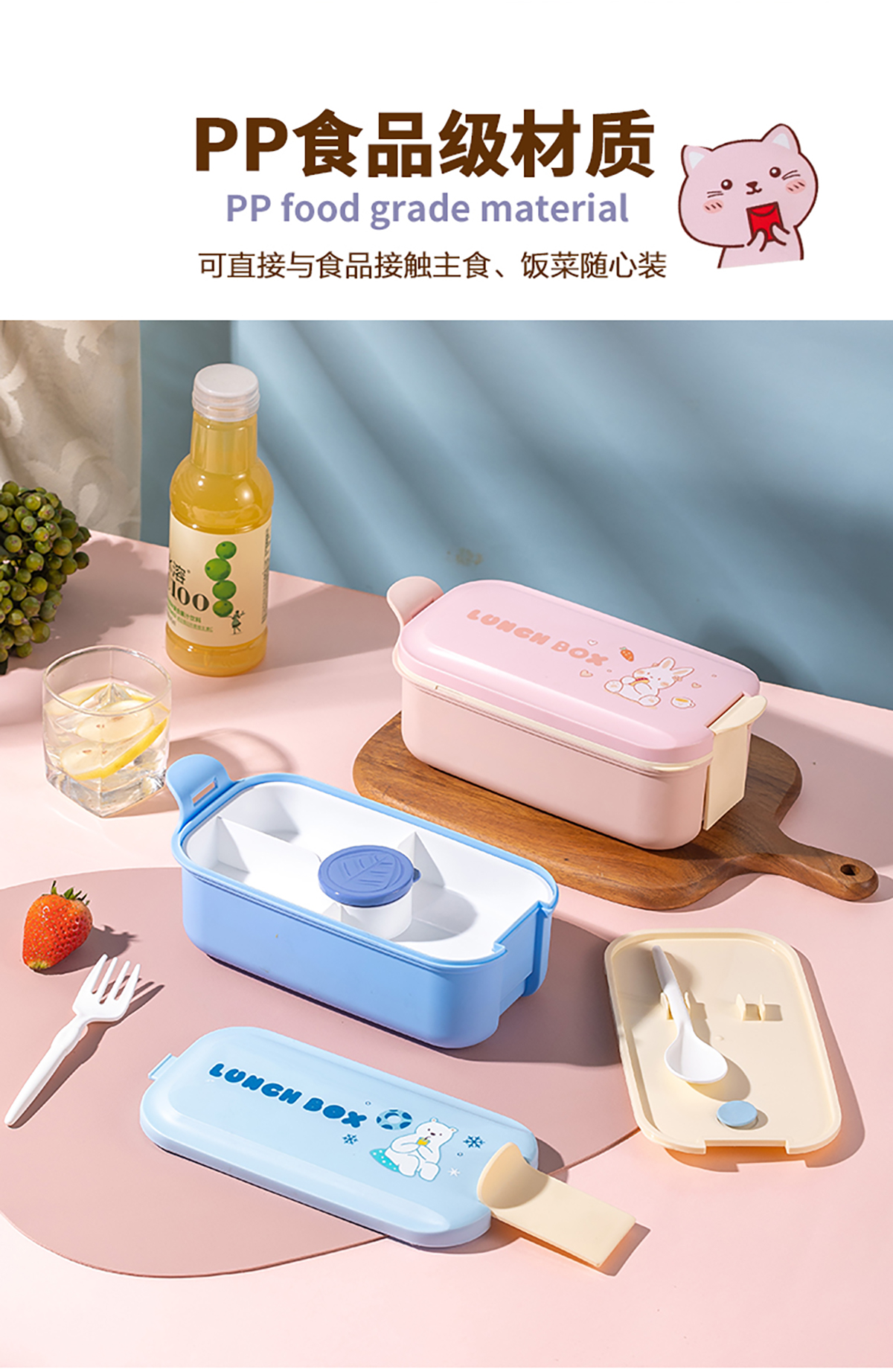 小長方單扣三格飯盒