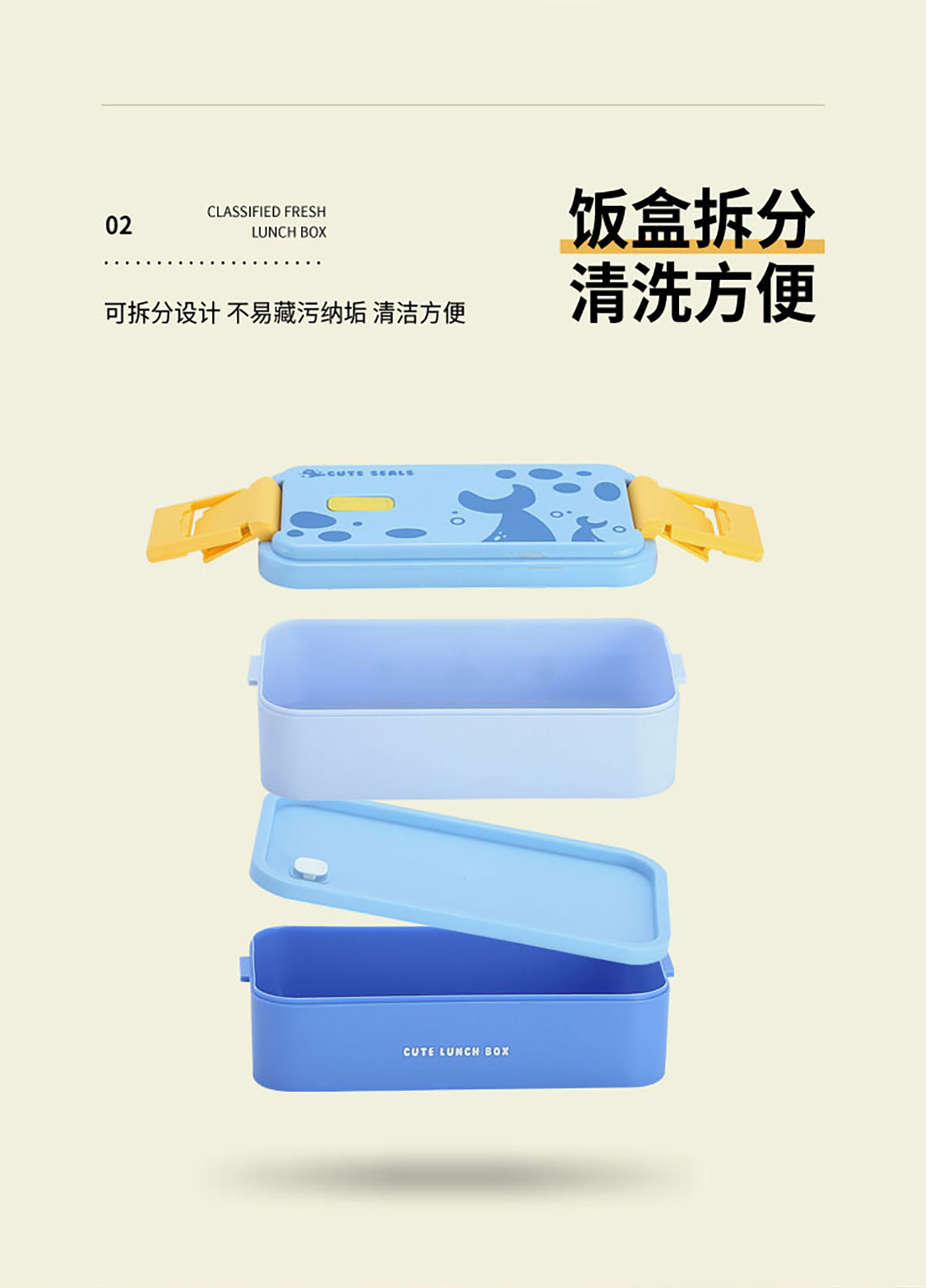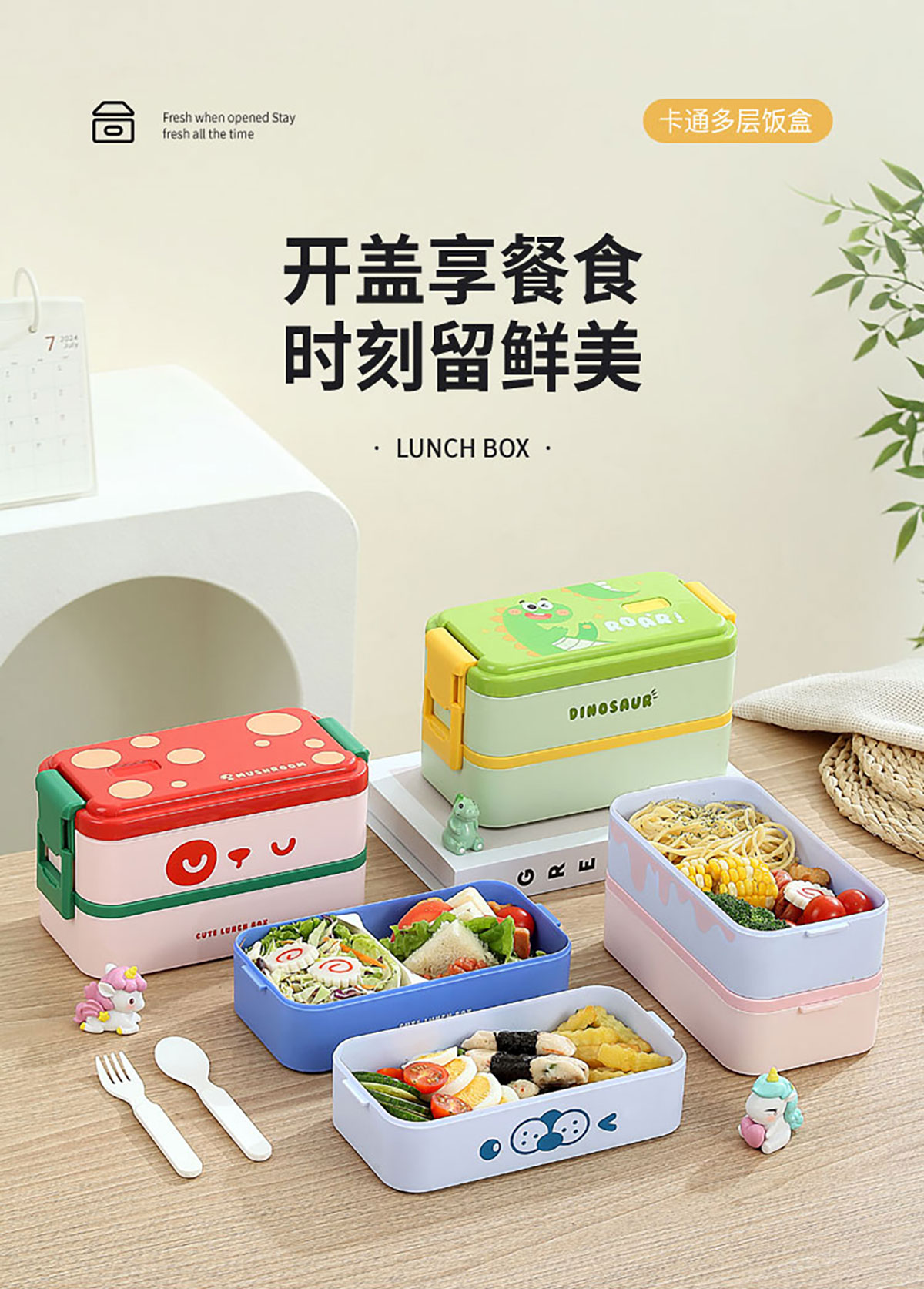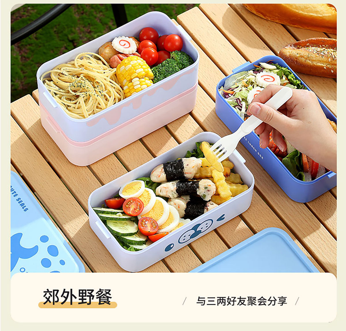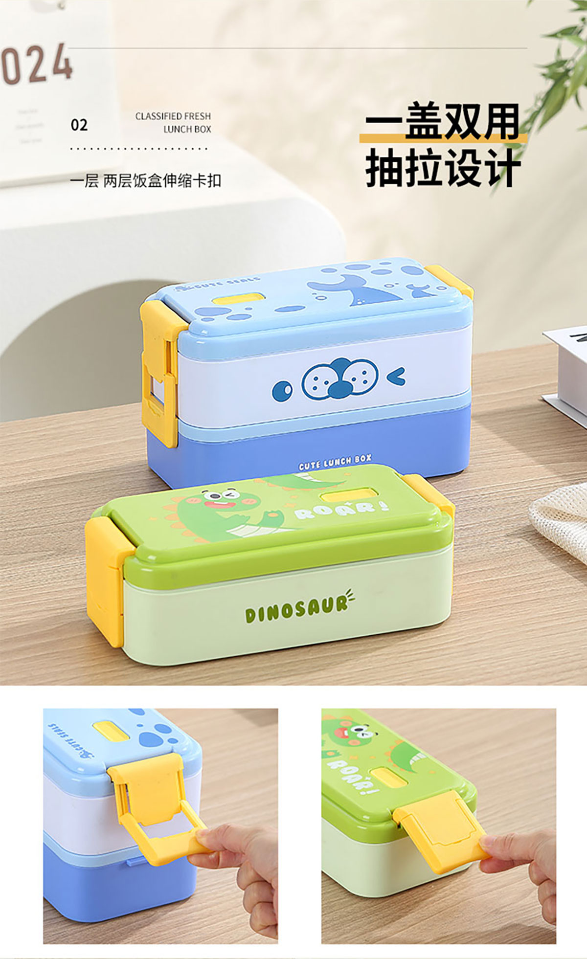 雙層伸縮扣密封飯盒卡通1600ml