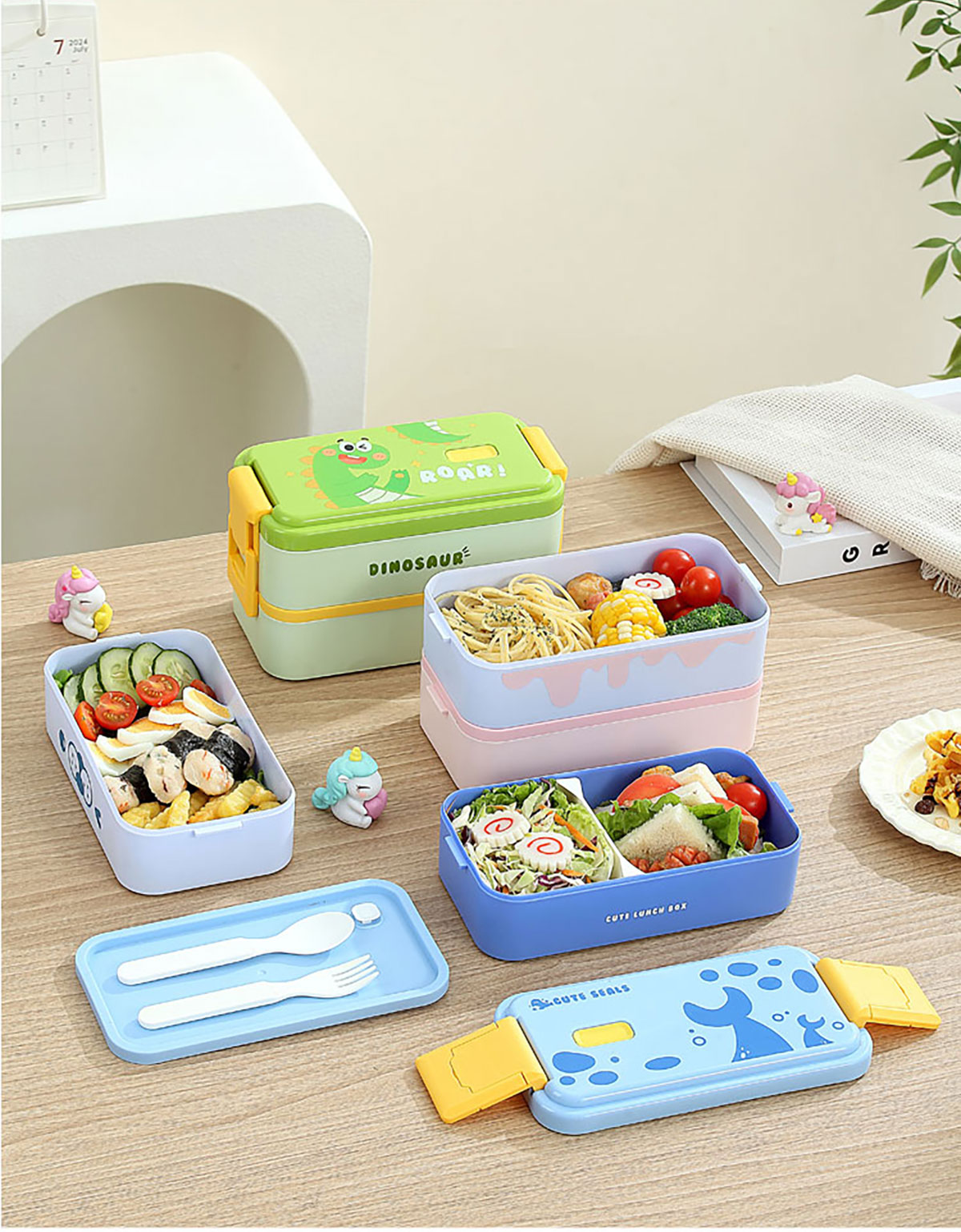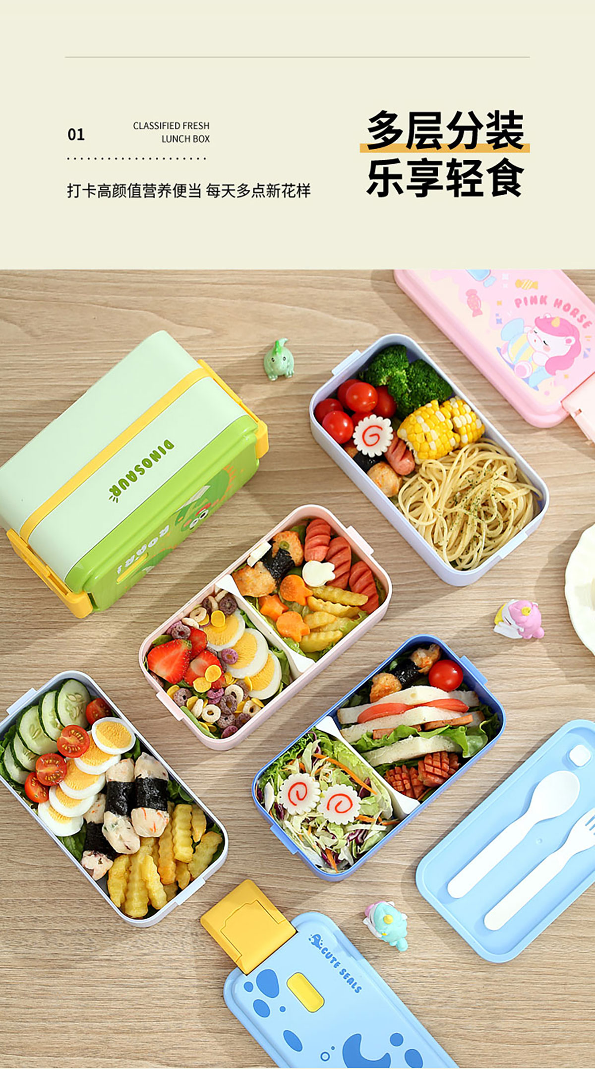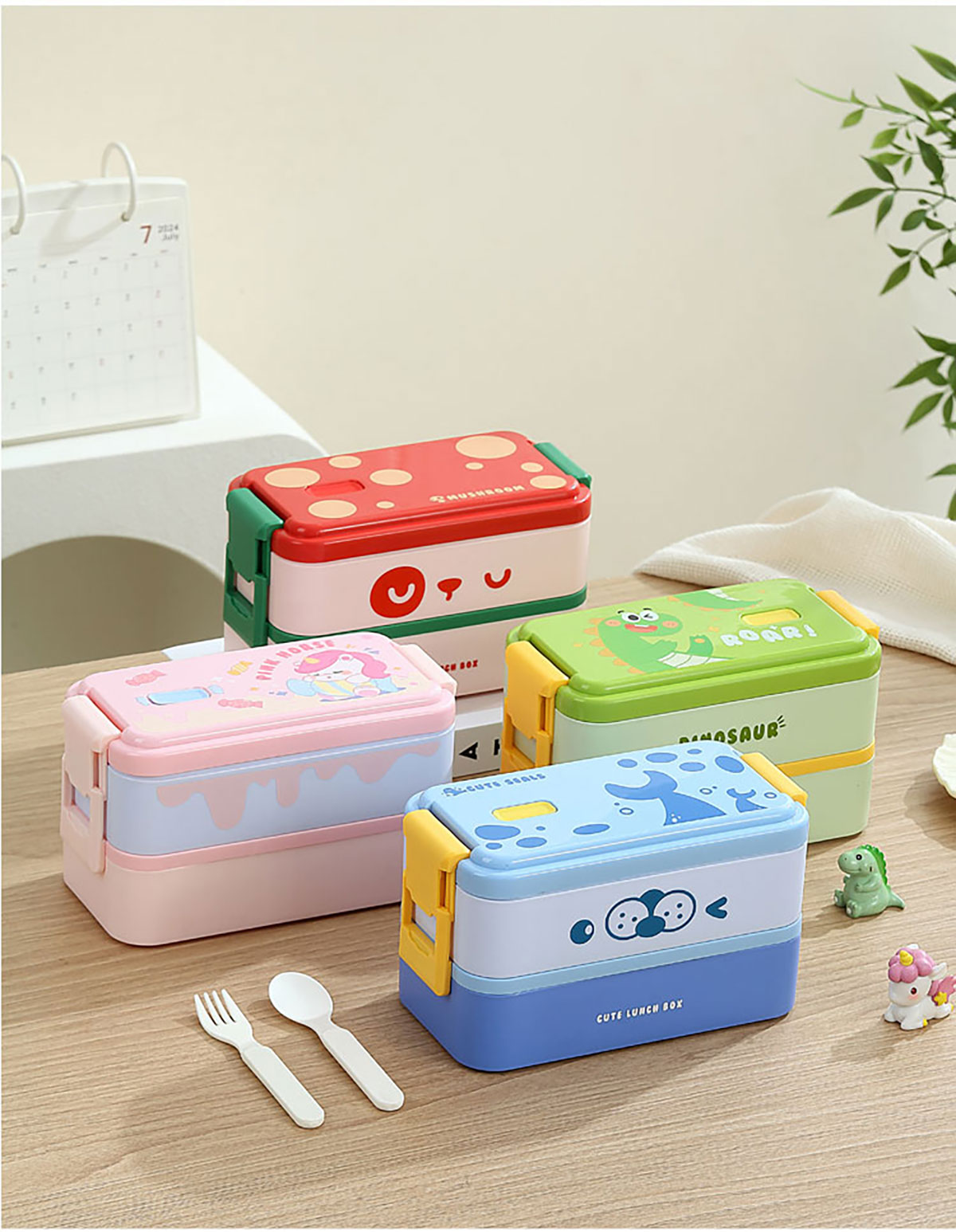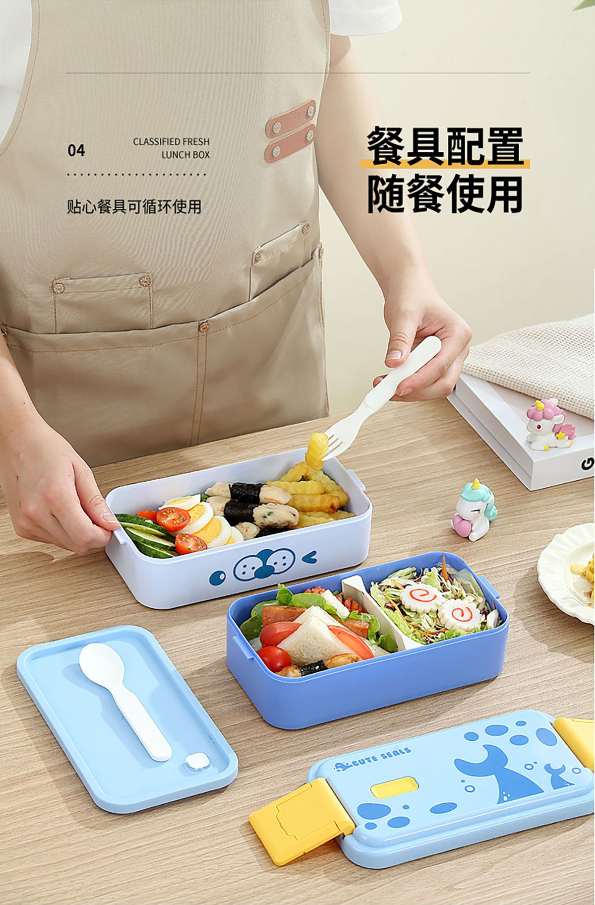 雙層伸縮扣密封飯盒卡通1600ml