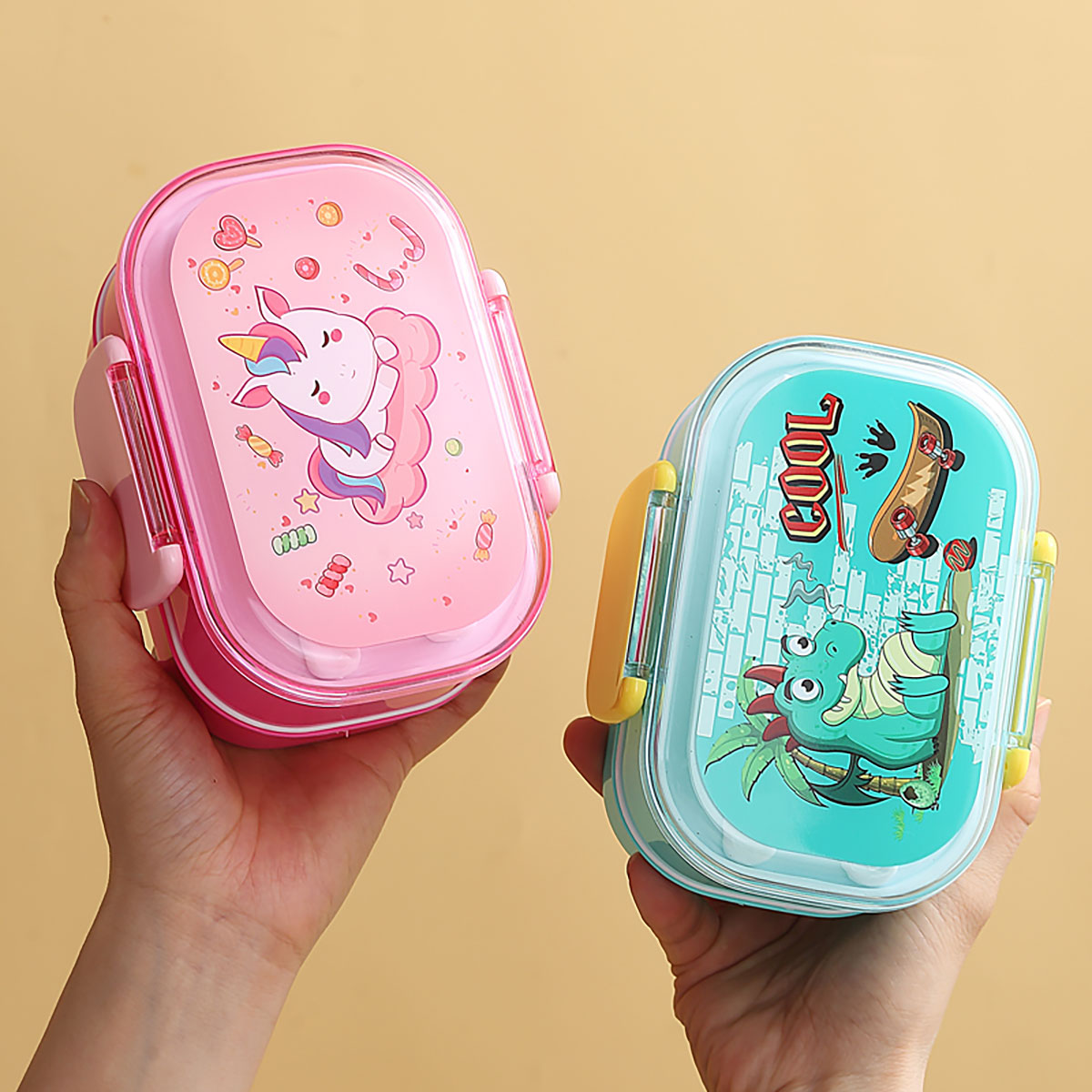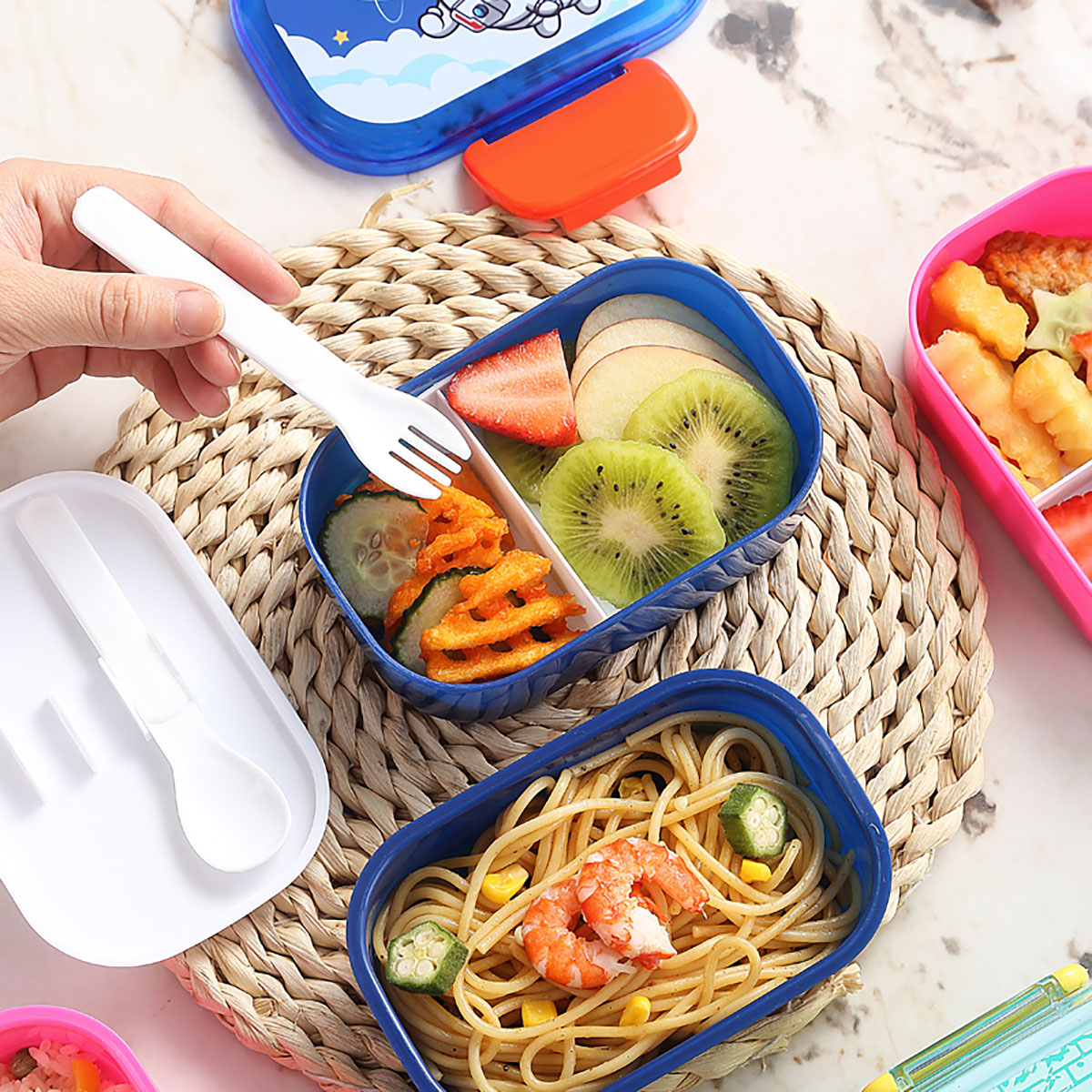 帶叉勺雙層兒童飯盒520ml
