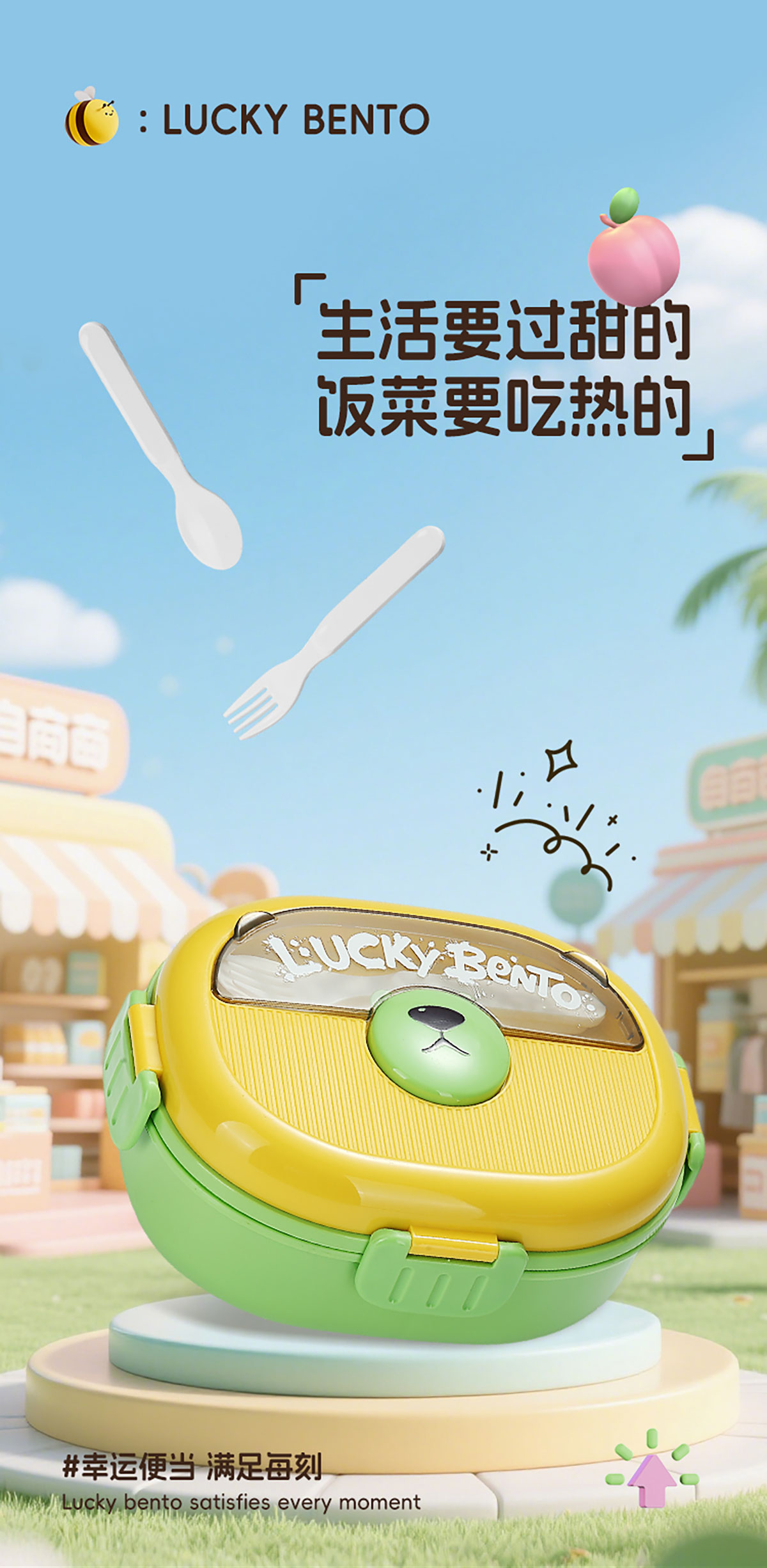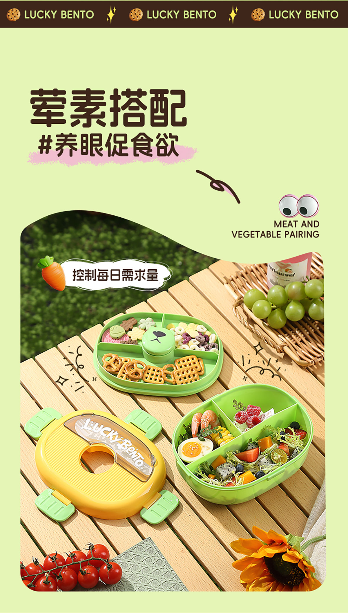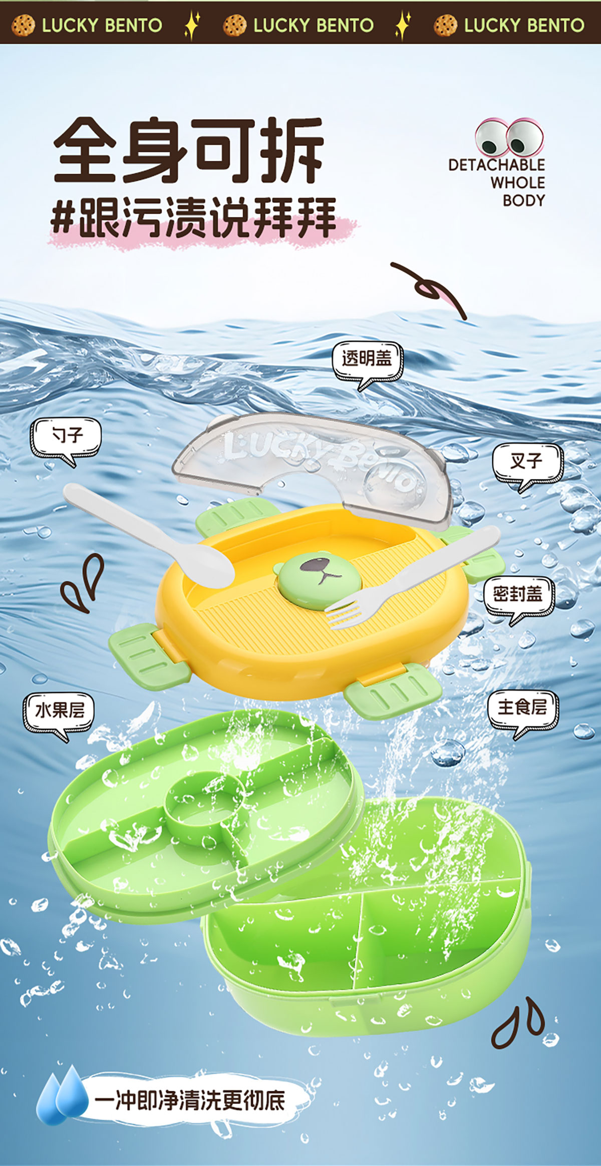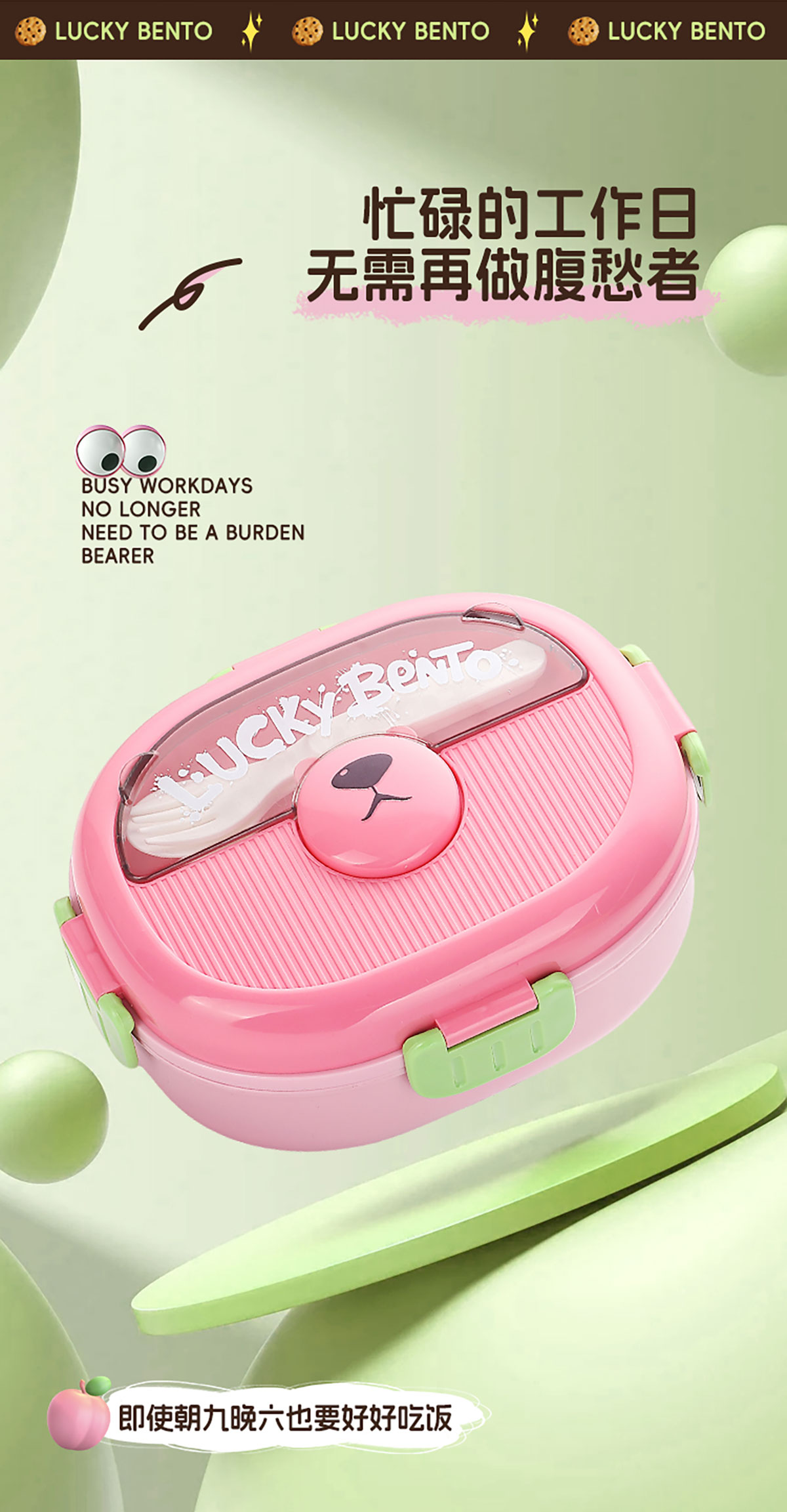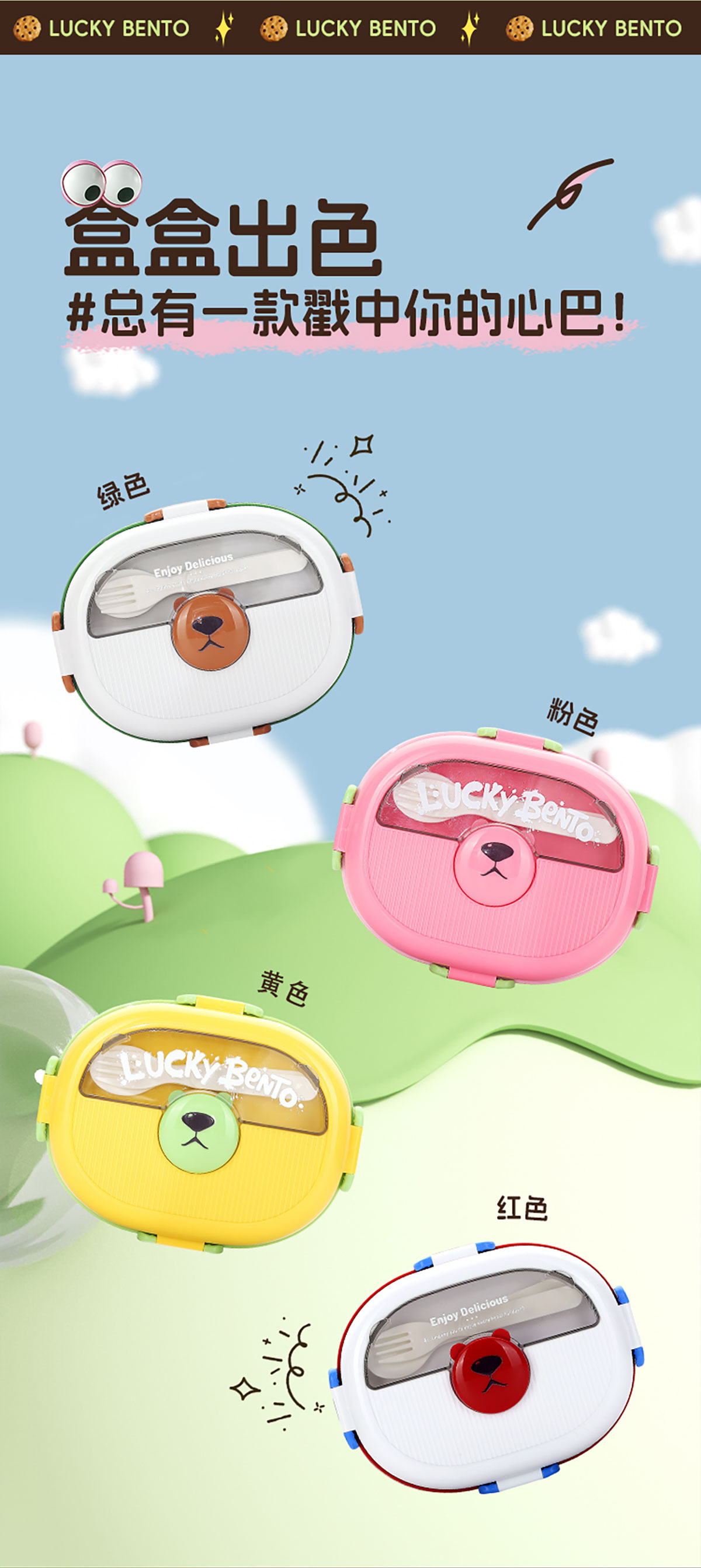 眼鏡熊分格飯盒1350ml