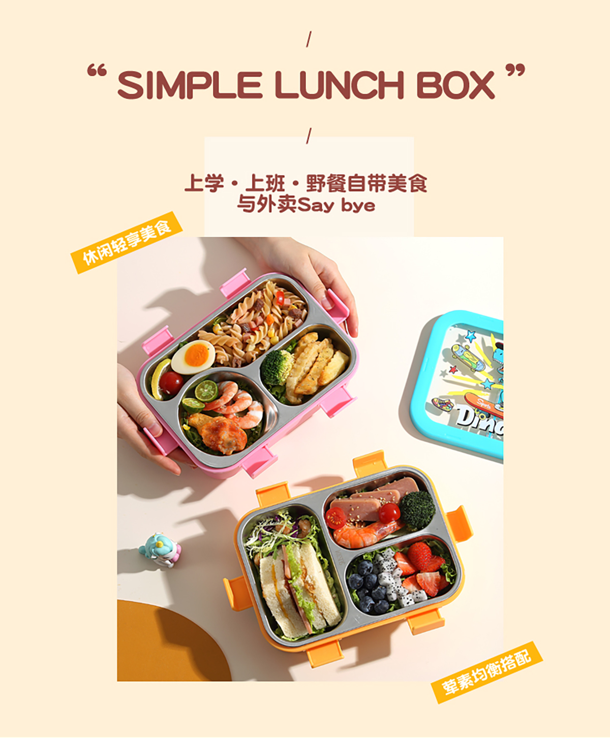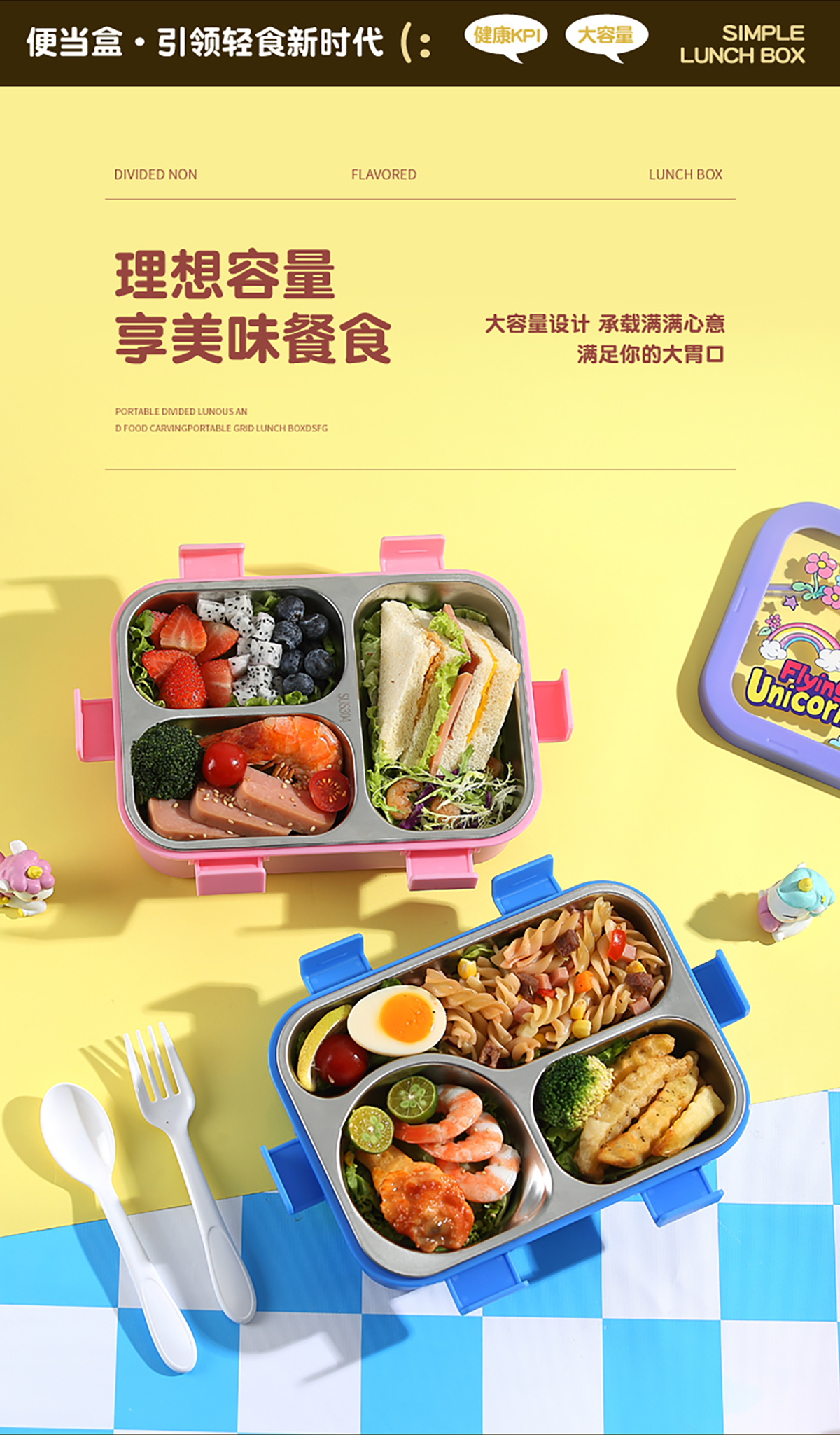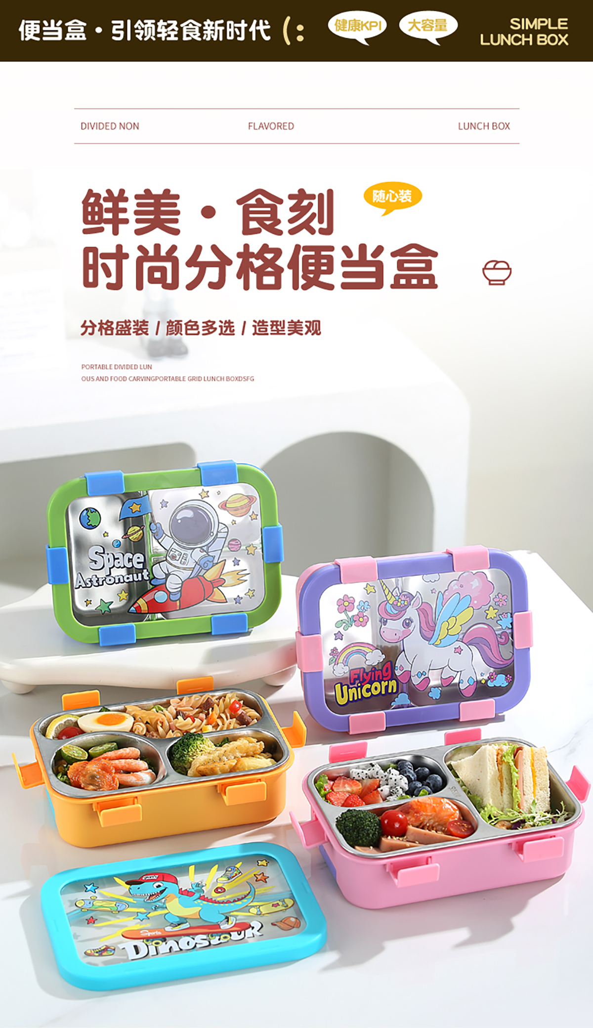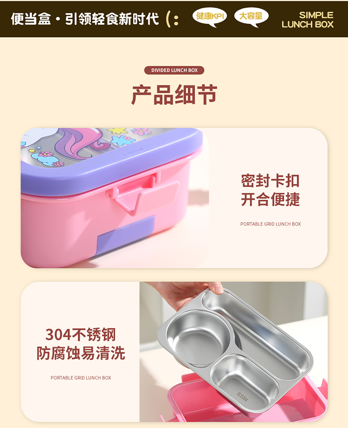 星樂(lè)便當(dāng)盒不銹鋼 卡通款 下單可選(三格700ml)/(三格碗型650ml)