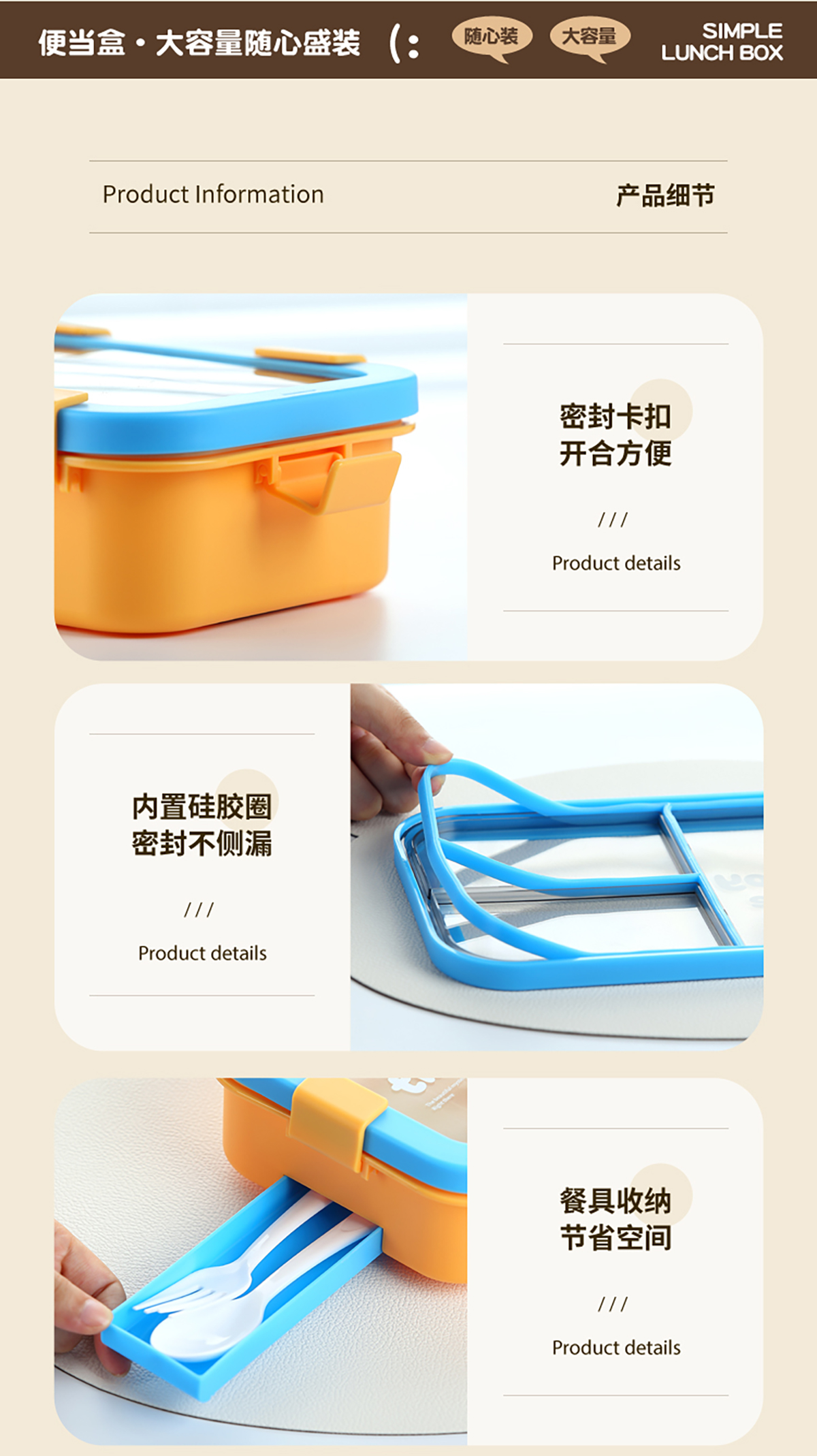 Size: 221*161*73mm(三格700ml/三格碗型650ml)