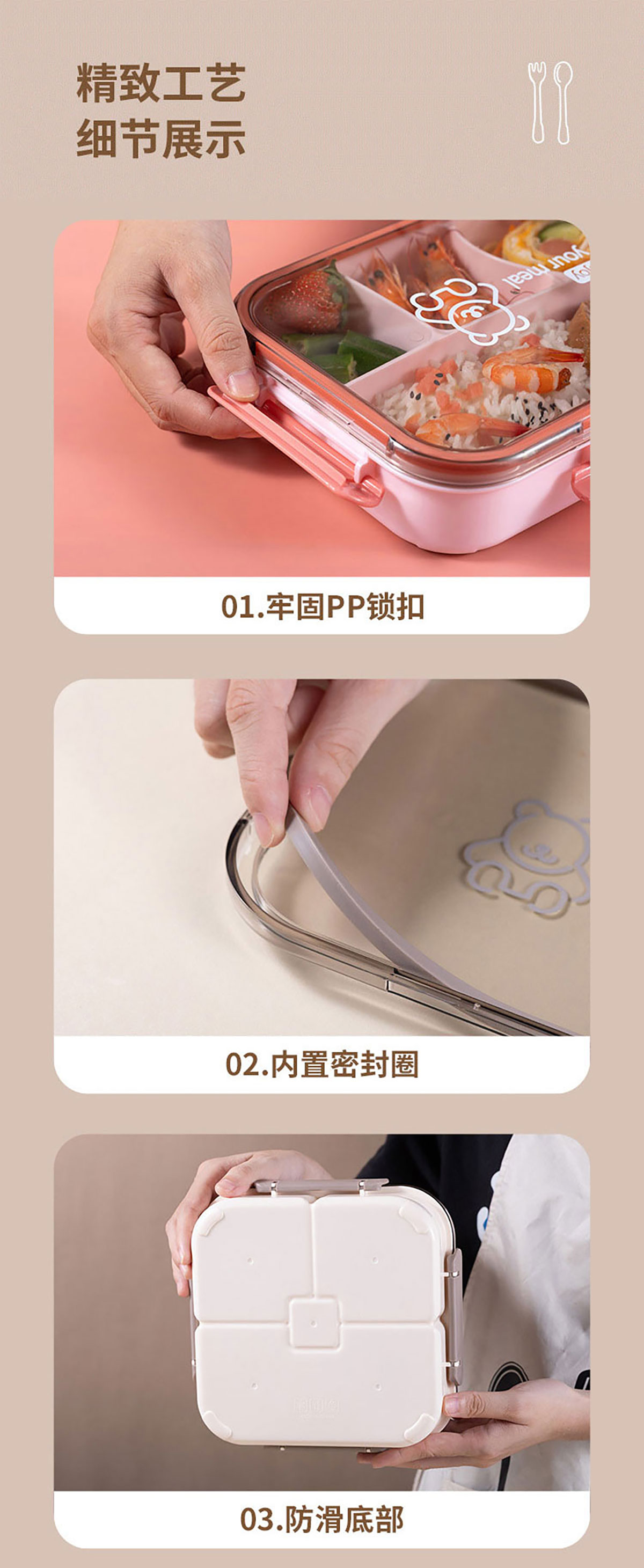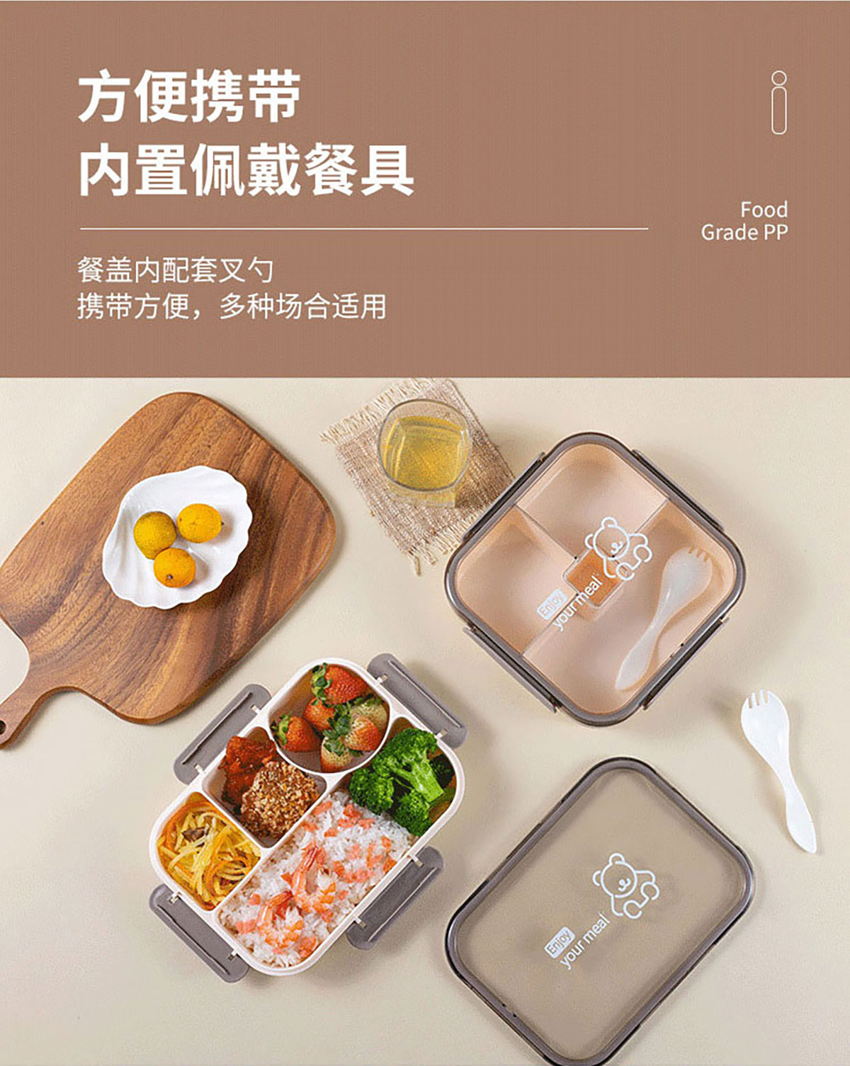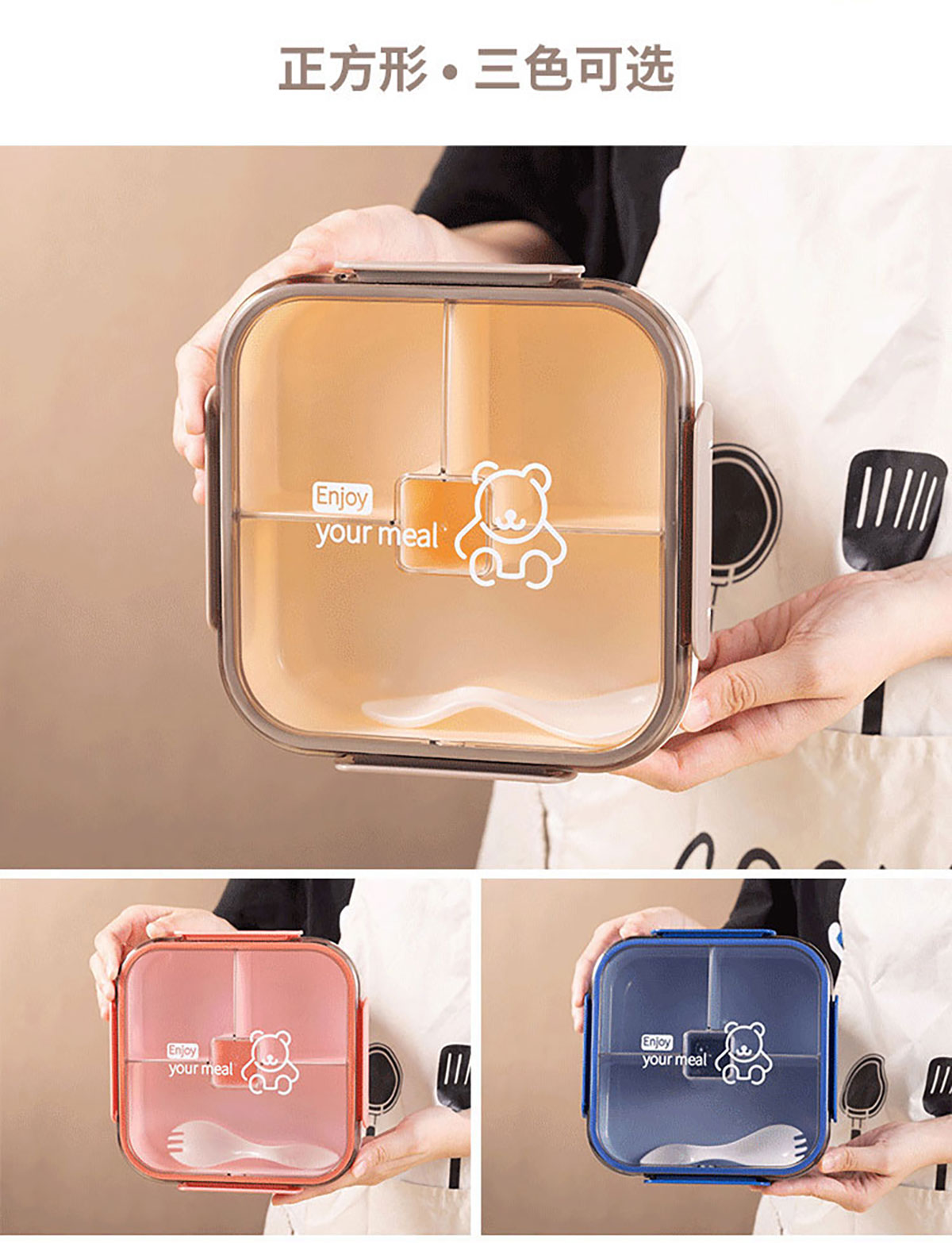 悅味長方形/方形四格飯盒1050ml