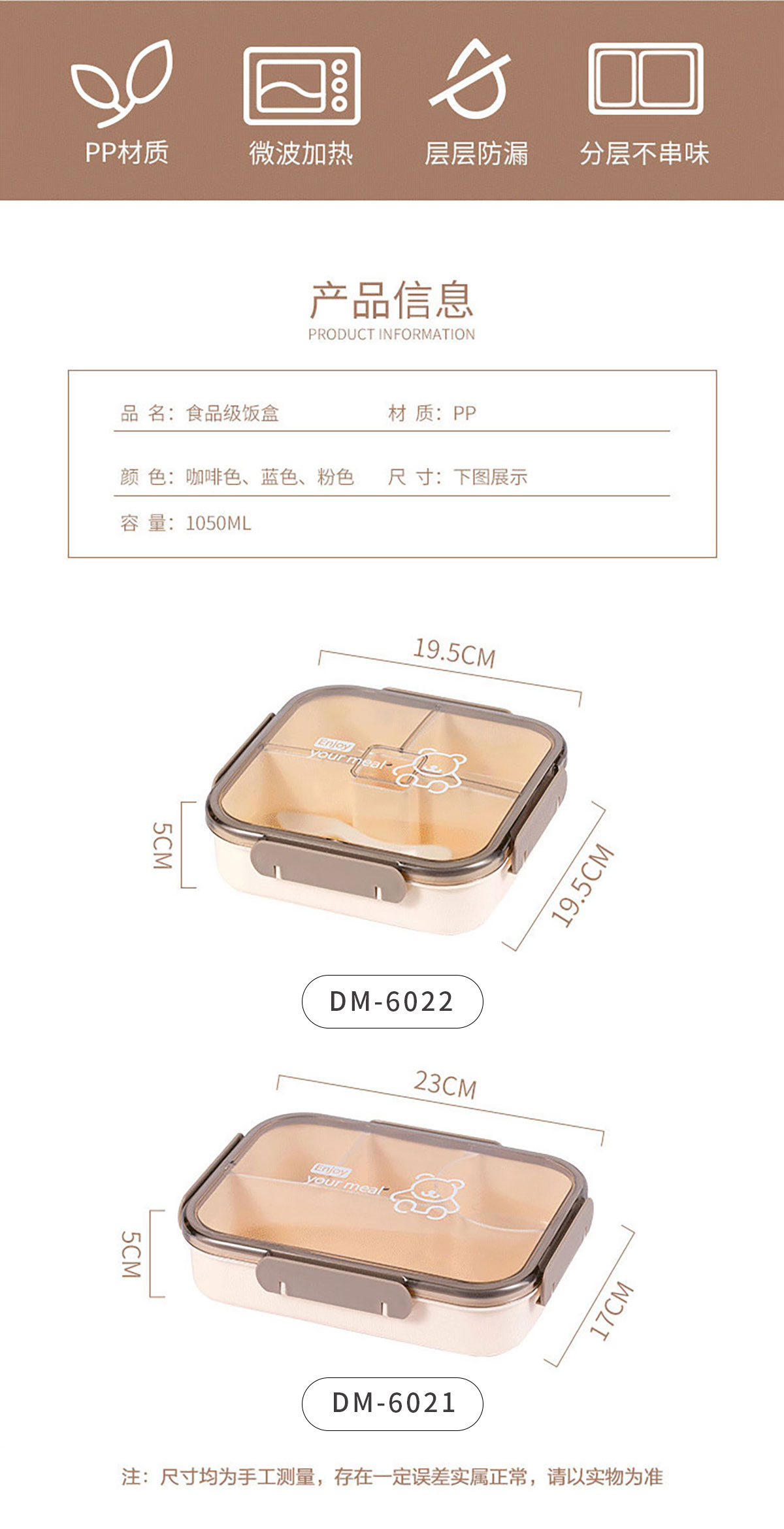 Size: DM-6021(長方形):232*173*50mm/1050ml