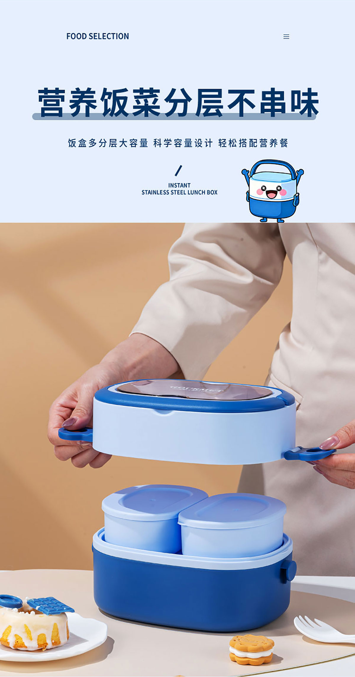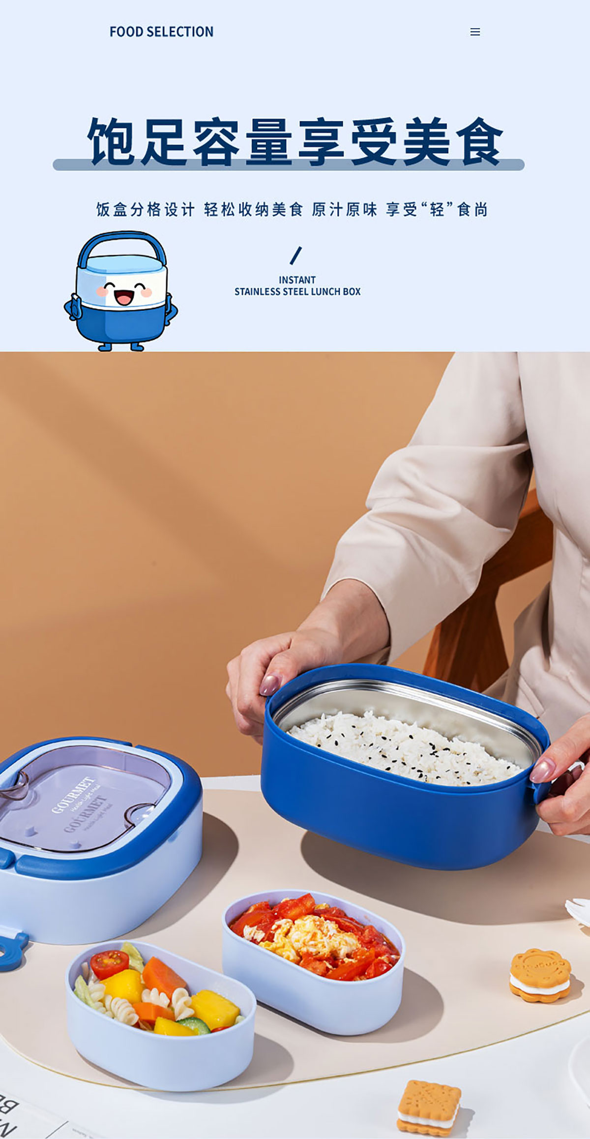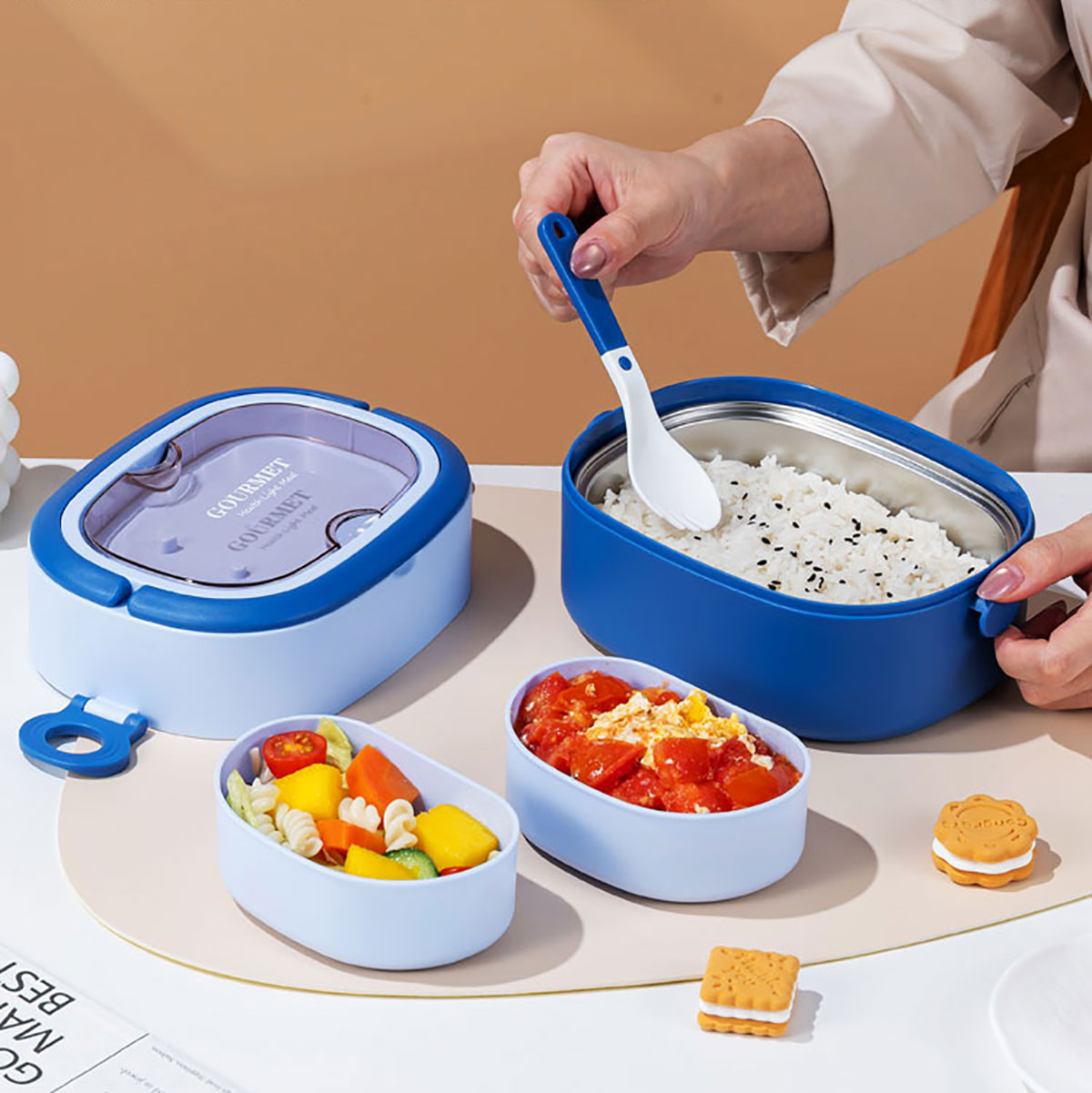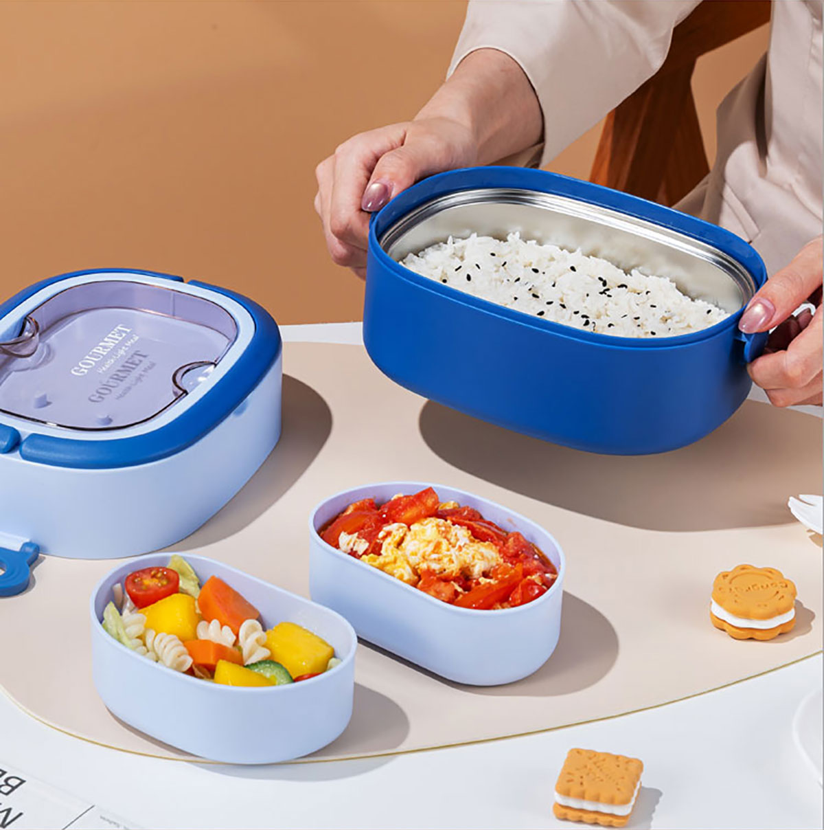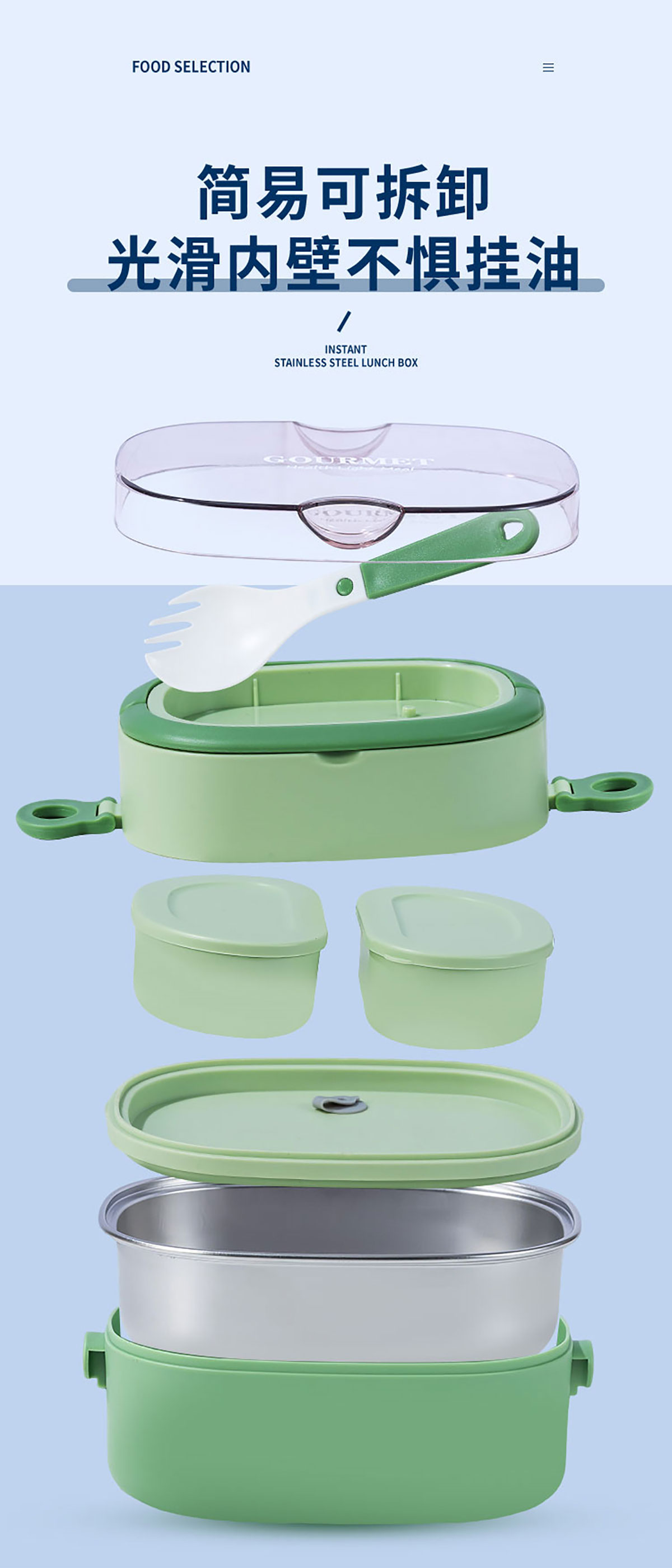 橢圓分格飯盒1500ml